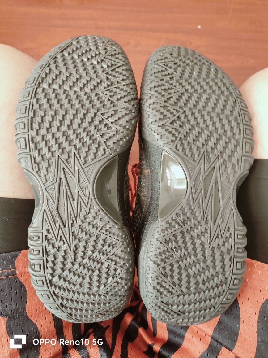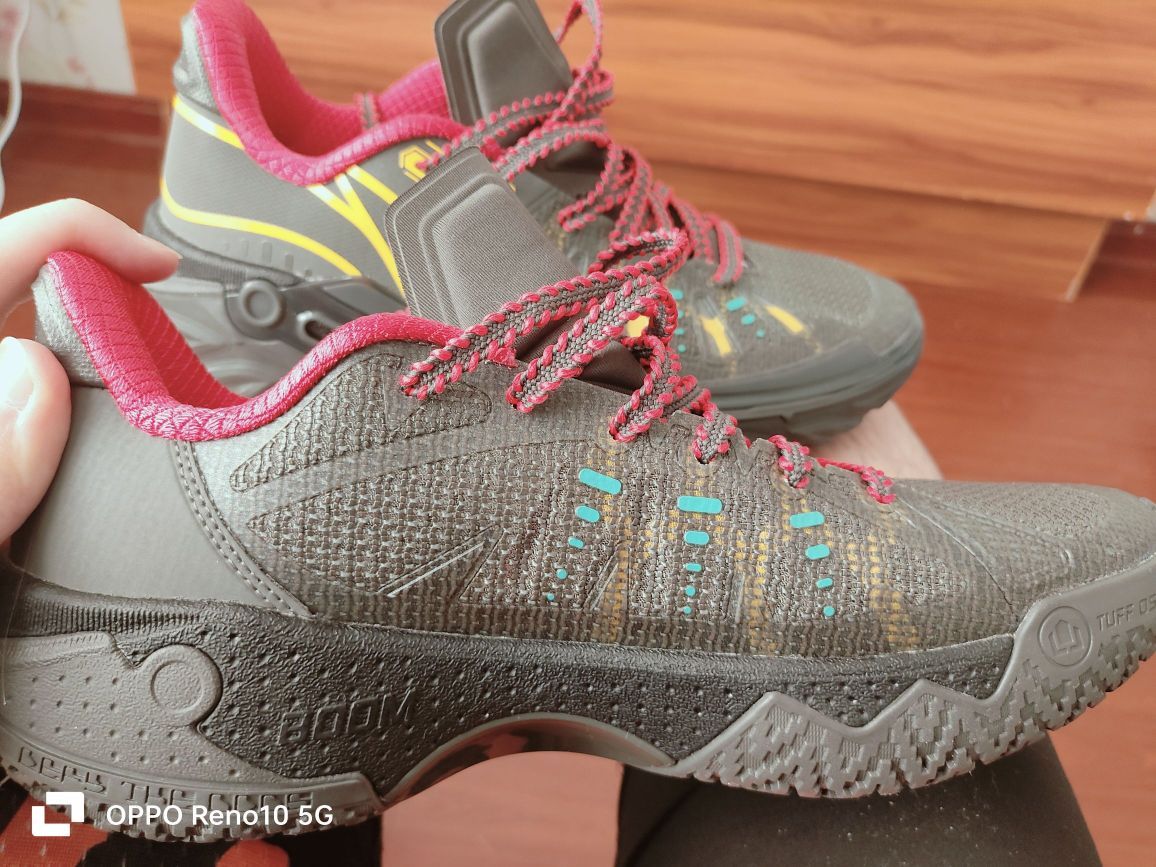 新鞋入手了,我刚拿到手,感觉是不是小了,因为习惯买耐克球鞋,耐克41跟这个41完全两个样,带上上脚发现刚刚好合脚,目前没有出现顶脚趾的情况,鞋面的话上脚之前用鞋袜除臭喷雾试过了,透气性好,但也没在运动过程中出现强度不够的情况,强度够,运动不会卡脚横移也能兜得住,穿着就是舒适且安心 哦对了,鞋舌有点薄所以穿脚踝加厚的球袜会很好解决这一问题 再来说说,咱就是奔着全掌䨻跟耐磨大底才入手的,虽然带䨻的篮球...