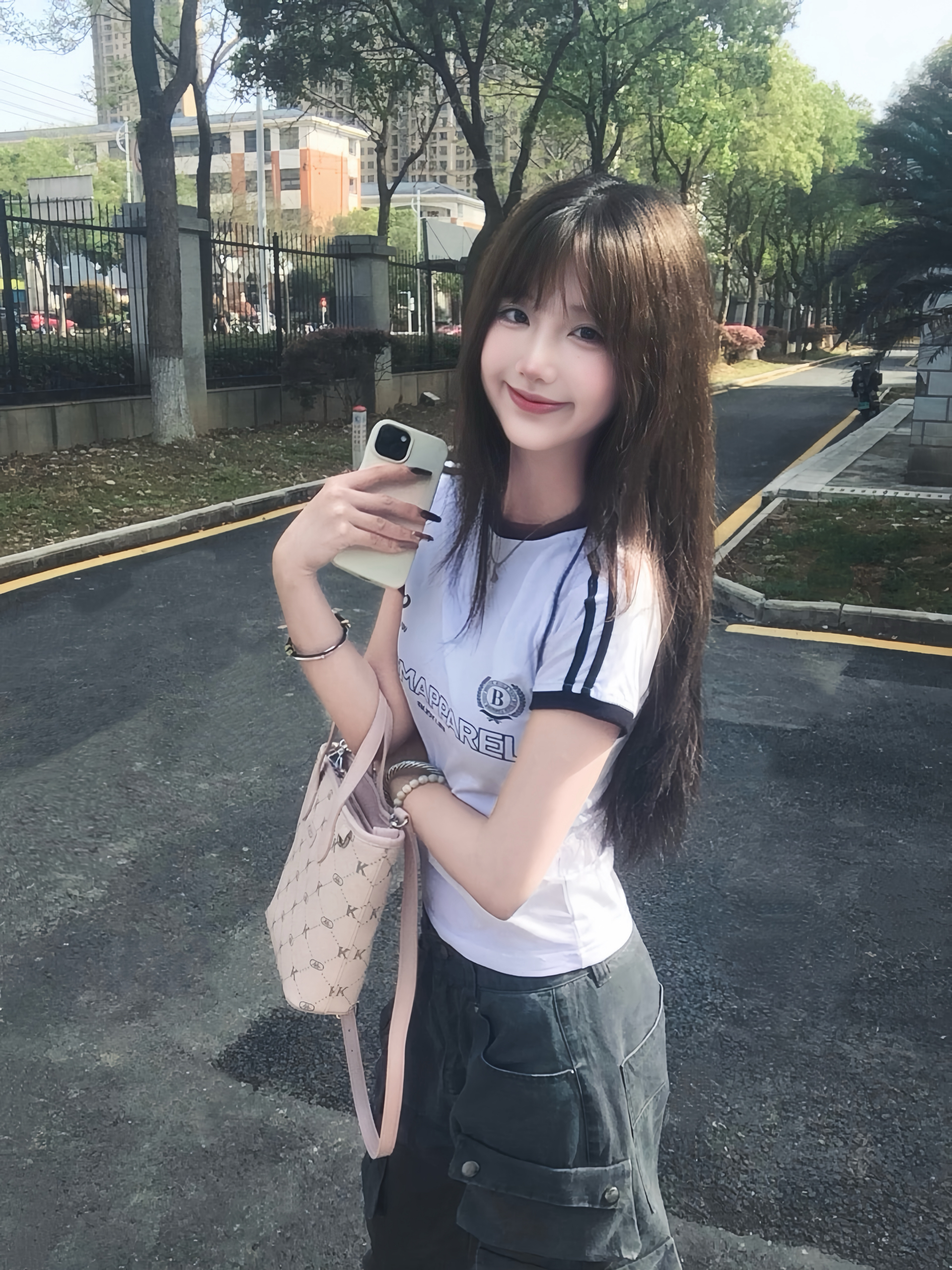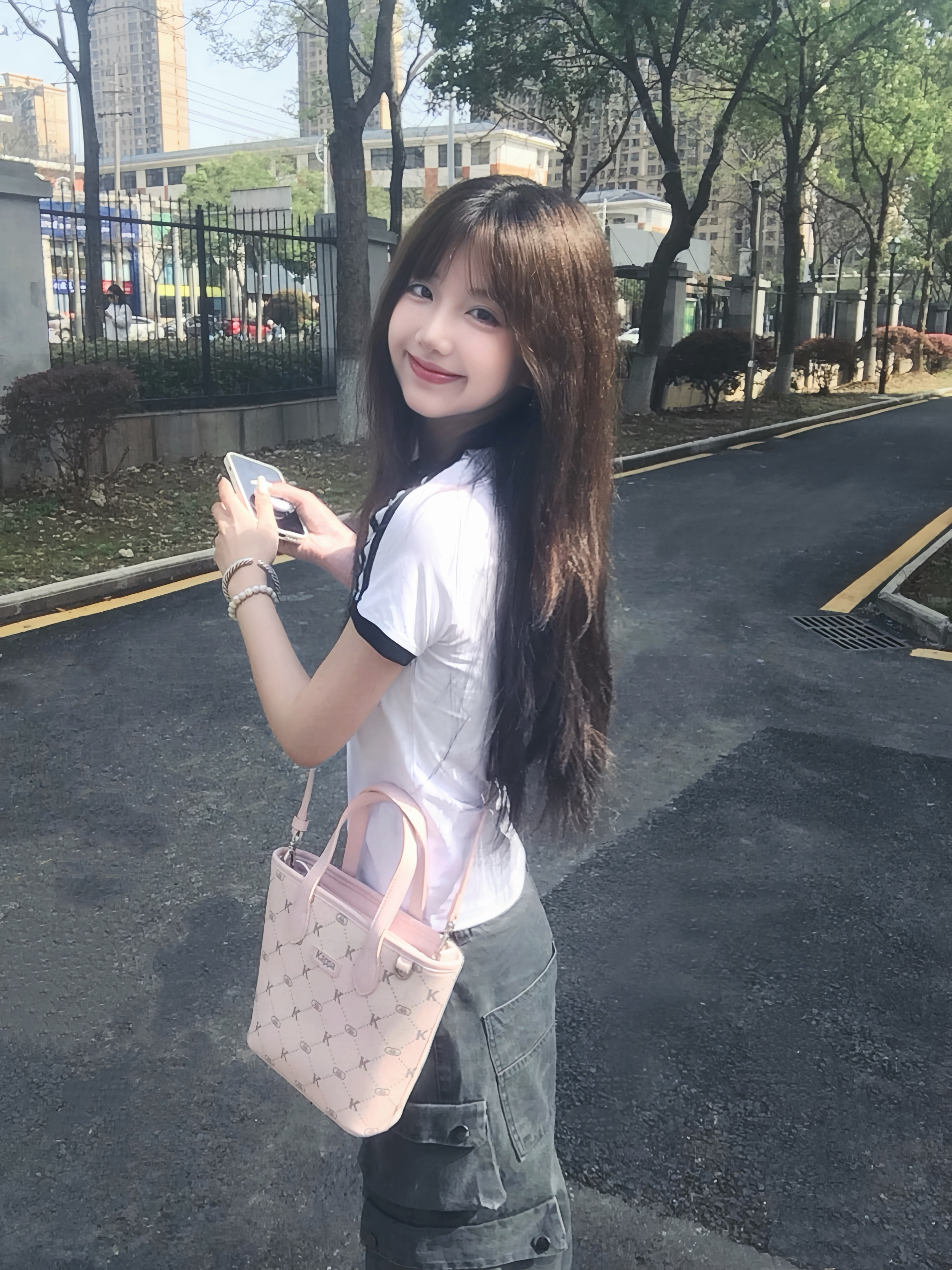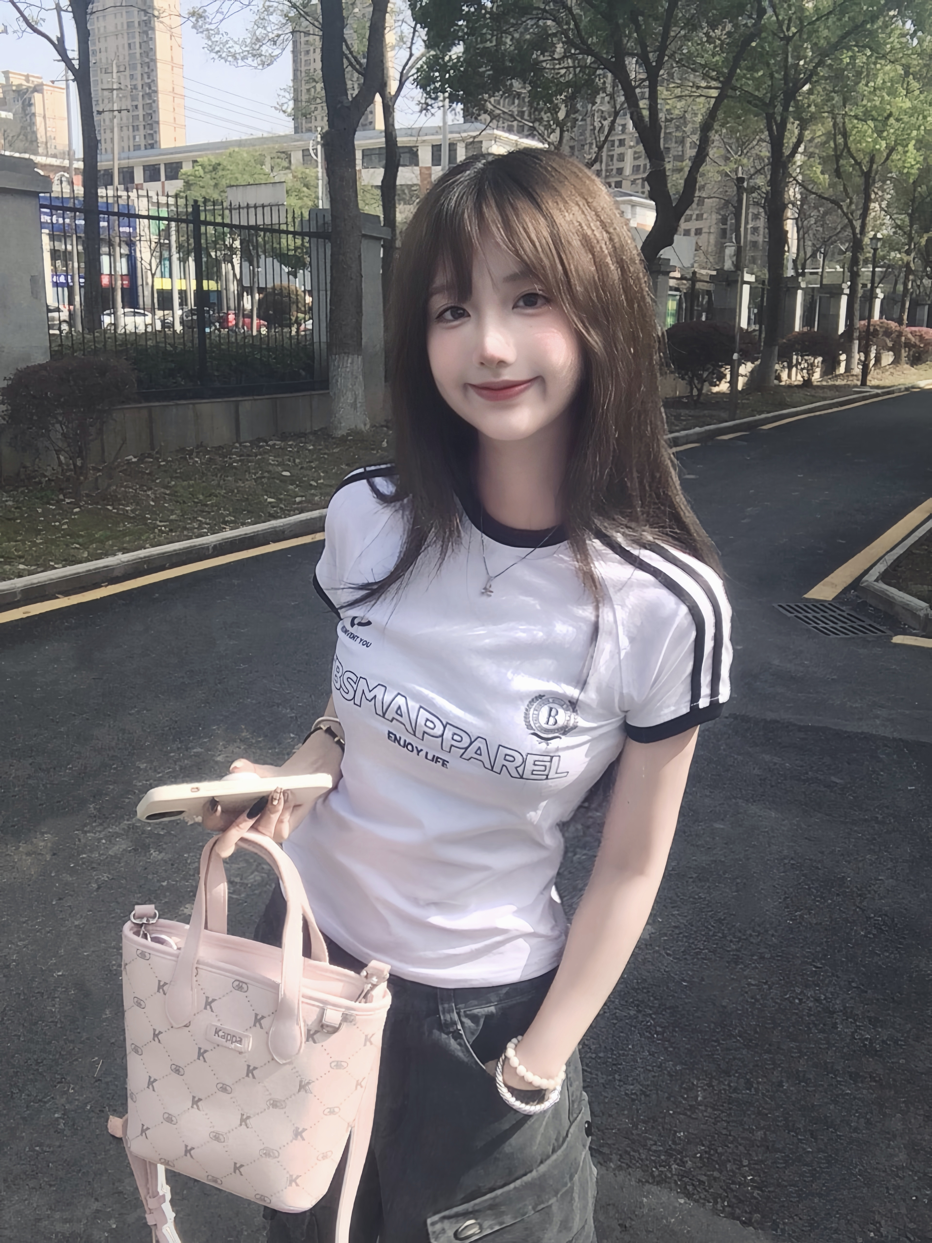 短袖搭配包包真的太适合夏天啦!这样穿很适合出门玩和通勤~kappa这只斜挎包精致容量大 出门装手机化妆品啥的完全没问题 学生党上学可以装下书本哦 斜挎和手持都很合适 真的是日常又好看呢