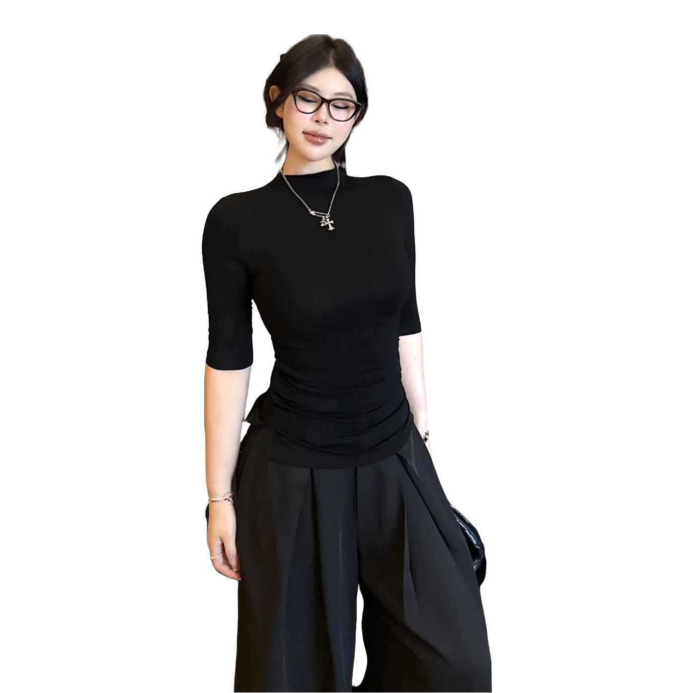 这件黑色半高领短袖真的封神!修身版型巨显腰细,半高领设计修饰脖颈线条,面料软糯亲肤,单穿内搭都好看,搭配牛仔裤秒变酷飒御姐,日常通勤或约会都超合适~ 极简风yyds!这件黑T太懂女生了,半高领+短袖的设计温柔又带点小性感,修身版型巨藏肉,搭配牛仔裤秒变街头酷妹,图书馆拍照氛围感直接拉满,质感超棒!