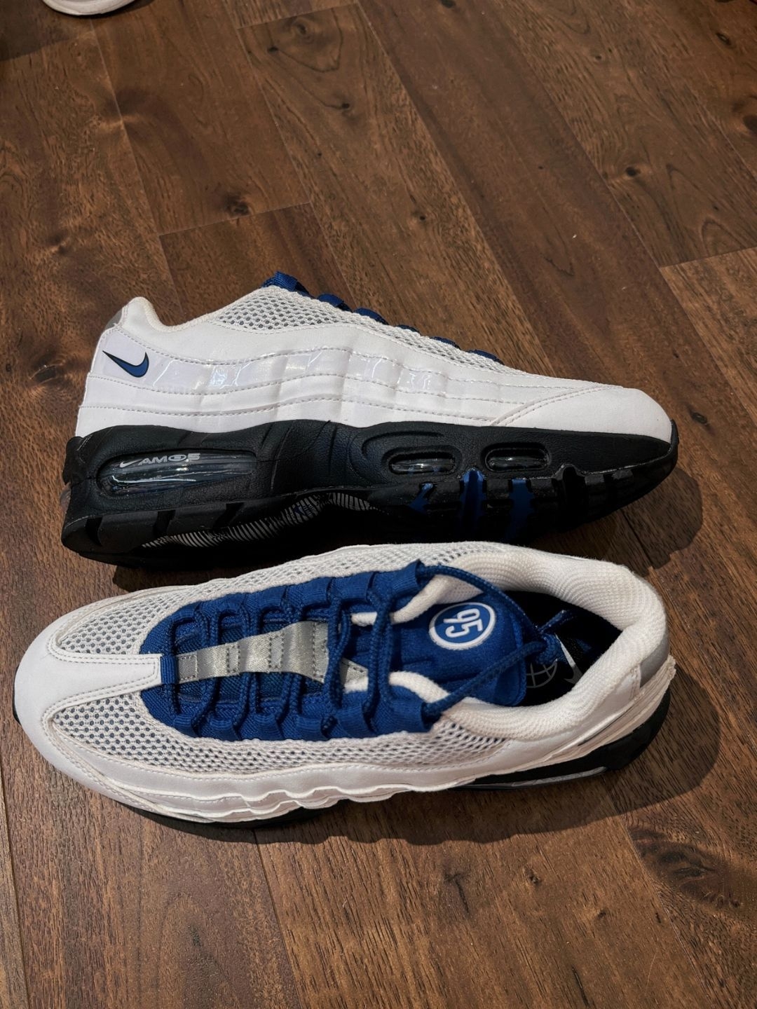 本篇笔记关联了Nike Air Max 95 跑鞋 潮流时尚复古百搭防滑耐磨舒适透气防水气垫织物支撑低帮缓震贴合耐用圆头 白色/皇家蓝等商品,为用户提供真实的使用体验和购买参考。