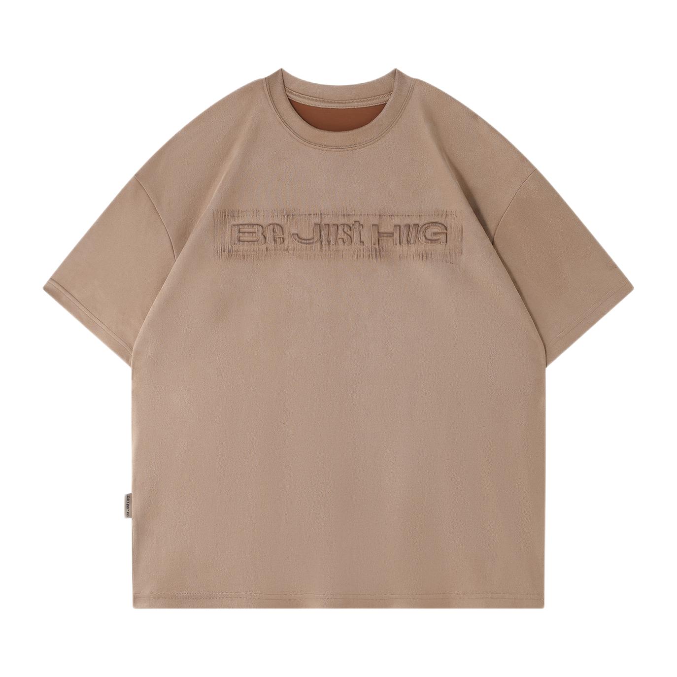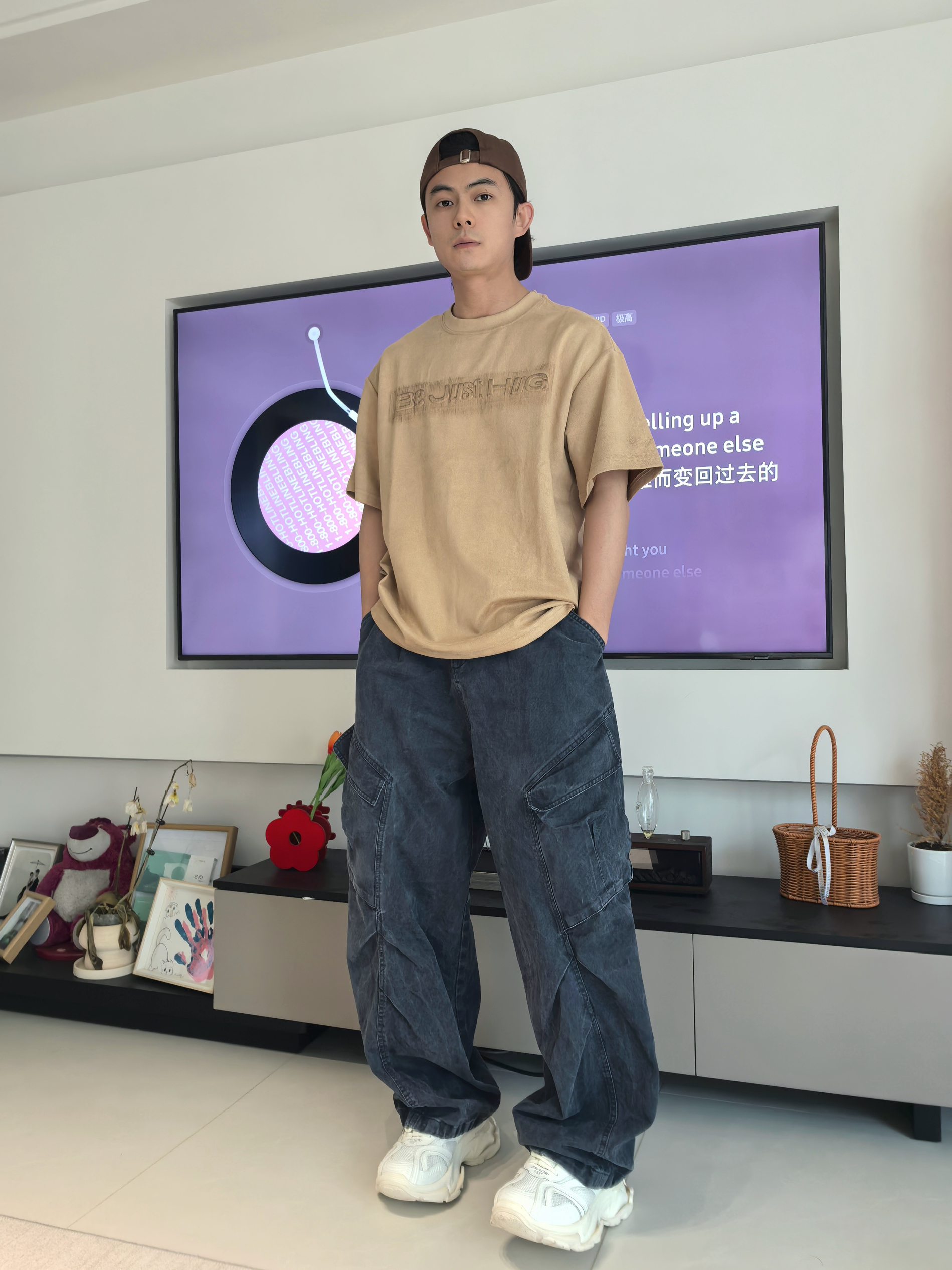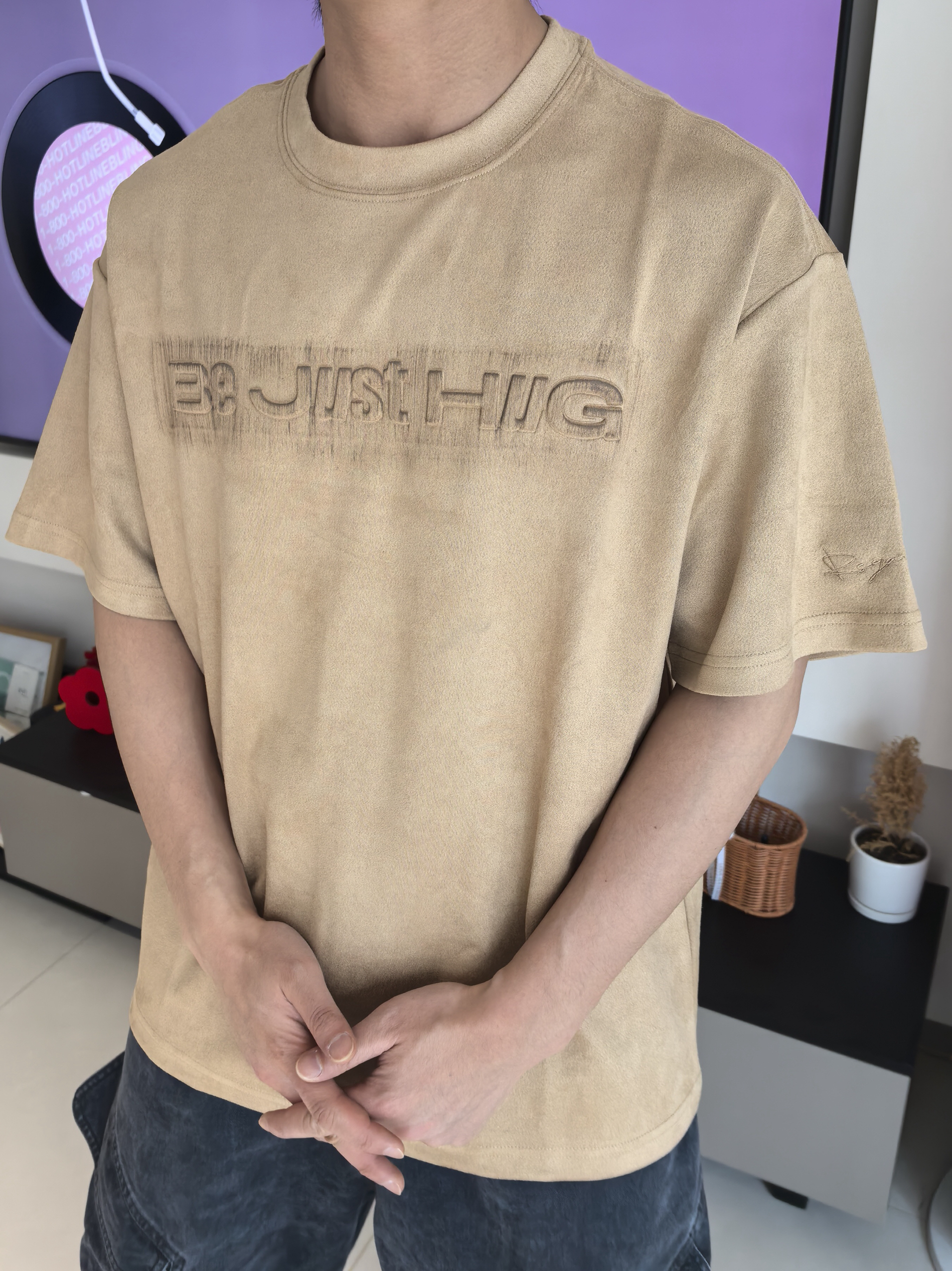 短袖一件入春冷不冷?🥶 ☘️今天我上身这件大地色系短T,不在于颜色独特,而是给我最大的感受在于麂皮绒的质感和视觉效果更显高级! 麂皮绒柔软亲肤,春季穿感受到温度正合适。 胸前是立体字母刺绣,会有一点水洗做旧效果,凸起纹路搭配麂皮绒用手触摸质感Nice! 🏃我175/135上身的M码,版型宽松落肩,搭配一条深蓝做旧宽松工装裤,鞋子是一双偏前卫的老爹鞋 整体能有美式复古氛围,不单调。 #