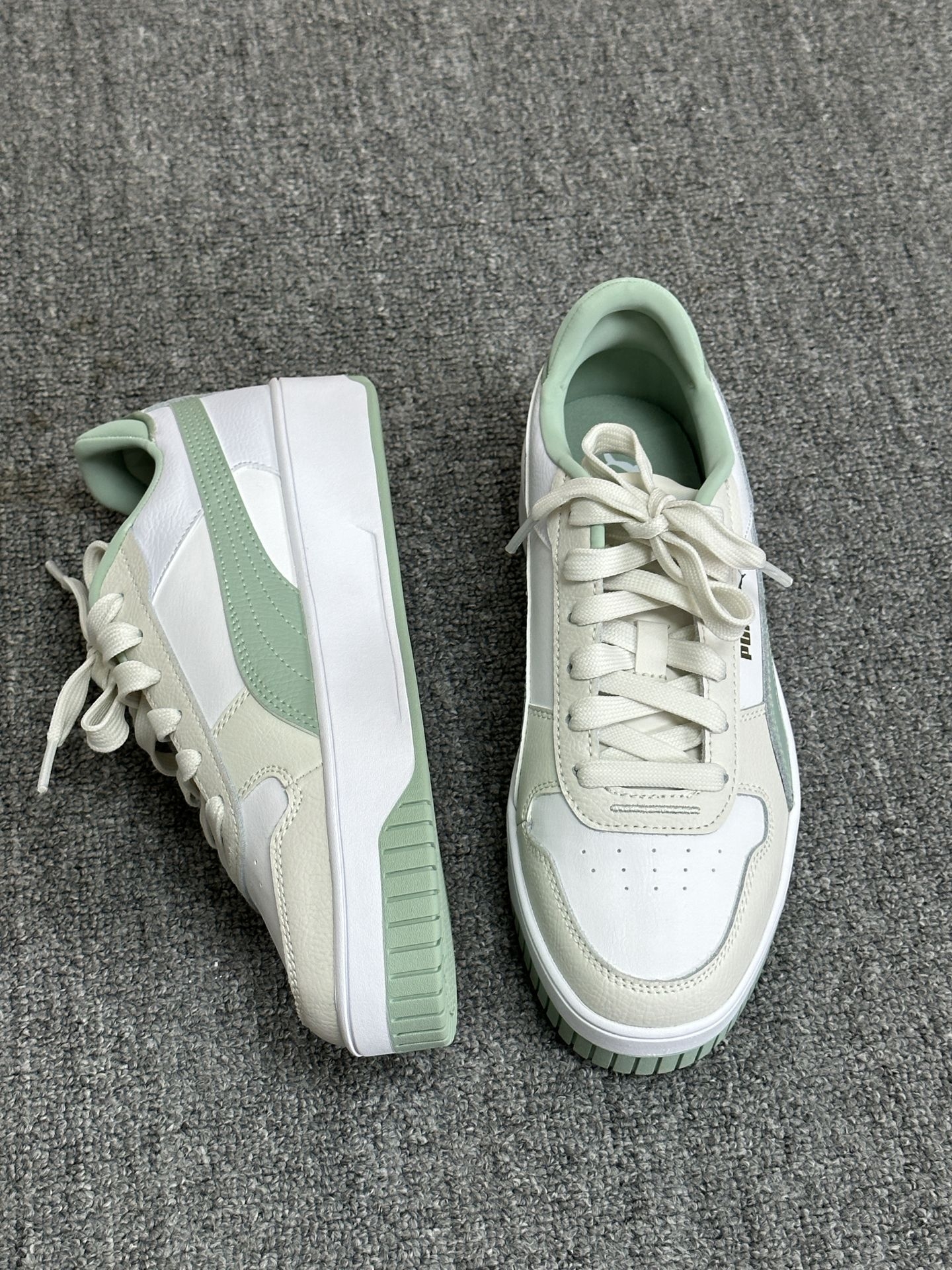 本篇笔记关联了Puma/彪马 Carina street 厚底鞋 板鞋 防滑耐磨减震百搭轻便透气舒适休闲复古运动增高抓地 白色/豆绿色等商品,为用户提供真实的使用体验和购买参考。