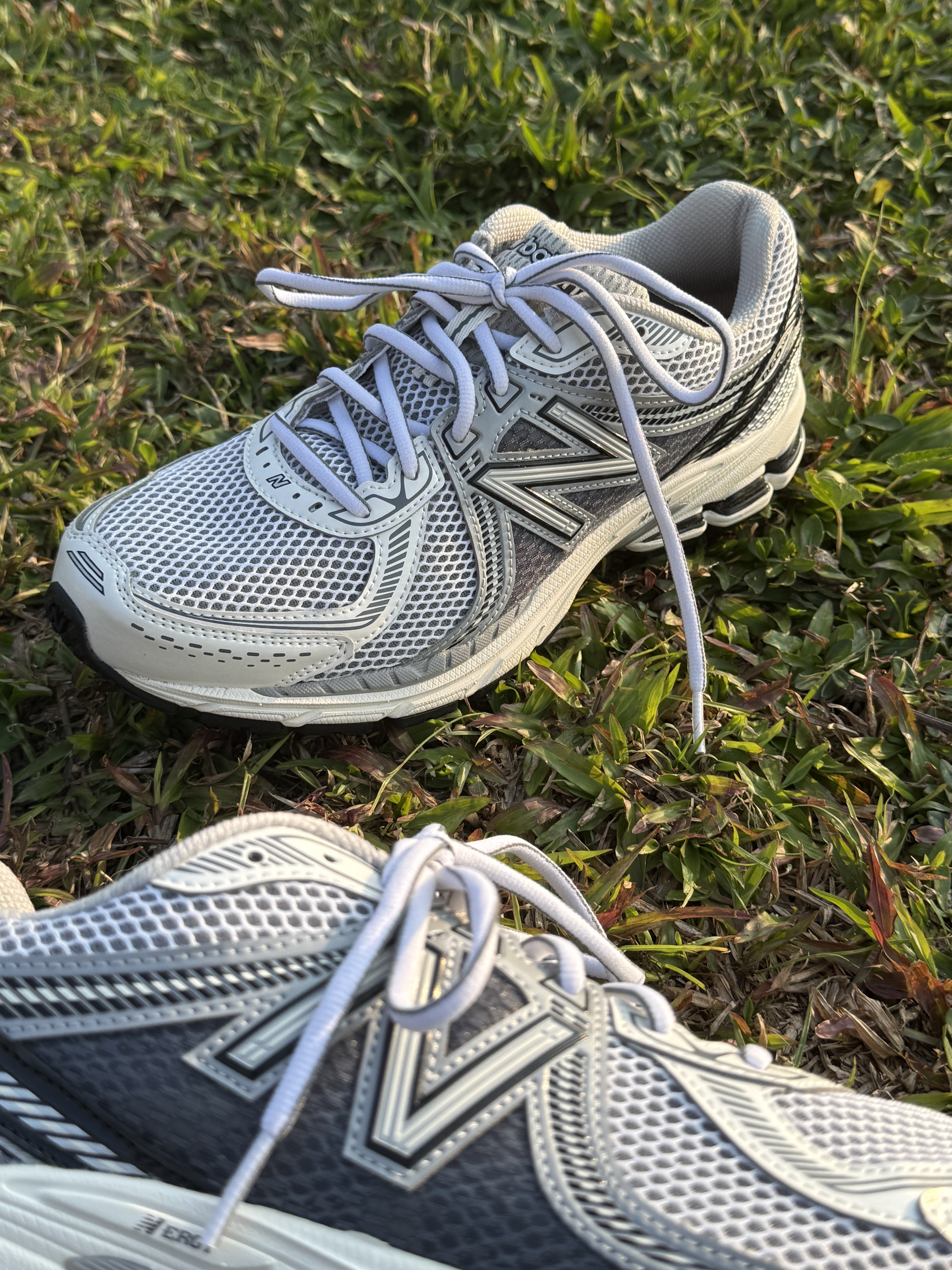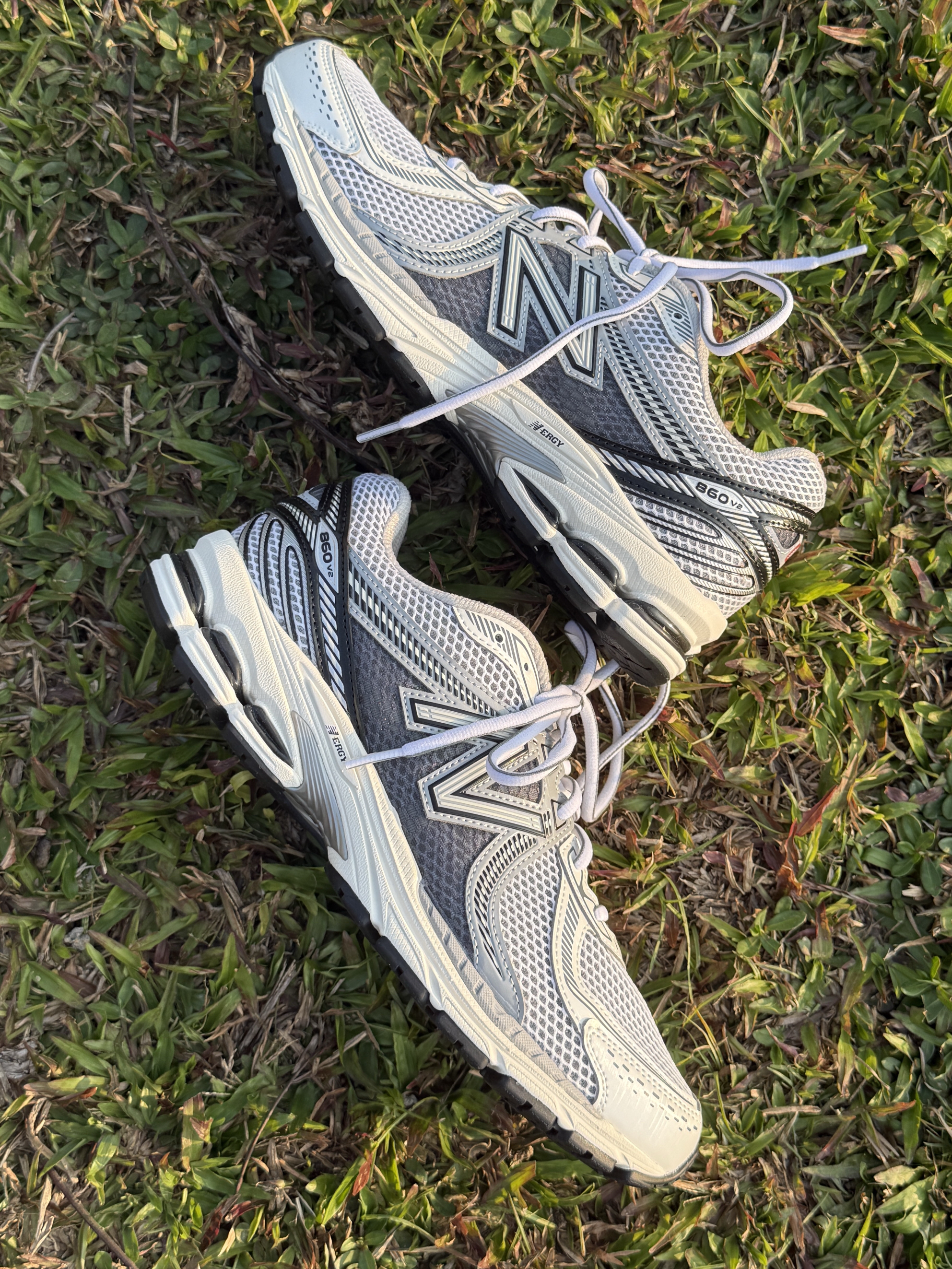 这段时间日常通勤、出门晃悠基本都穿这双NB 860v2,越穿越觉得是那种“买了不后悔”的鞋。 第一眼就是很经典的千禧年复古跑鞋感,银灰+米白的网面拼接,不是那种夸张的配色,日常穿完全不挑衣服,牛仔裤、休闲裤、运动裤随便搭都不违和,就算是稍微休闲点的通勤穿搭也能hold住,不用费脑子想搭配。 上脚最直观的就是舒服,网面的透气性绝了,春天穿完全不闷脚,脚汗星人也能放心穿。鞋底的缓震是那种很扎实的软...