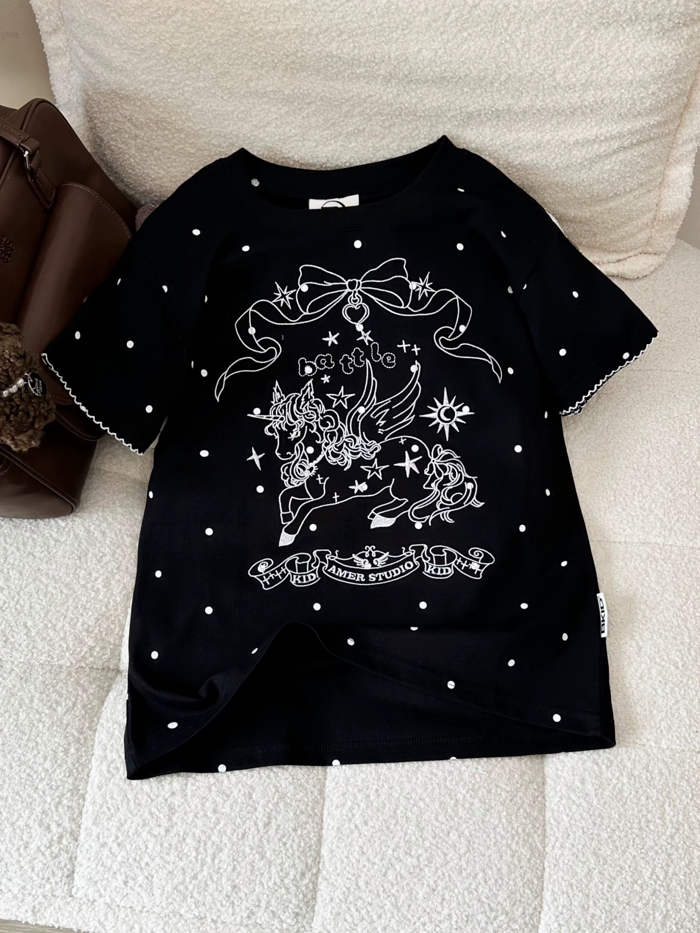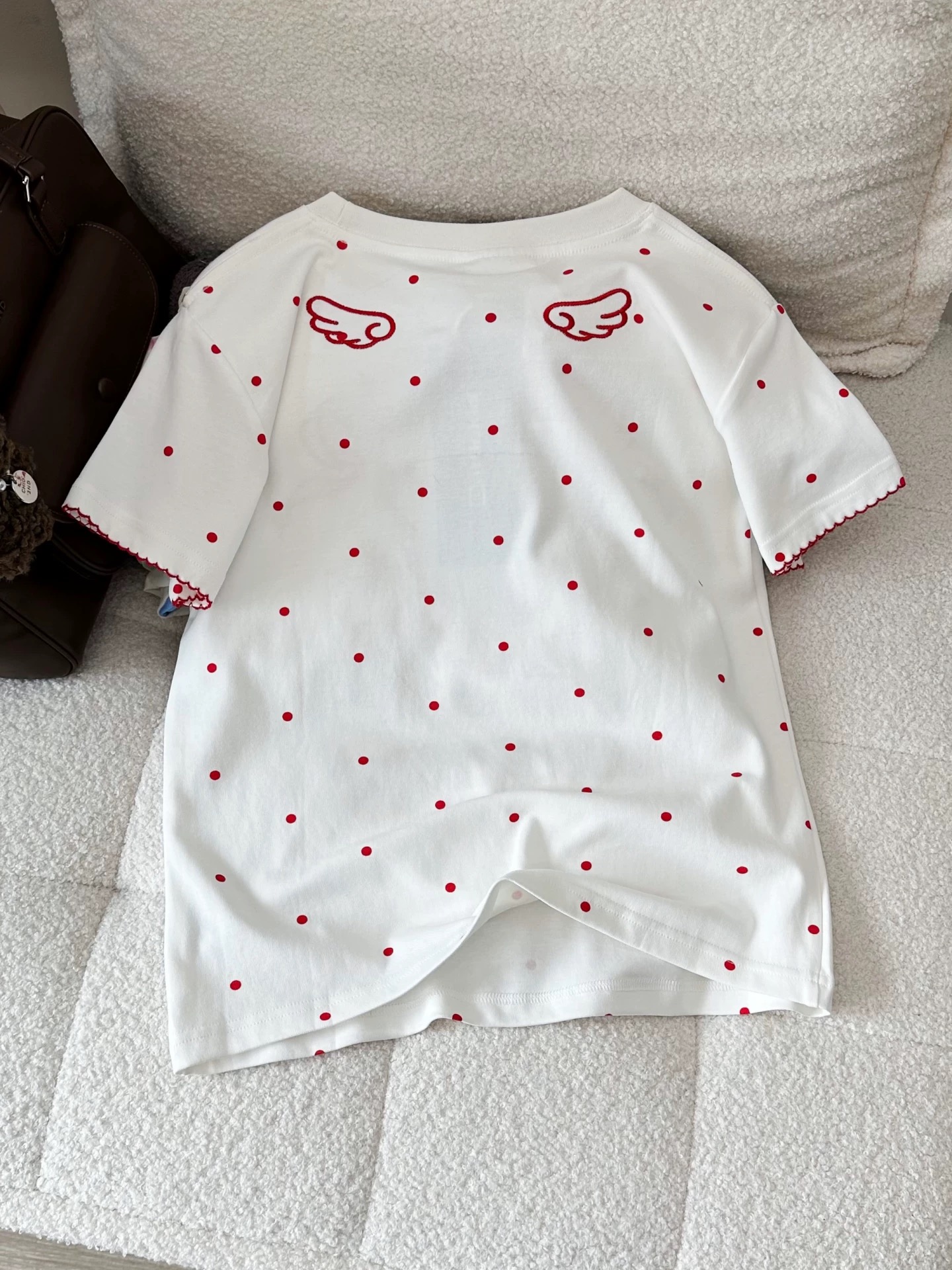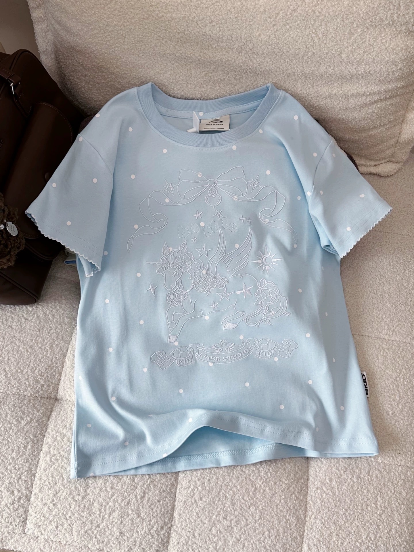 全款都有精致刺绣+波点元素,宽松版型不挑身材,棉质面料亲肤透气,日常通勤、约会、出游都适配,三色闭眼入都不踩雷!三色独角兽波点T恤,把甜妹、清透、酷飒三种风格都拿捏了! 奶白款温柔,海盐蓝清透,酷黑款个性,背后小翅膀刺绣细节拉满,软乎乎棉质上身超舒服,日常穿搭闭眼搭都好看~