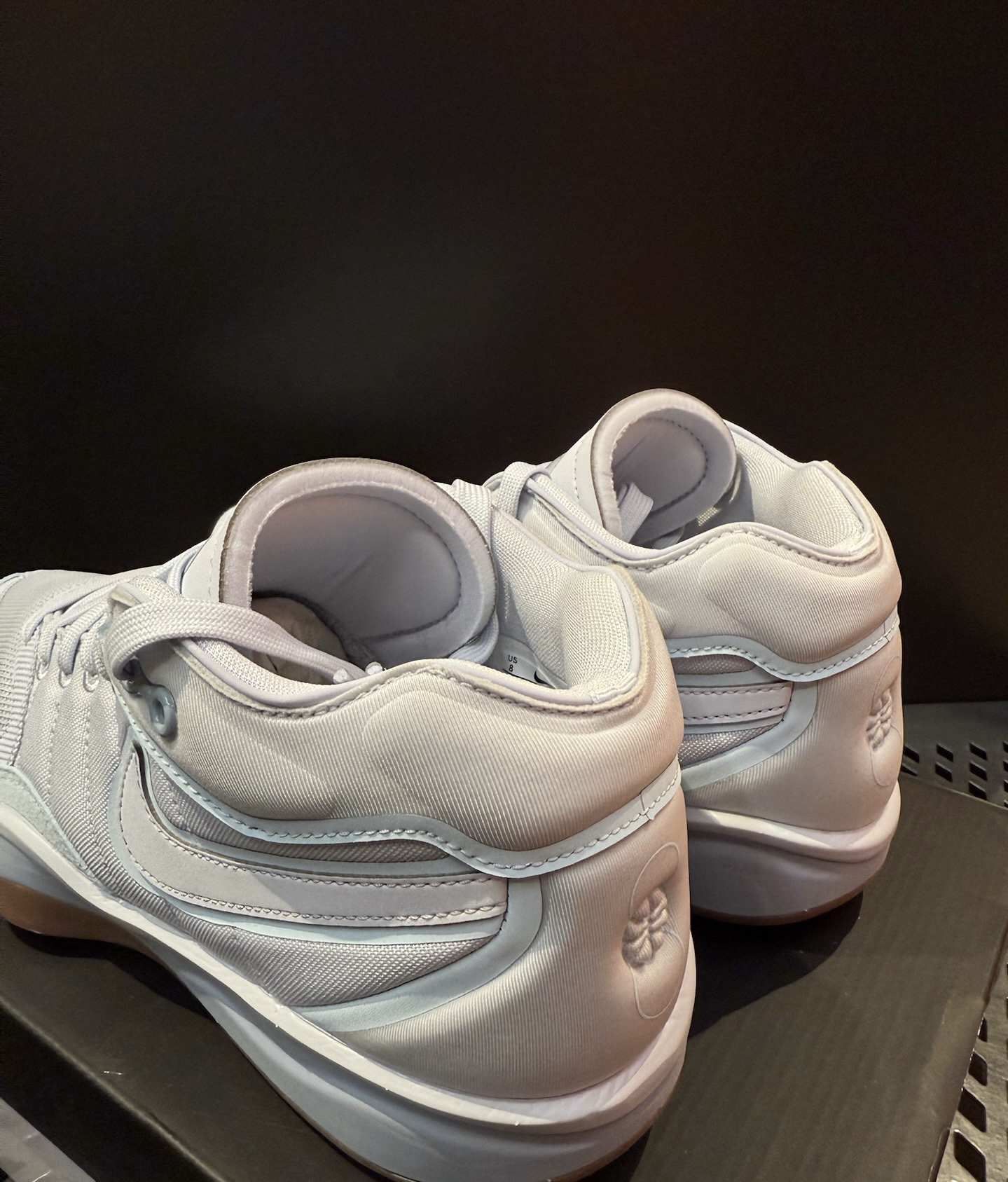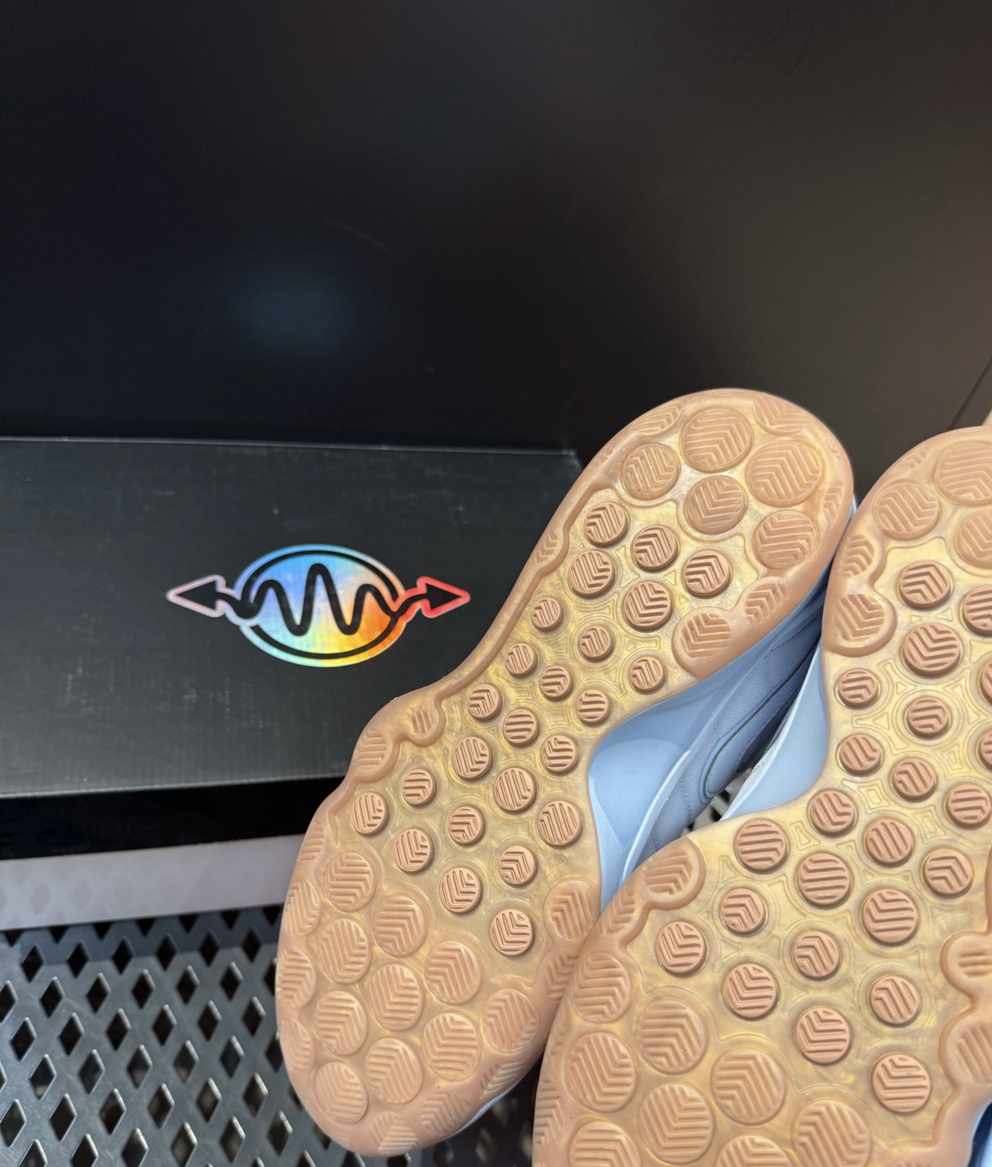 整体配色以多种浅蓝色为主💧 清新自然的同时外观也很顶🆙 尤其是鞋底流沙金设计个人感觉非长高贵🫅 整体鞋面包裹性以及舒适度都很不错👍🏿 非常适合喜欢浅色系鞋子的朋友们🪙 中底采用zoom科技缓震的同时增加弹性👟 脚感没得说🐂