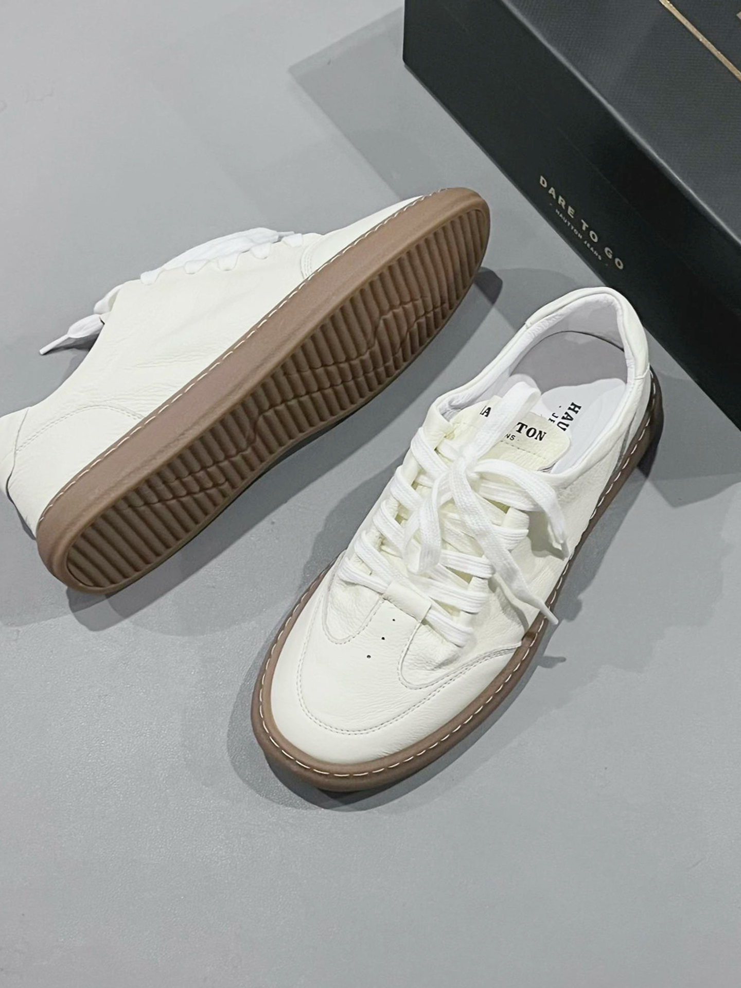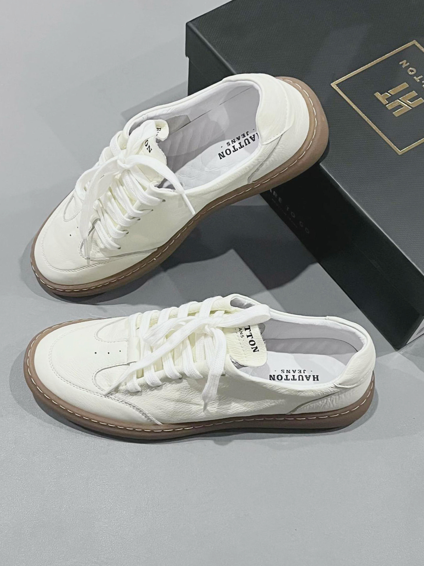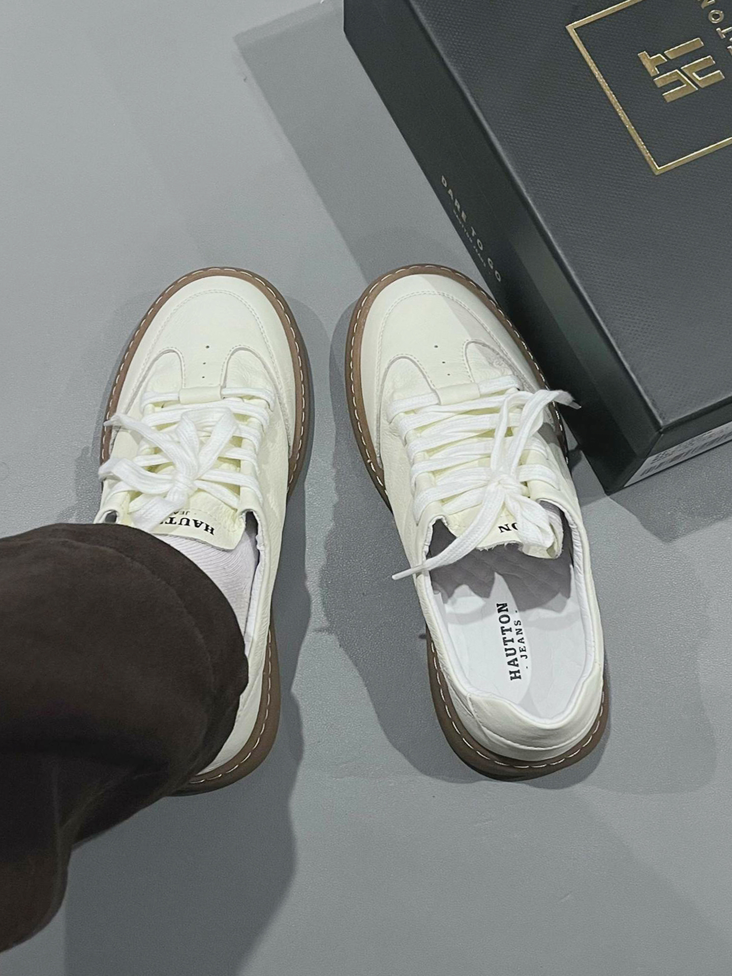本来只是随便走走,想趁着晚风晃一晃,踩上这双 HAUT.TON 小白鞋就出了门。 踩着细腻的荔枝纹皮面走在老巷🍂,生胶底稳稳贴住青石板,软乎乎的皮质裹着脚,配着深棕休闲裤,一转角就撞见卖手作桂花糕的小店,甜香裹着晚风漫出来。 如果不是穿这双鞋,可能就错过了这份清甜的烟火气📸,就是鞋口偏浅,长时间行走会轻微蹭到脚踝。
