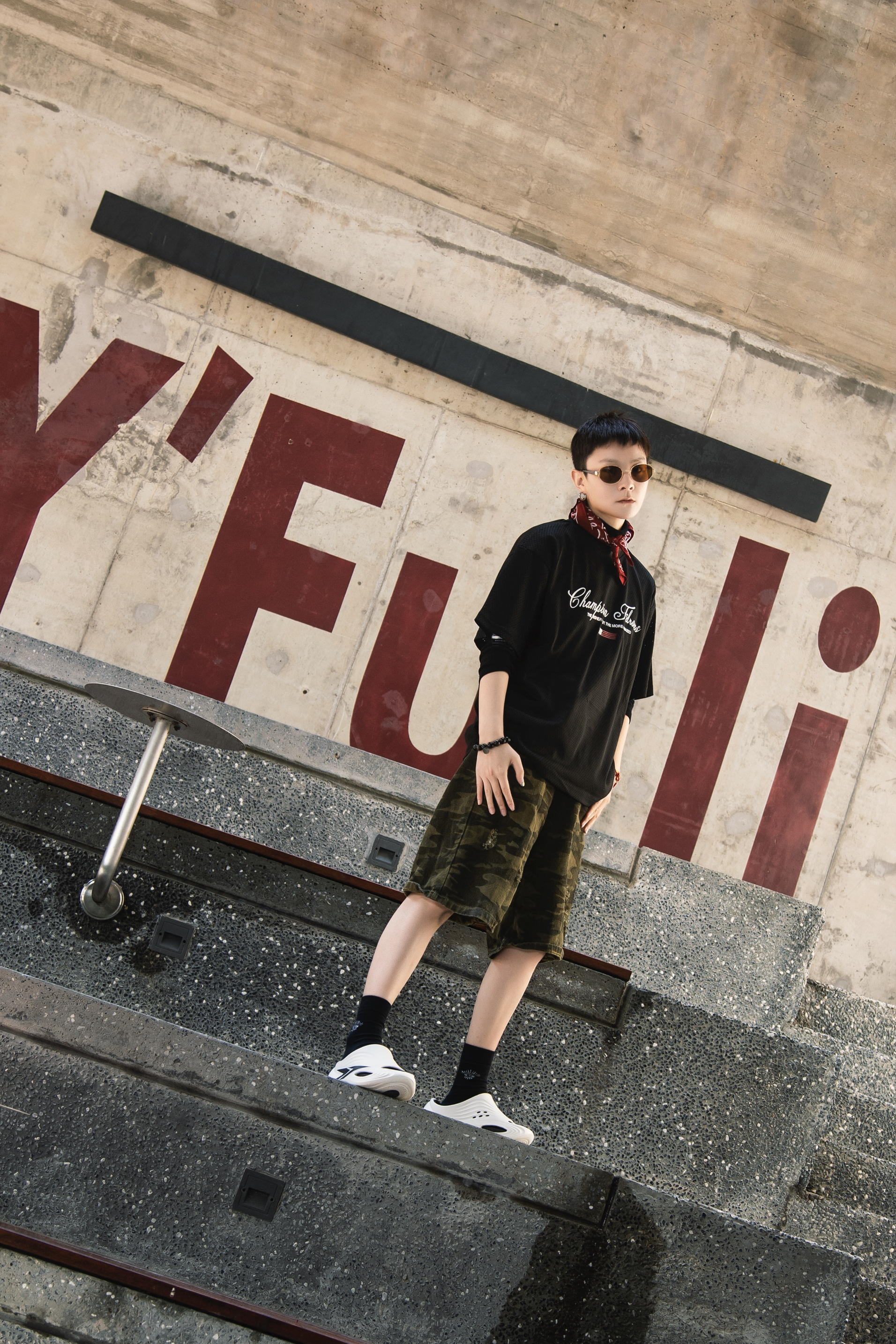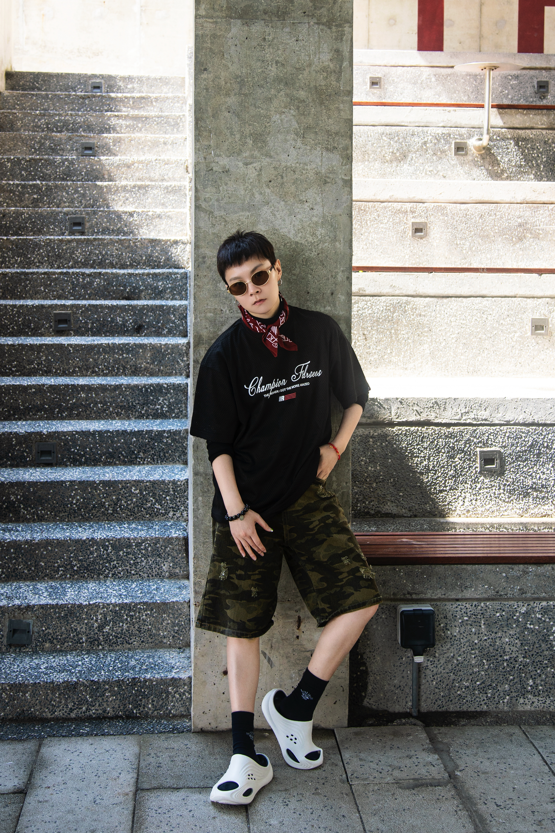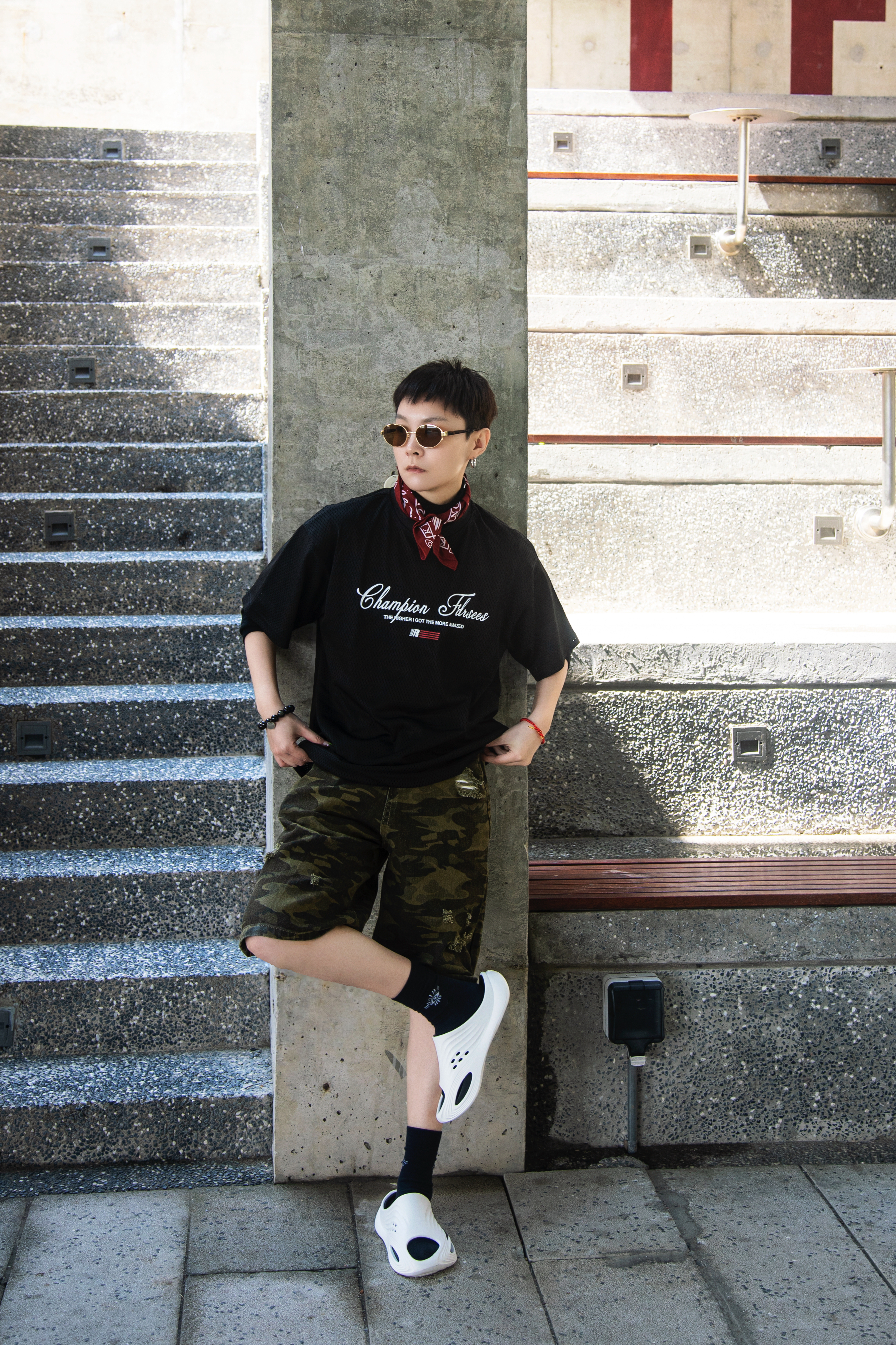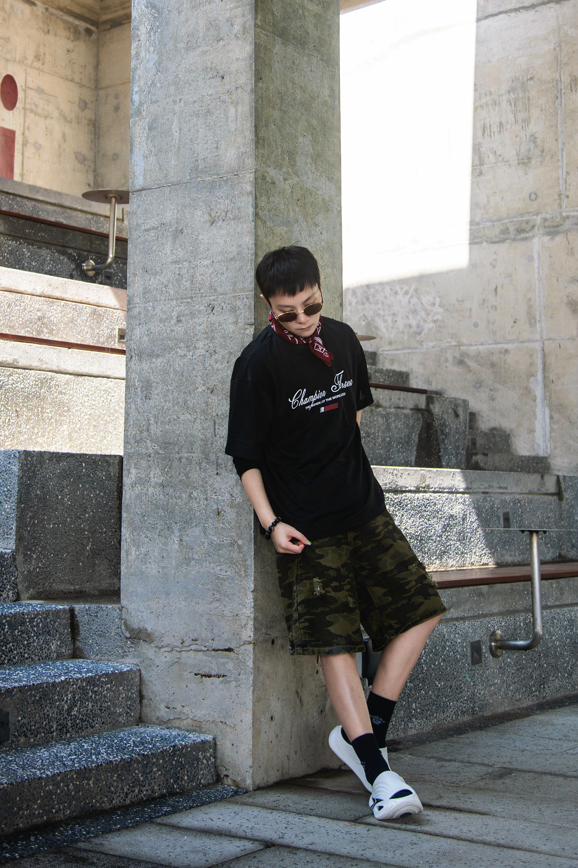 南方热起来了 一件球衣T恤提前入夏 穿搭指南: 上身一件黑色网眼T恤 球衣风字母印花街头感十足 配一条迷彩五分裤增加一点复古感 系条红色方巾来个撞色 上脚一双tcellars拖鞋 白色鞋身搭配黑涂鸦 这个季节一脚蹬出门 舒服又方便 拖鞋也能穿出潮流感 夏季的球衣穿搭已经给你放这了