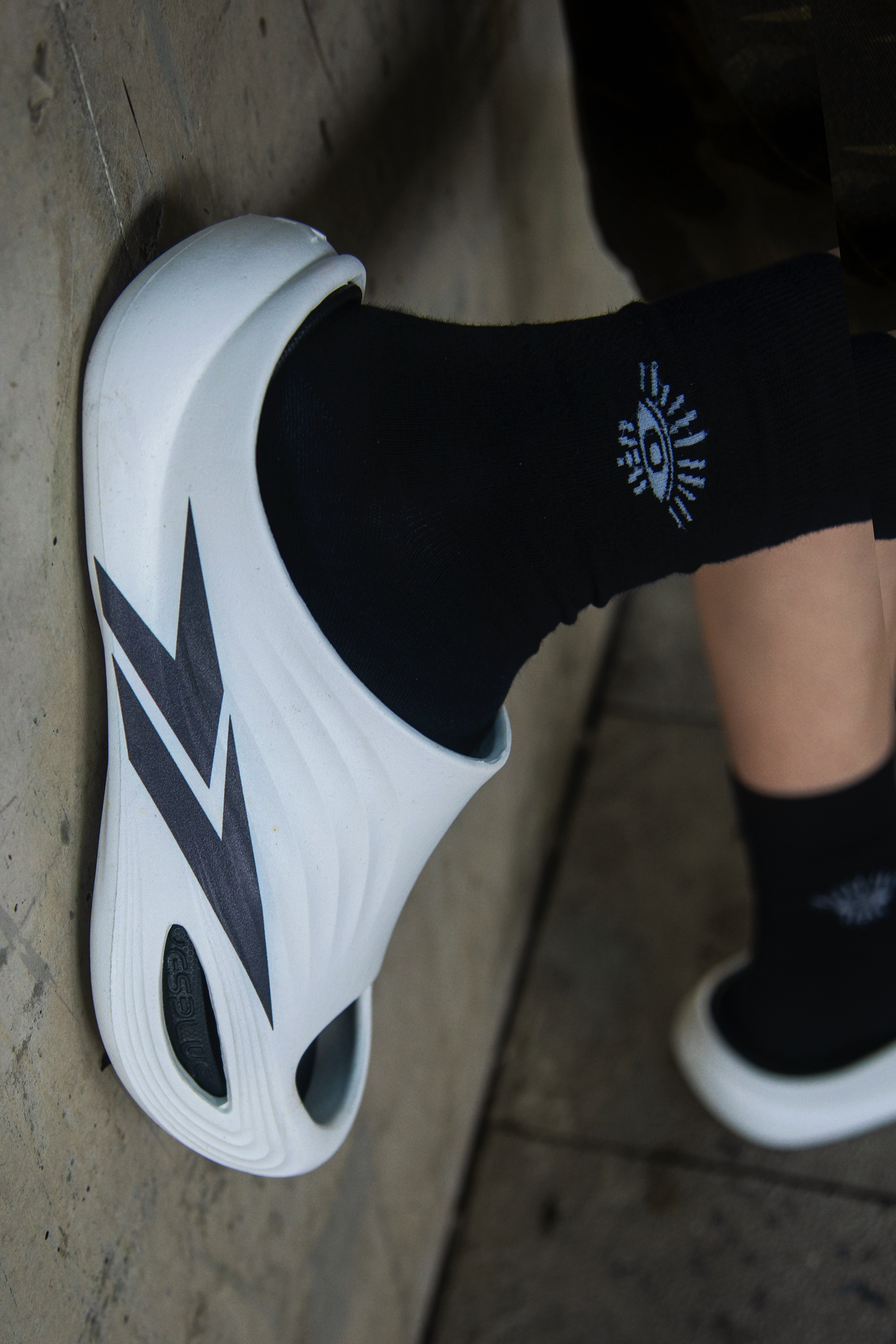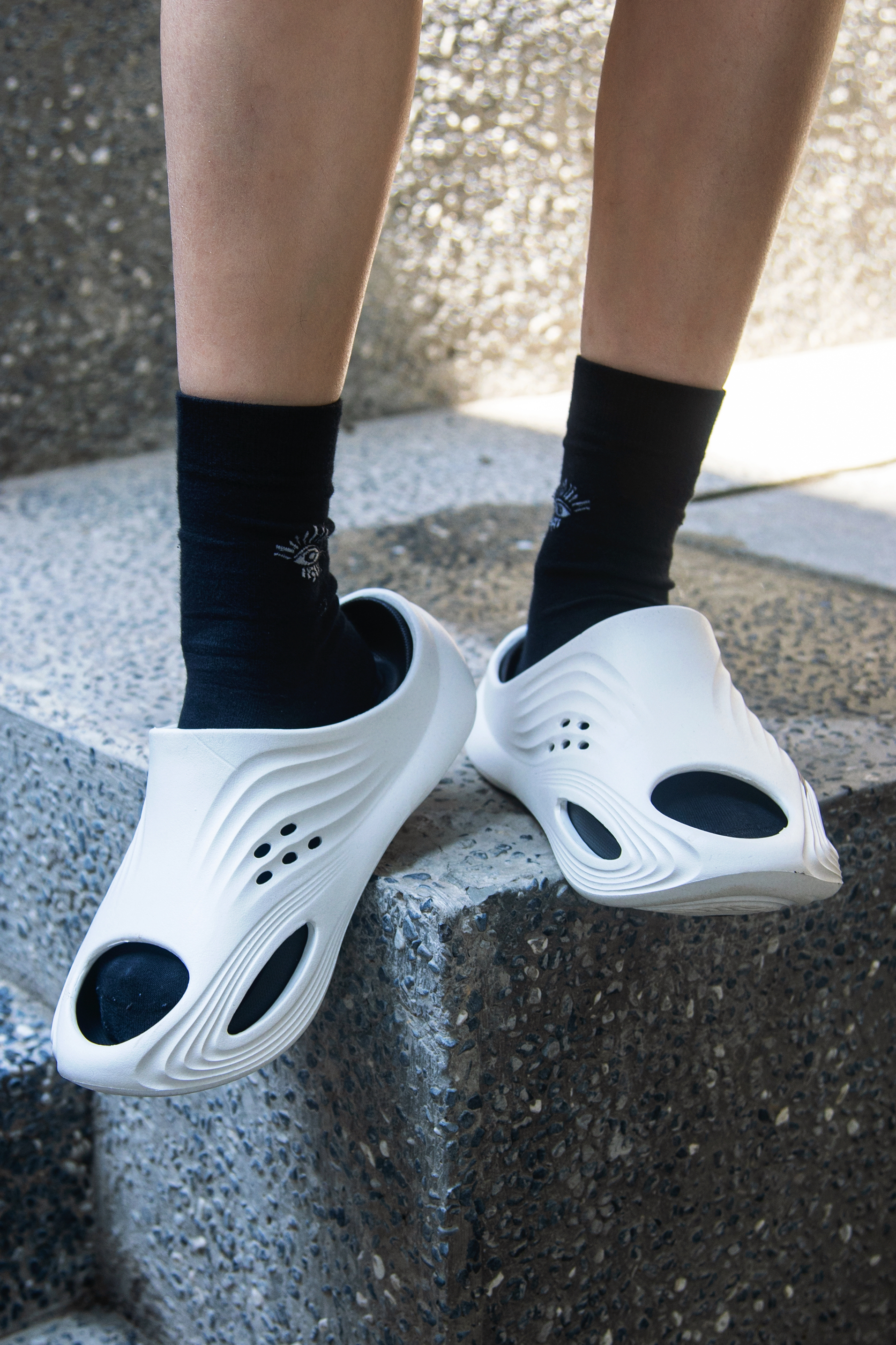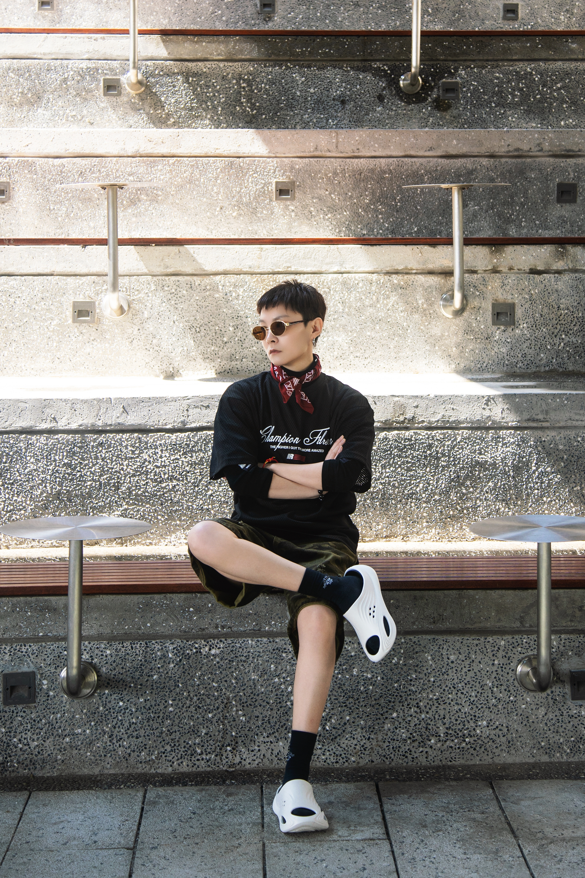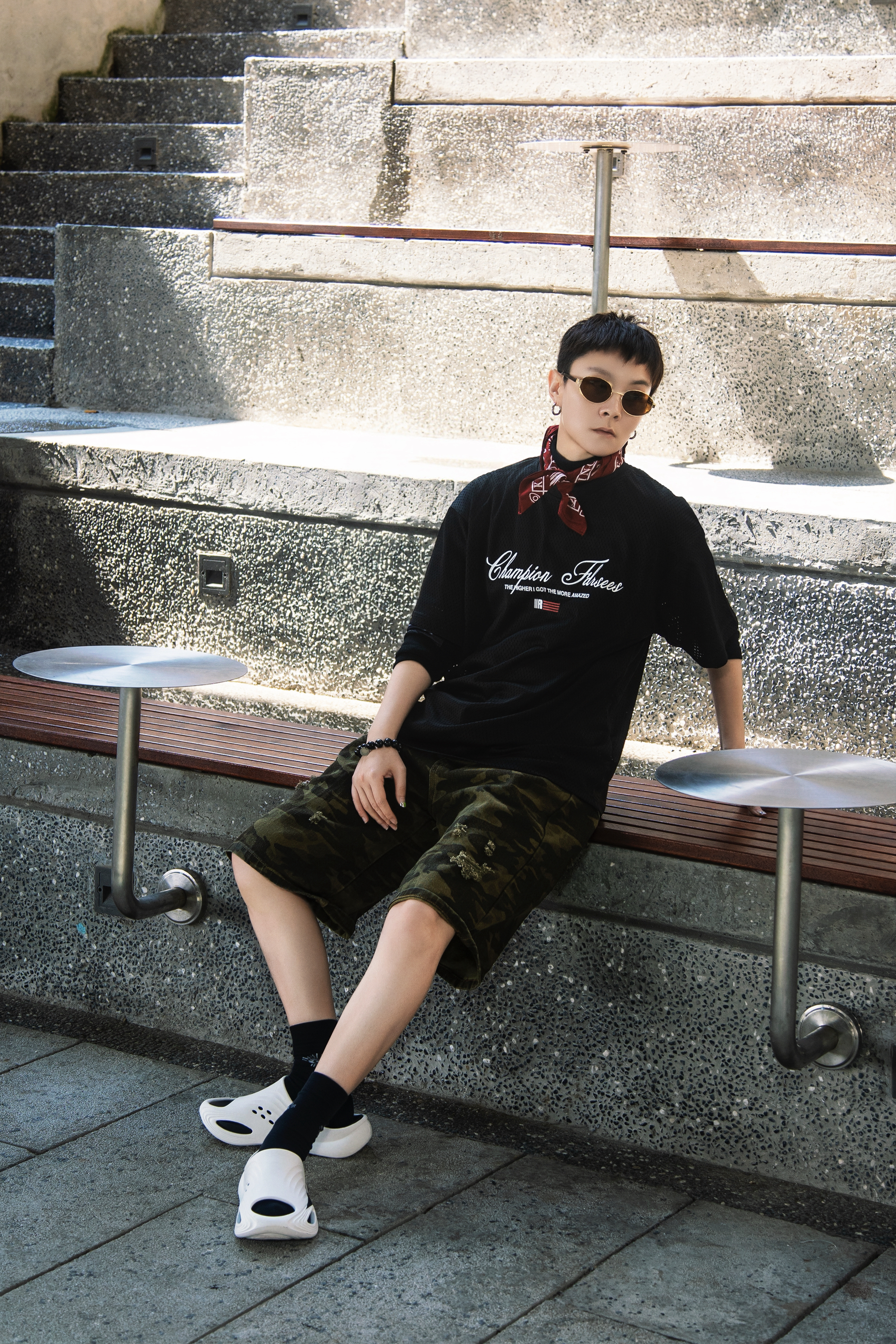 南方热起来了 一件球衣T恤提前入夏 穿搭指南: 上身一件黑色网眼T恤 球衣风字母印花街头感十足 配一条迷彩五分裤增加一点复古感 系条红色方巾来个撞色 上脚一双tcellars拖鞋 白色鞋身搭配黑涂鸦 这个季节一脚蹬出门 舒服又方便 拖鞋也能穿出潮流感 夏季的球衣穿搭已经给你放这了