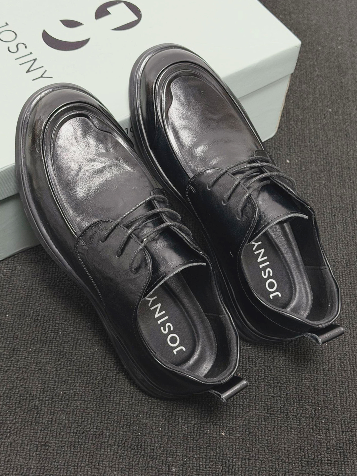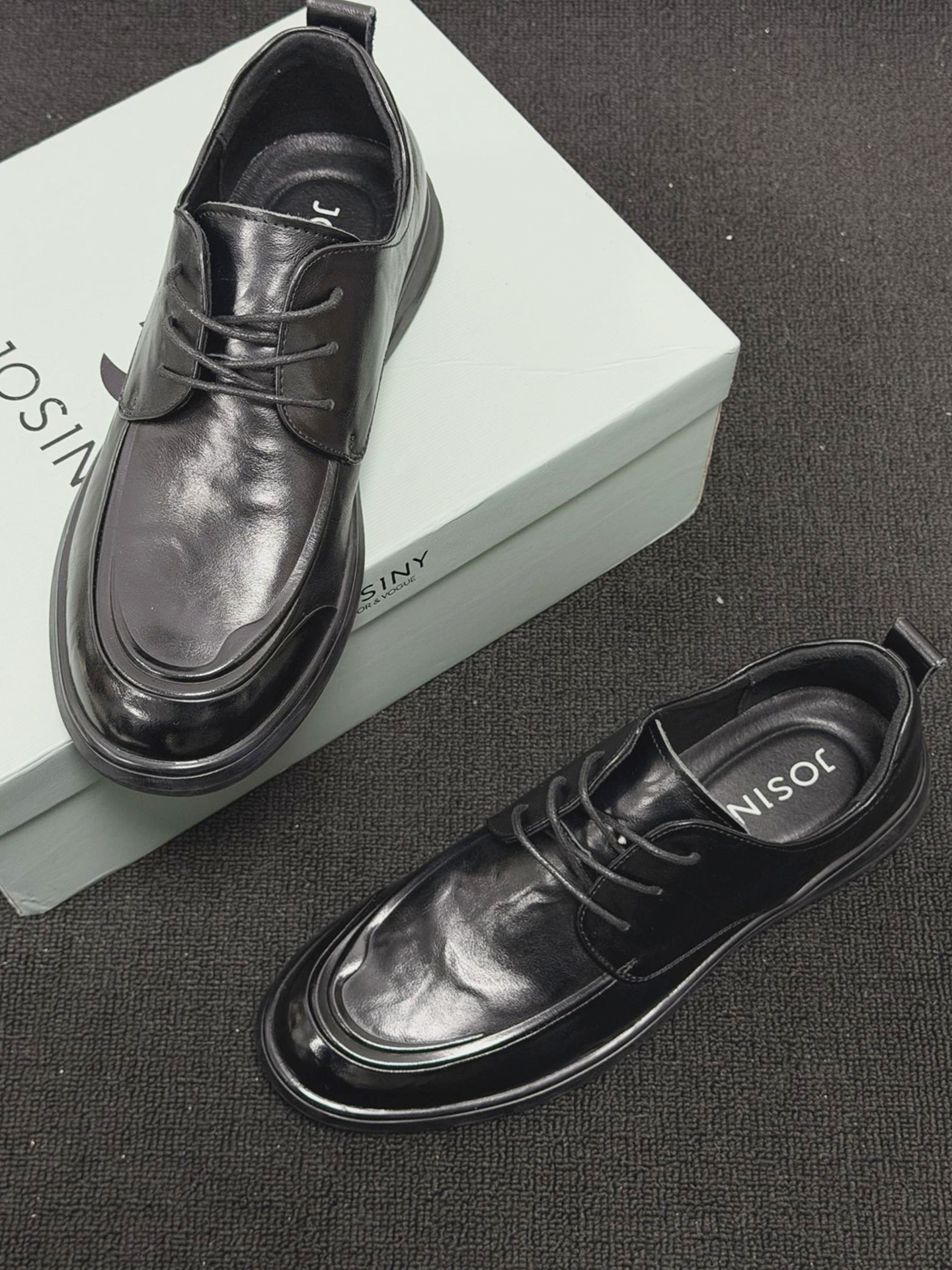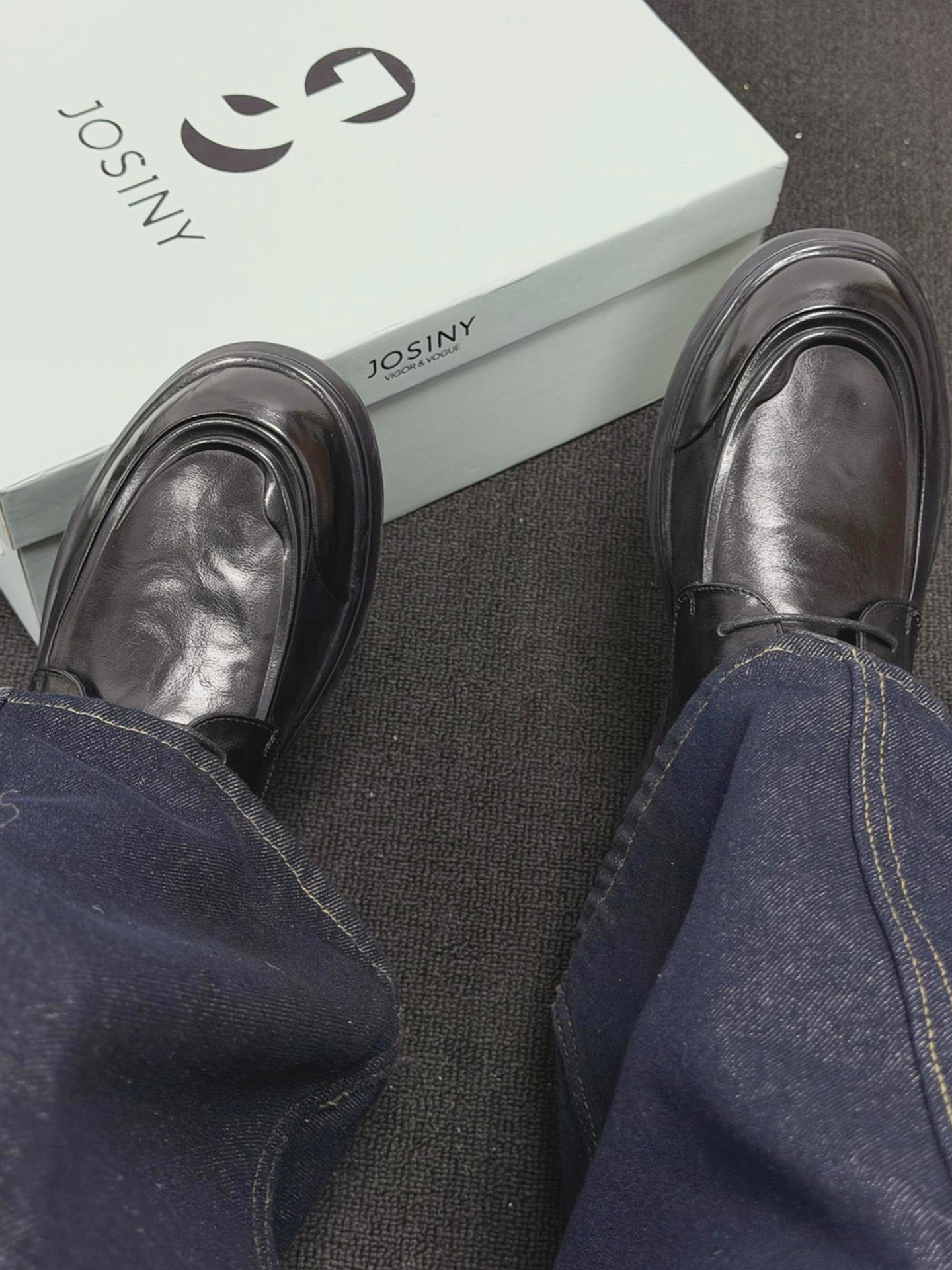 这双鞋最绝的是亮面黑皮线条利落,搭藏青直筒牛仔裤,日常通勤都自带沉稳氛围感。 换身衣服又是另一种感觉,配深灰西裤赴商务会面,搭卡其工装裤逛老巷也随性有层次。