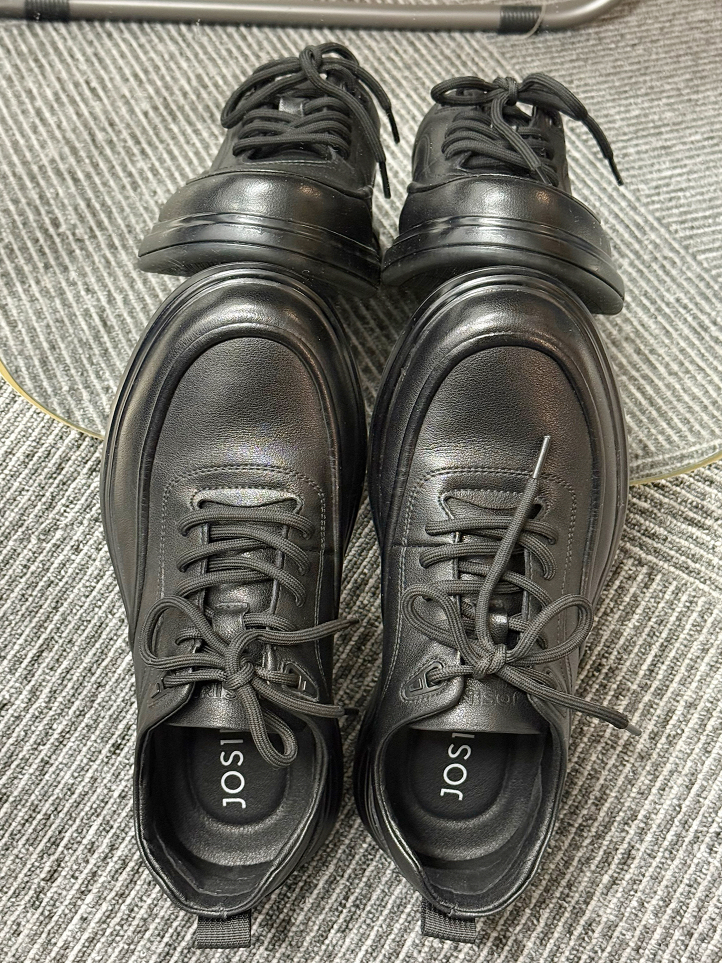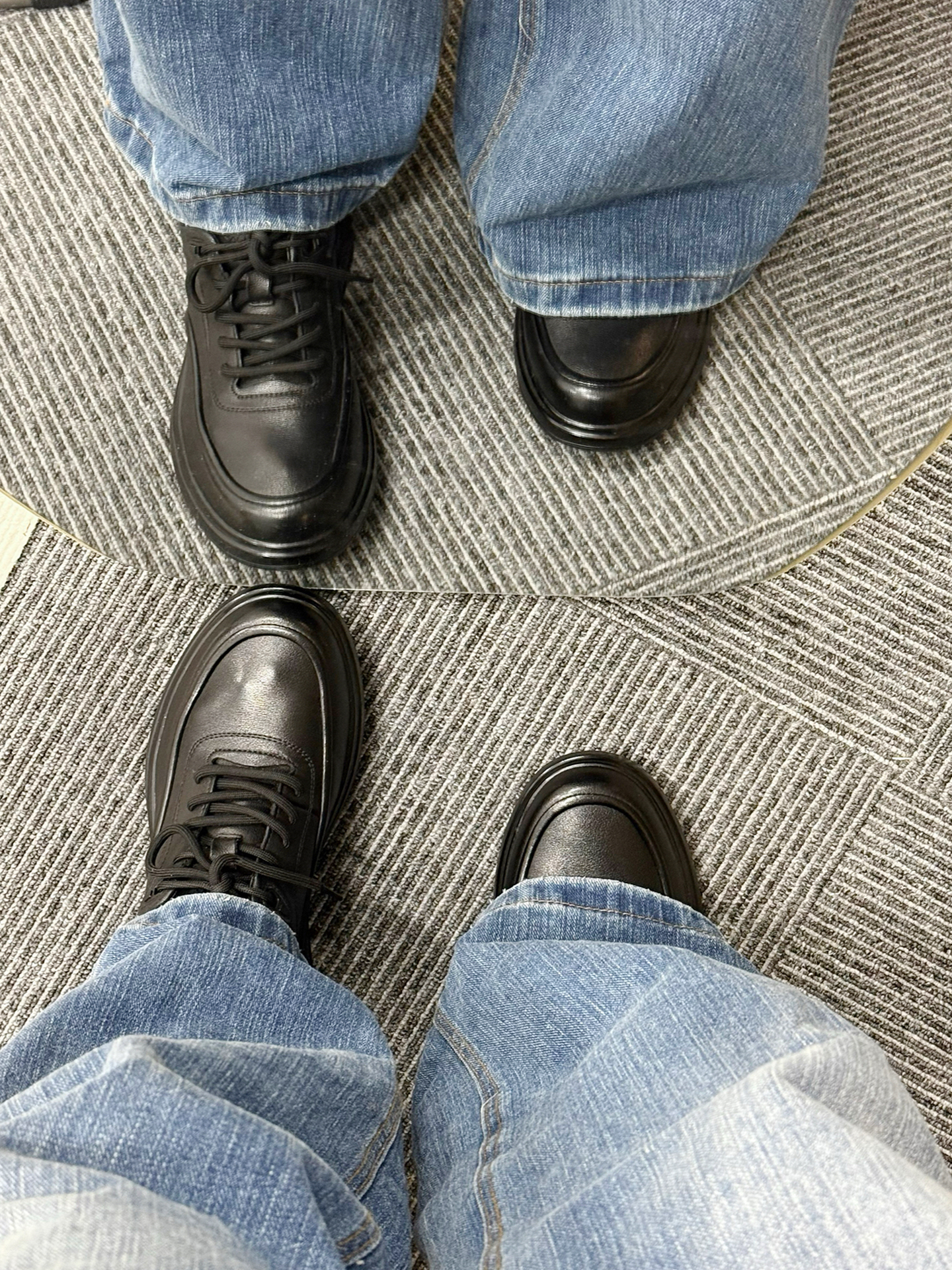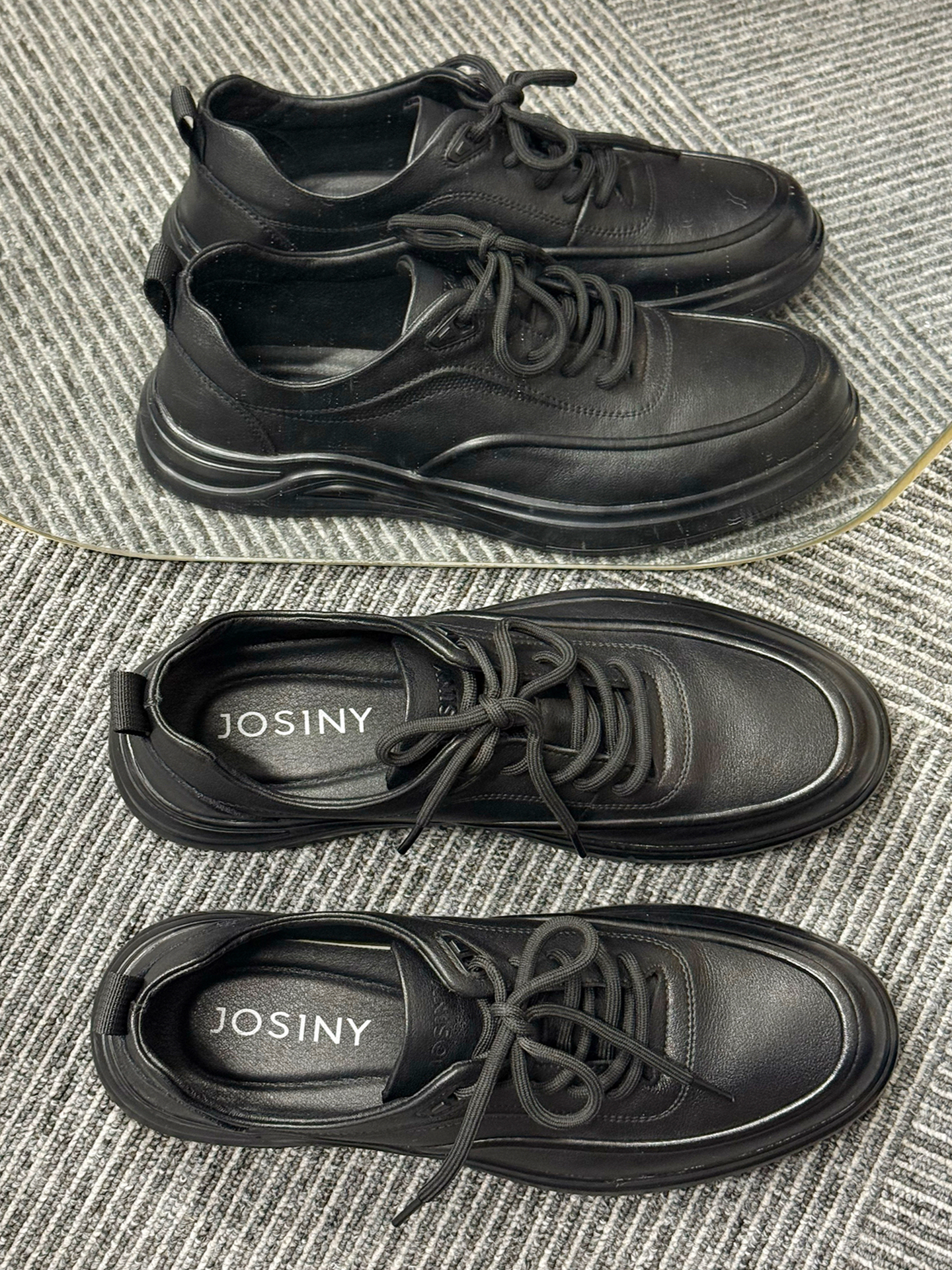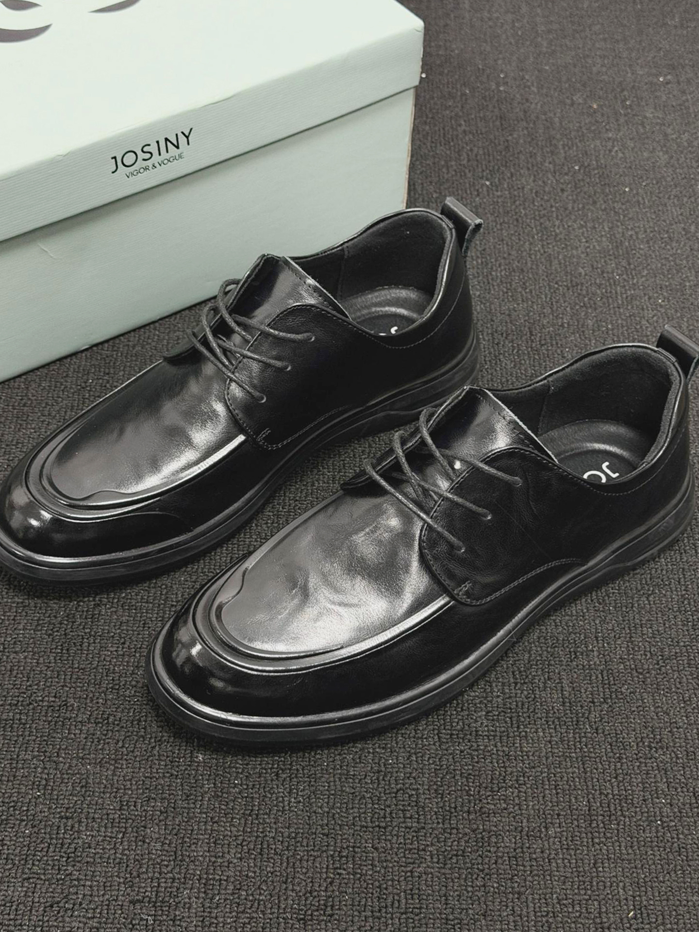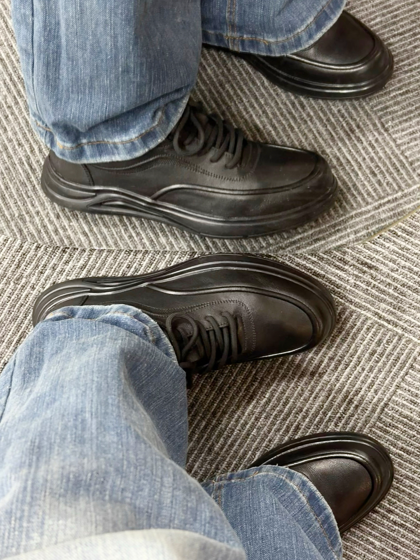 这双鞋最绝的是哑光黑皮线条利落,搭水洗直筒牛仔裤,日常通勤都自带沉稳氛围感。 换身衣服又是另一种感觉,配深灰灯芯绒西裤赴商务会面,搭卡其工装裤逛老巷也随性有层次。