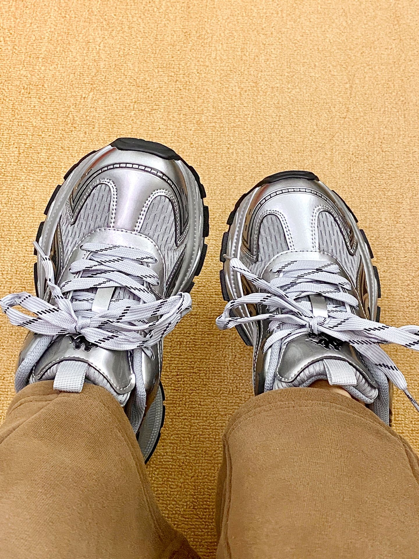 一上脚,脚底就告诉我,这双 Kappa 的鞋网面透气,厚底软弹,金属质感鞋面不闷脚,包裹感利落。 行走时前掌弯曲自如,足弓有支撑,后跟跟脚不晃,配卡其色休闲裤复古又吸睛🍂。 走了 4 小时后,我的脚说,今天逛街都没酸胀,就是鞋身偏亮容易留痕迹😮💨。