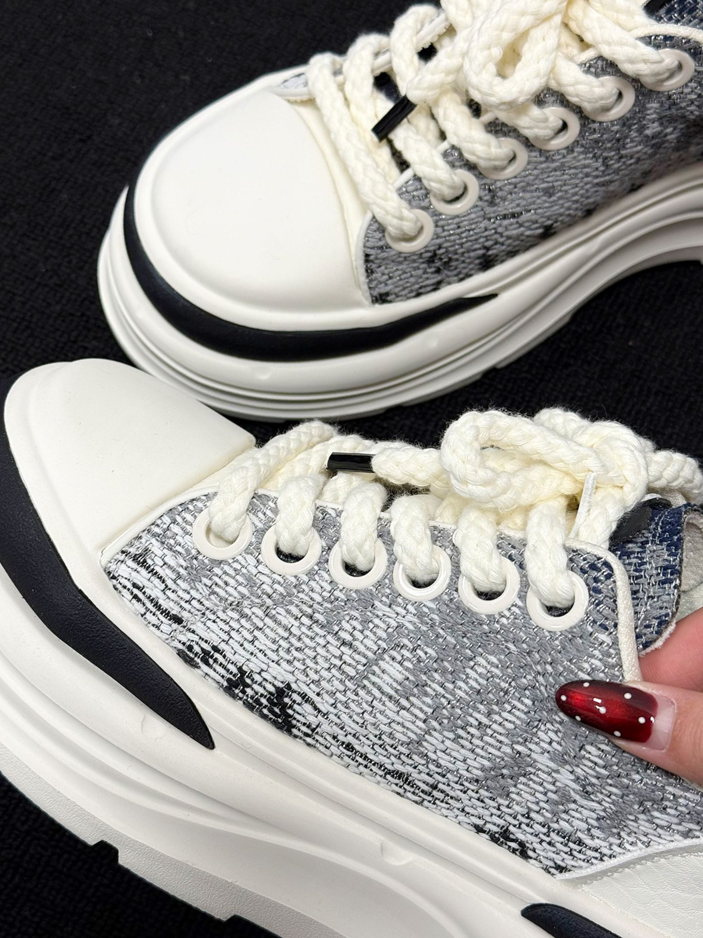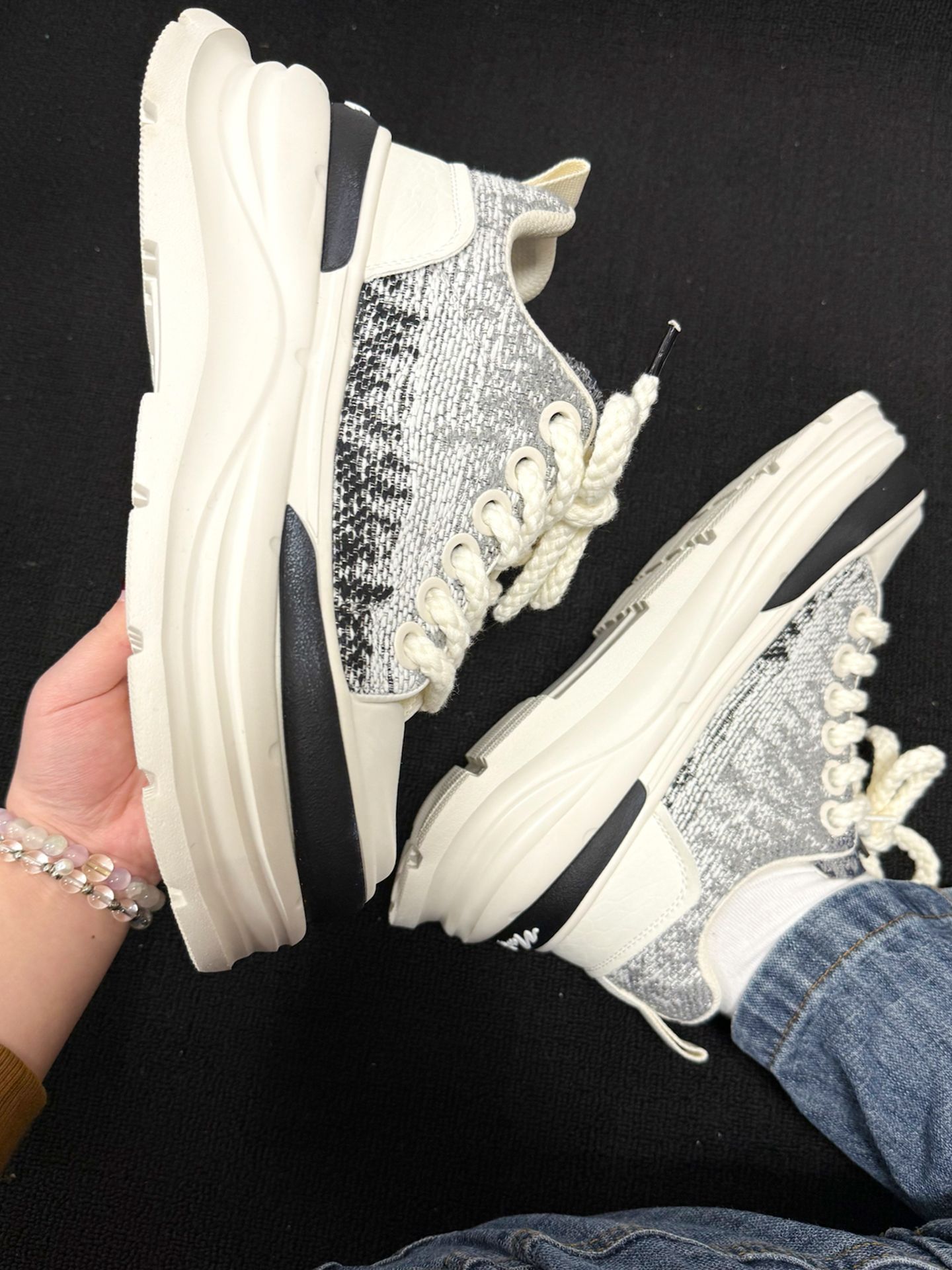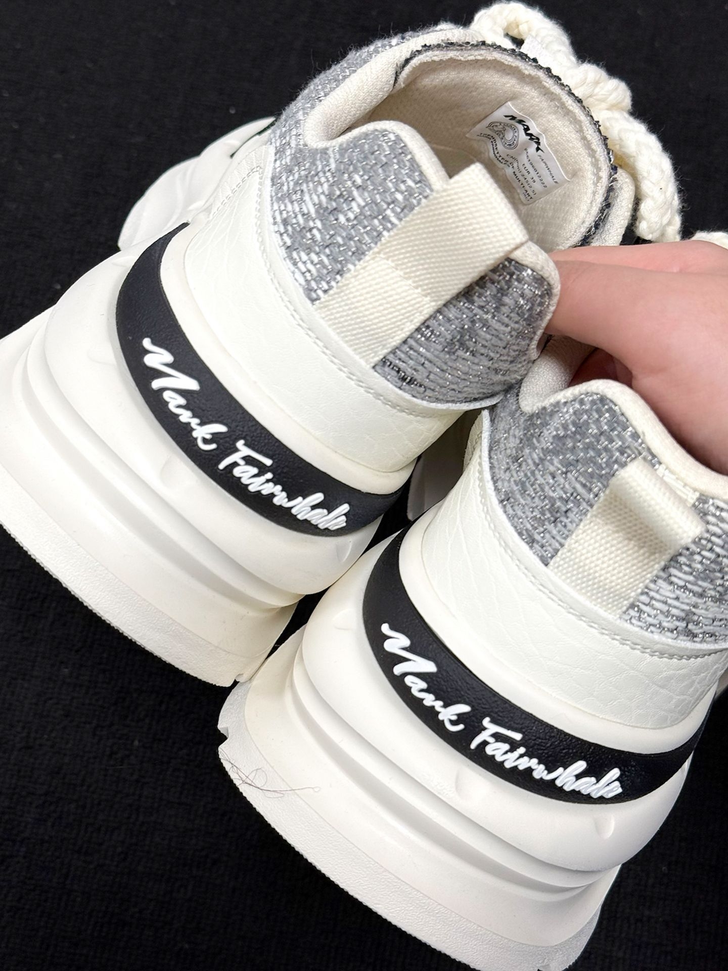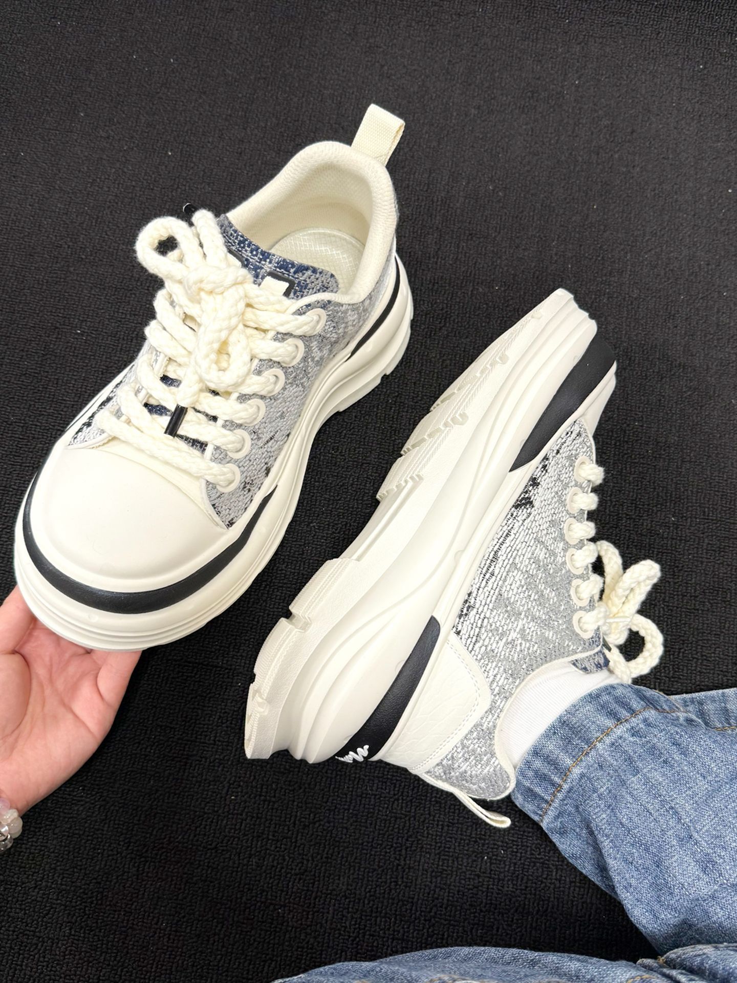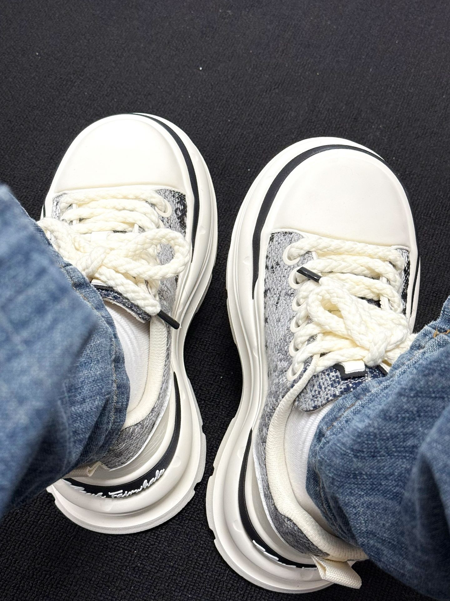 一上脚,脚底就告诉我,这双 MARK FAIRWHALE 的鞋粗花呢面料透气,厚底软弹,包裹感扎实不压脚。 行走时前掌弯曲自如,足弓被稳稳托住,后跟跟脚不晃,配直筒牛仔裤利落又显高挑🌿 走了 3 小时后,我的脚说,今天通勤都没累脚,就是厚底偏沉,起步要适应节奏😮💨