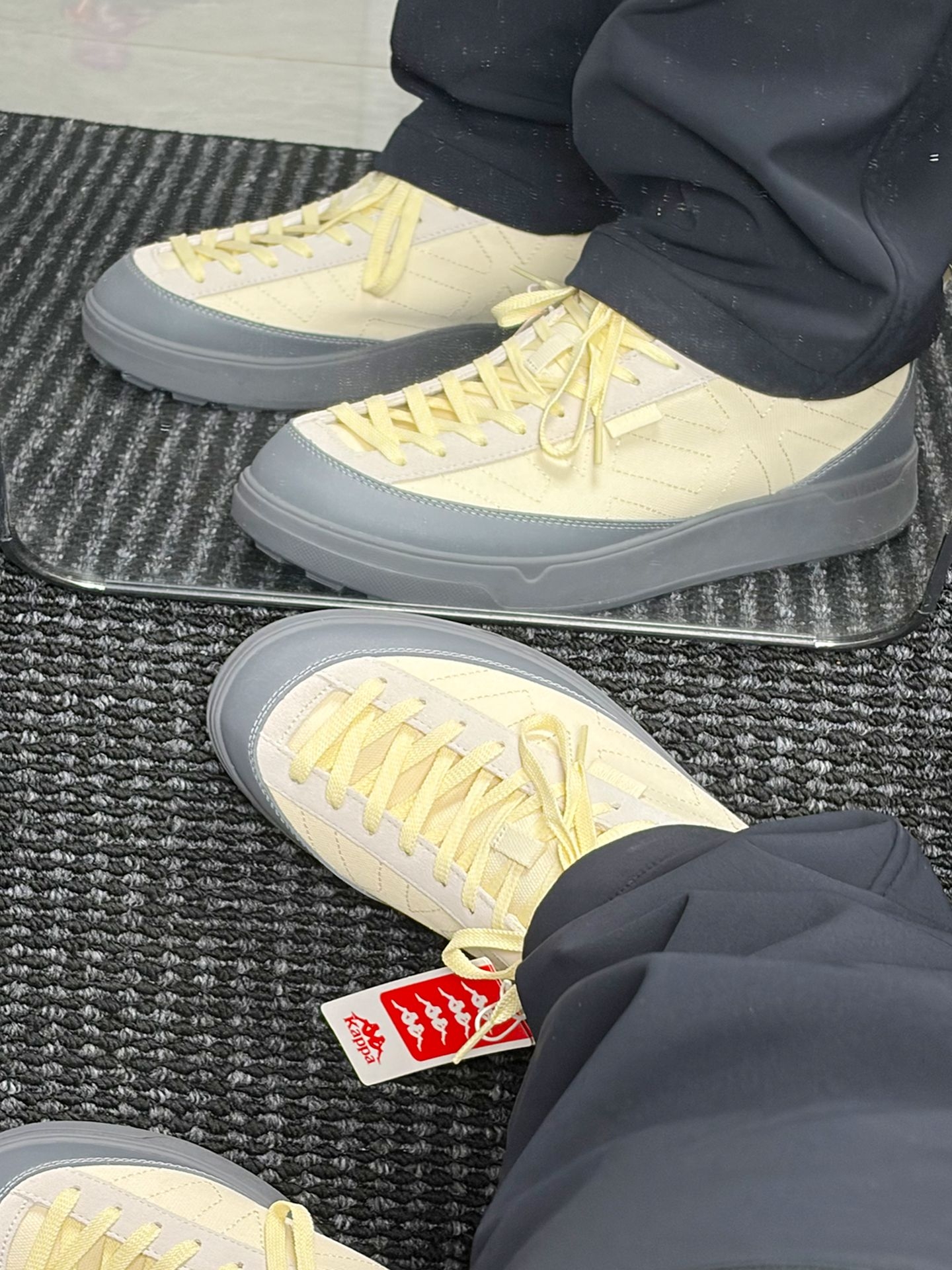 一上脚,脚底就告诉我,这双 Kappa 的鞋帆布透气,鞋头软弹,包裹感宽松不挤脚。 行走时前掌弯曲灵活,足弓有轻微支撑,后跟贴合不磨脚,配黑色阔腿裤清爽又显活力🌿。 走了 4 小时后,我的脚说,今天逛展都没闷脚,就是鞋舌容易跑偏😮💨
