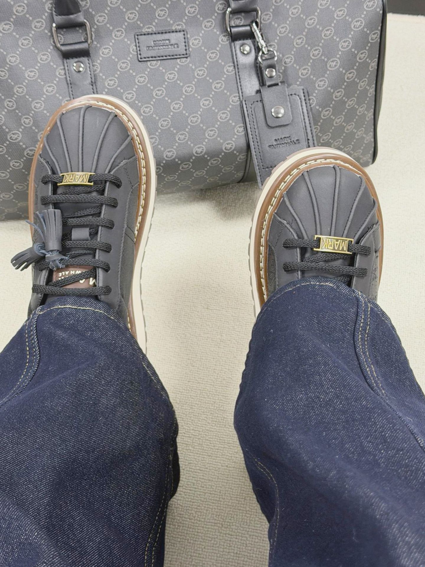 一上脚,脚底就告诉我,这双 MARK FAIRWHALE 的鞋软弹贴合,包裹感刚好,不会松垮。 走起来前掌弯曲自如,足弓有支撑,后跟跟脚,配直筒牛仔裤利落又自在🍃。 走了 4 小时后,我的脚说,今天逛了整街都没酸胀,就是鞋头设计有点挤脚趾😮💨