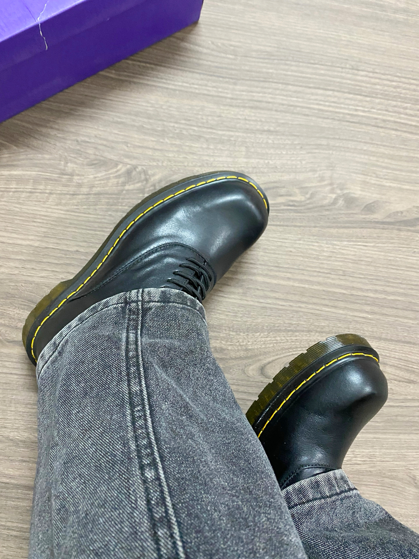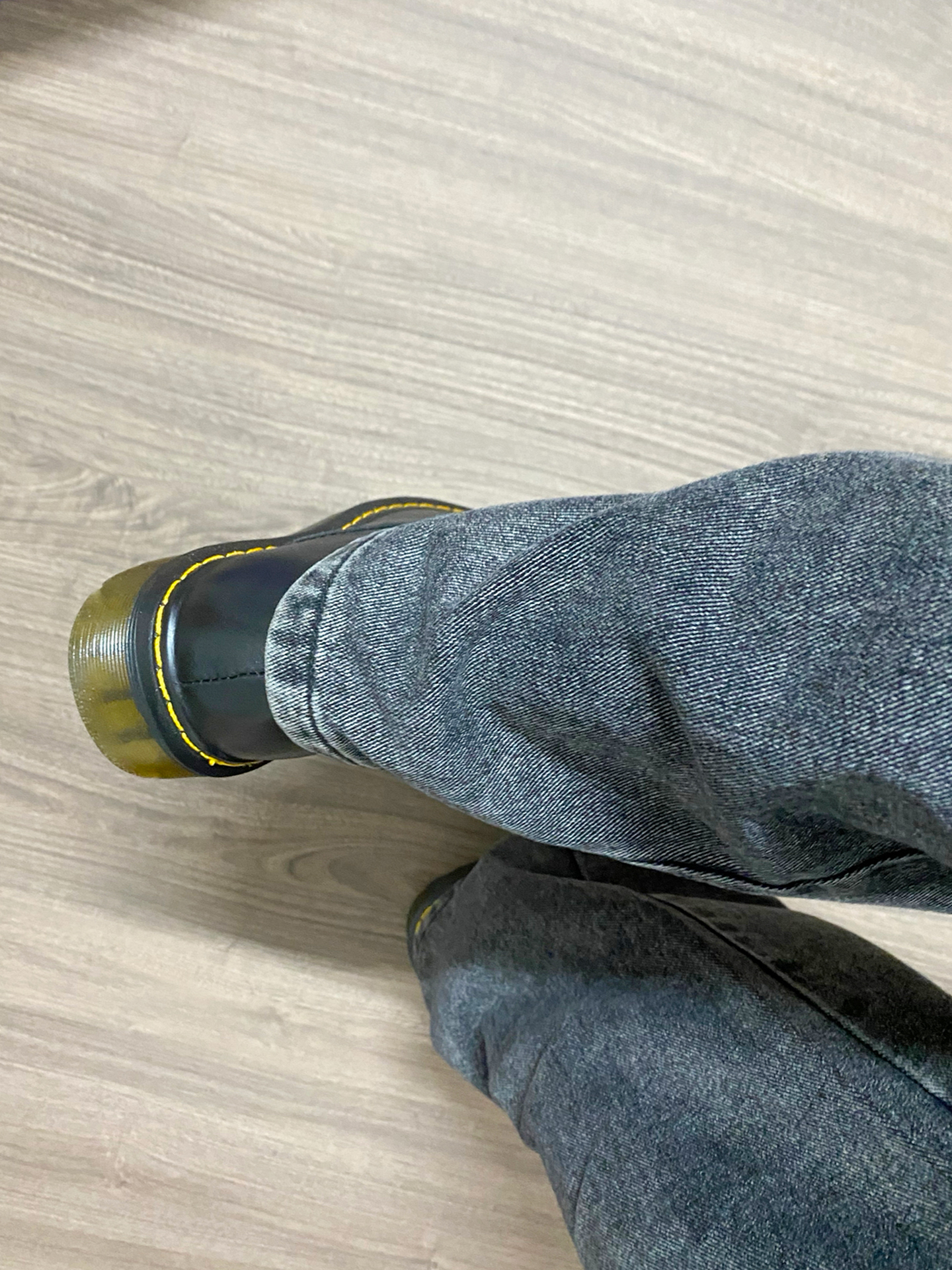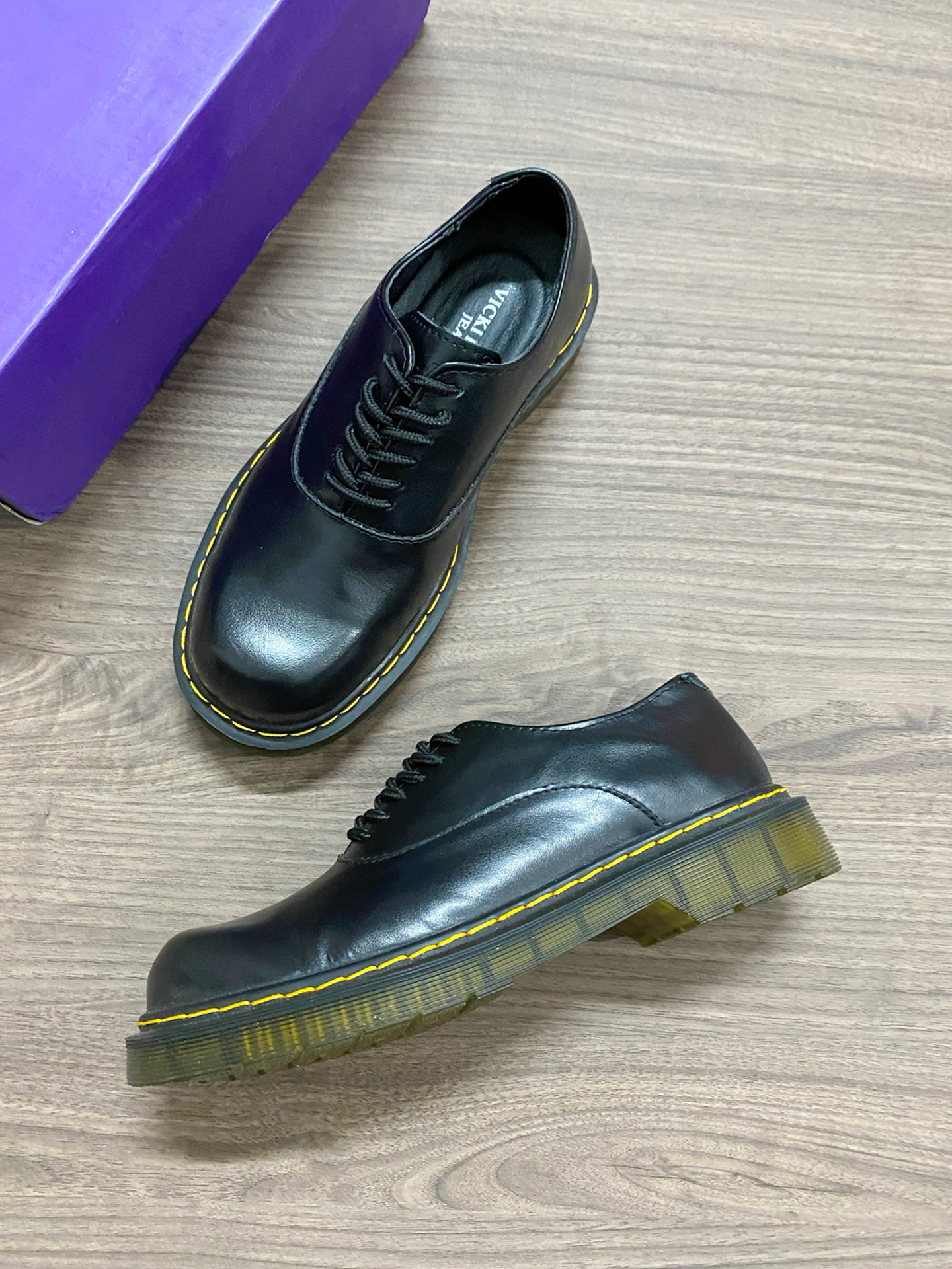 VICKI BROWN 这双鞋皮质挺括、黄线车边辨识度高,搭直筒牛仔裤随性又复古。 💼通勤配西装裤干练利落,🌸约会搭百褶裙温柔减龄,逛展配工装裙又酷又有态度,场景切换毫无违和。 更偏爱通勤这套造型,搭配中筒袜能中和鞋型的硬朗感哦。