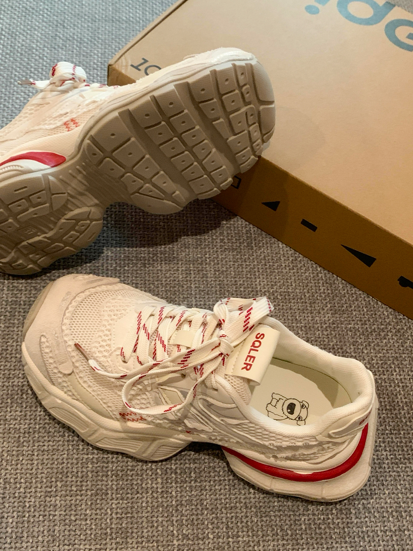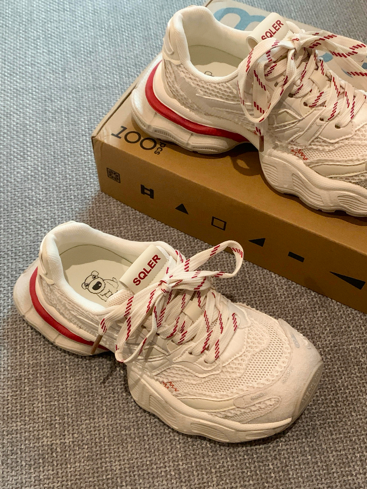 本来只是随便走走,想趁着晚风散散步,踩上这双 SQLER 老爹鞋就出了门。 踩着透气网面走在夜市🍧,红白条纹鞋带晃得轻快,厚底踩在石板路上软弹不硌脚,配着百褶裙,一抬头就撞见卖手作冰粉的小推车,冰粉上的山楂碎在灯光下亮晶晶。 如果不是穿这双鞋,可能就错过了这份甜滋滋的晚风🎀,就是鞋头偏窄,长时间走路脚趾会有点挤。