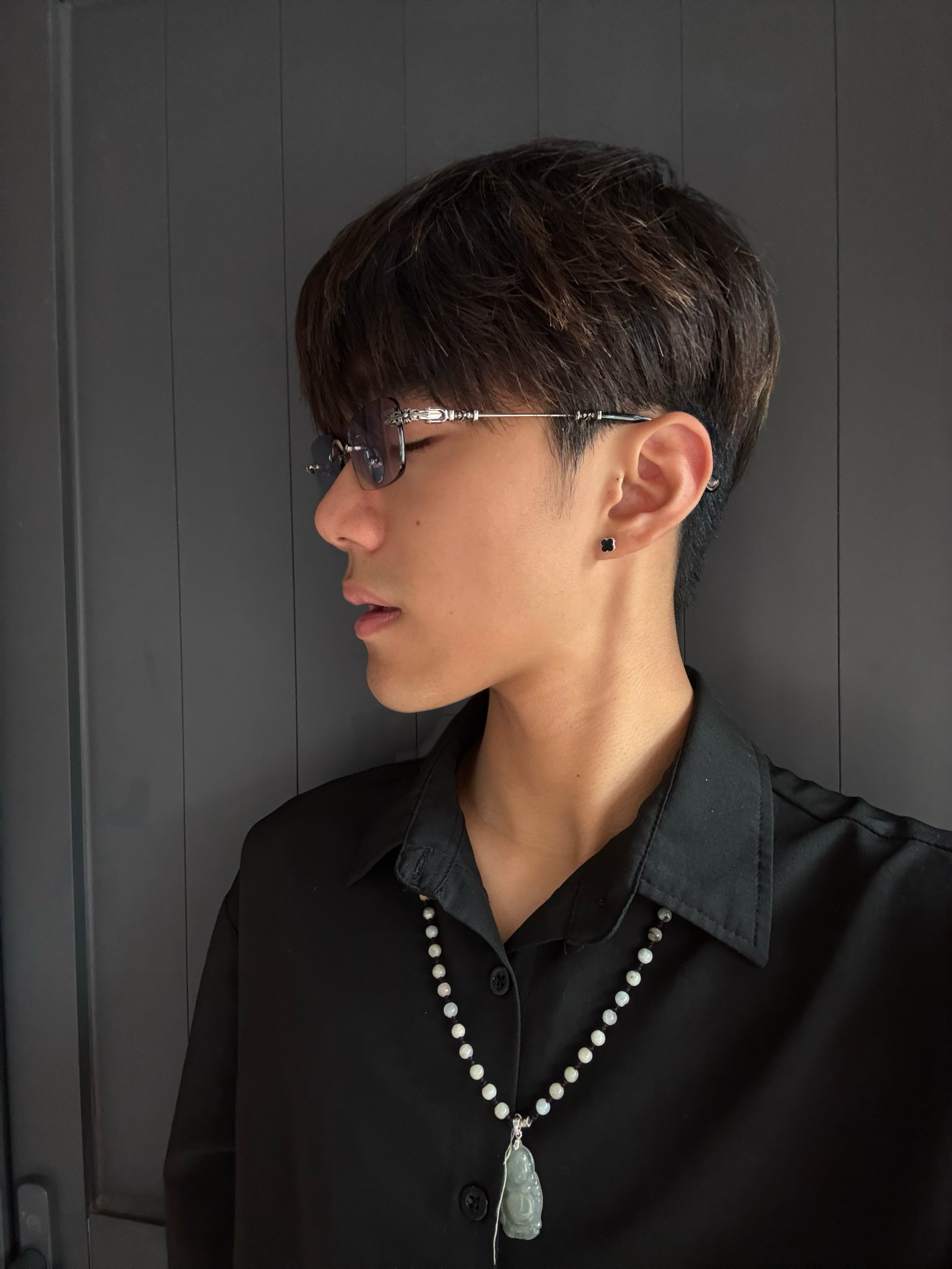 谁懂啊!这副无框眼镜真的戳中我审美点上了🥹 金属镜腿带点小雕花,细节感直接拉满,戴上瞬间变斯文禁欲系帅哥✨ 无边框设计超显脸小,镜片清透不压鼻,日常通勤、约会戴都合适~ 重量很轻,戴一天也不会觉得累,素颜戴能提气色,化妆戴能中和妆感,百搭到离谱! 不管是配衬衫还是休闲装,都能hold住,氛围感直接焊在脸上😎