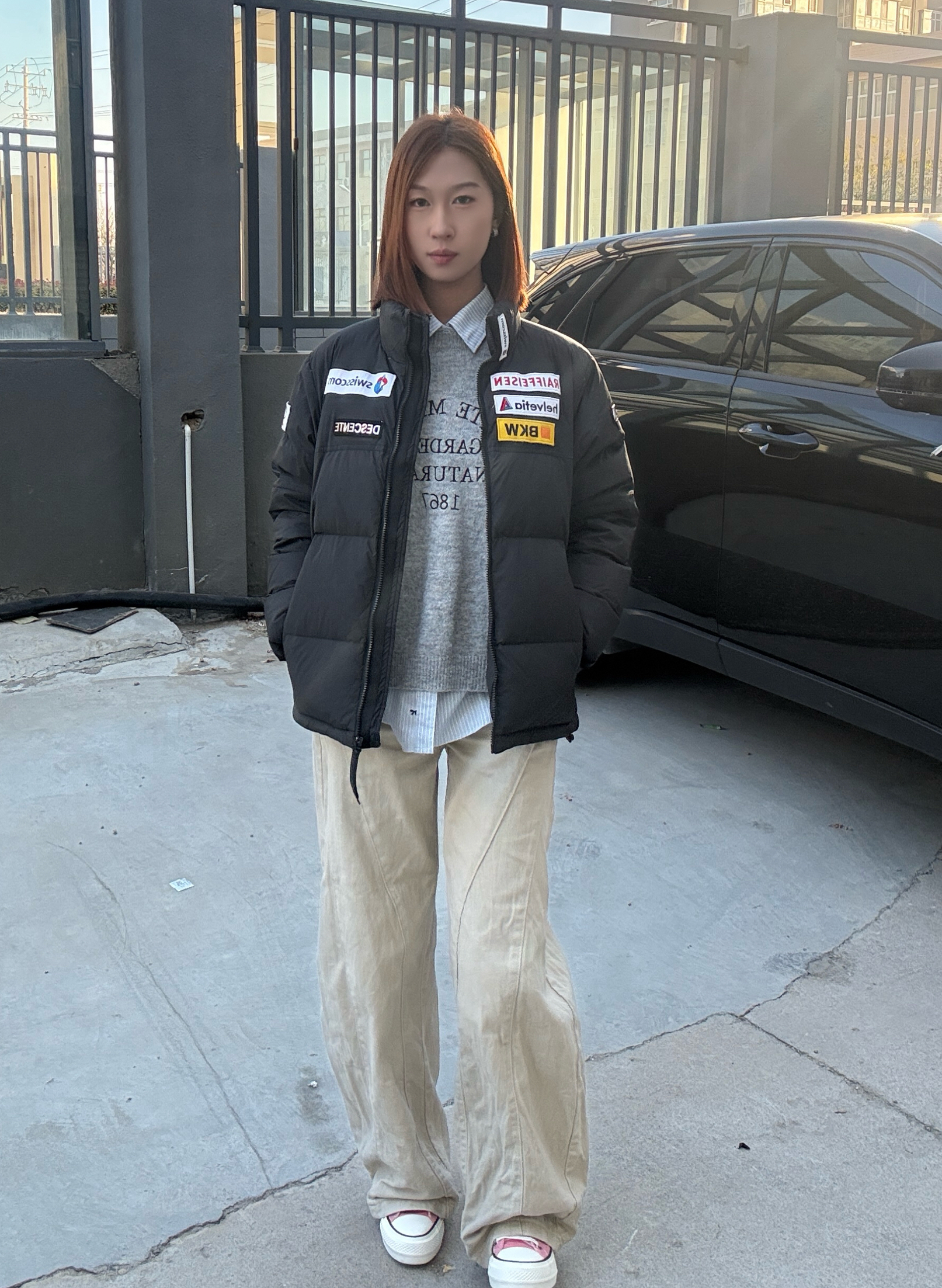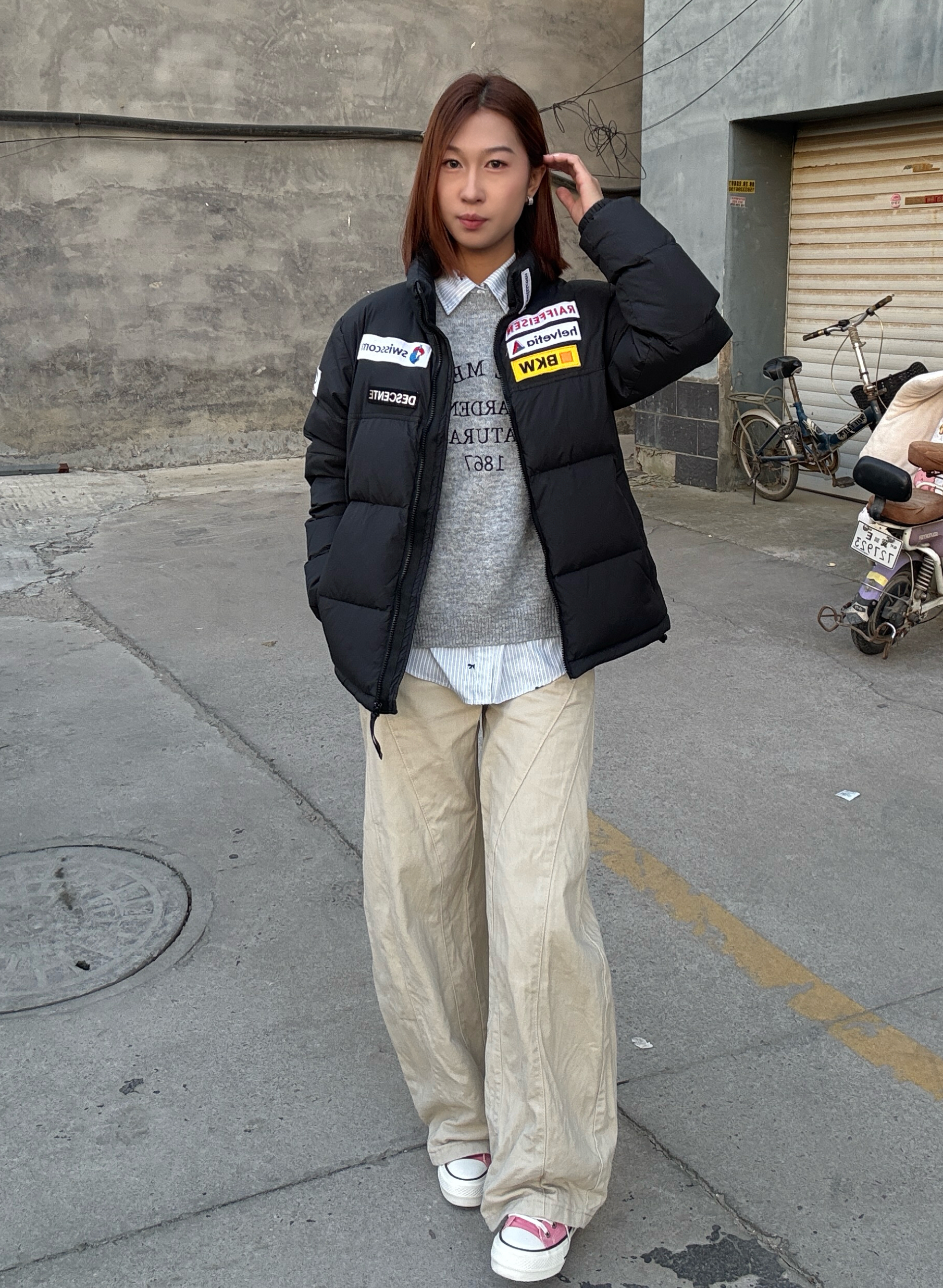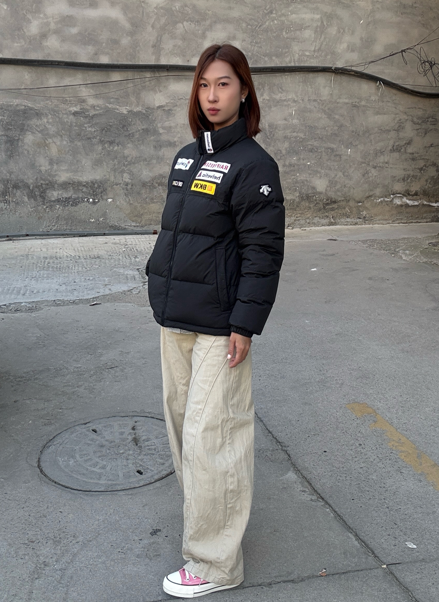 穿搭拒绝臃肿!黑色短款羽绒外套是显瘦神器,彩色贴布的细节让外套不单调,内搭叠穿的穿法丰富了视觉层次,米白色阔腿裤让下半身更轻盈,浅蓝冷帽作为点睛之笔,瞬间让整体造型多了几分街头潮味,怕冷又想耍帅的姐妹可以这么搭~