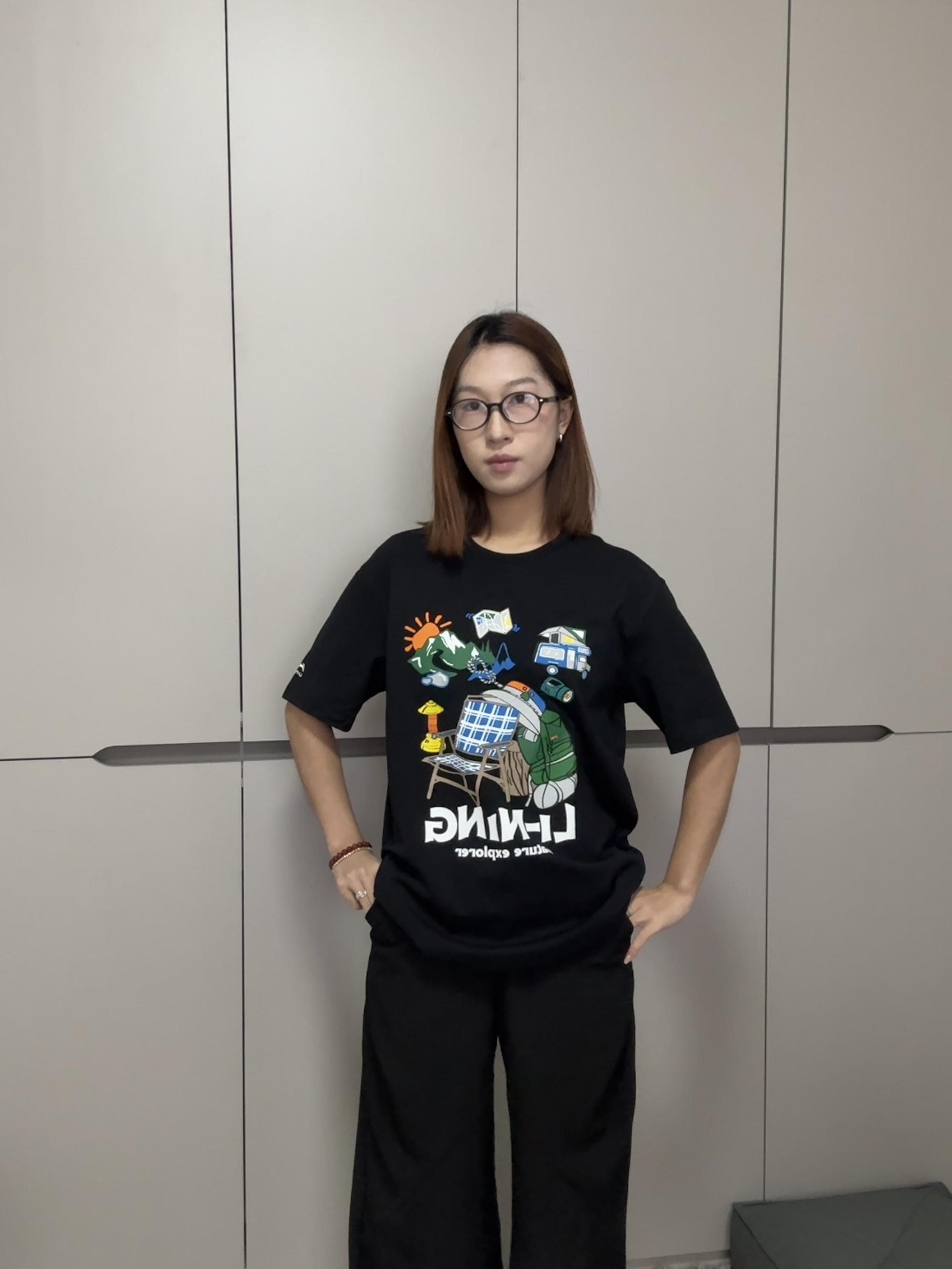 李宁的印花T恤真的太懂年轻人了!黑色基础款加上创意满满的卡通印花,瞬间摆脱单调,品牌logo的反向设计也很有巧思。柔软的面料穿起来超舒服,宽松版型打造慵懒休闲风,日常随便搭都能穿出潮范~