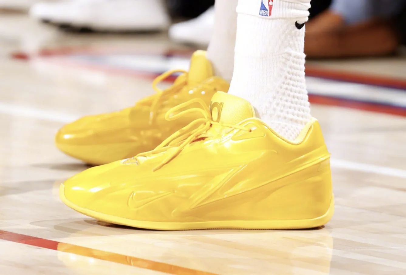 “当‘死神’的镰刀划过球场,这双鞋就是他的新武器!” ✨ 颜值暴击:复古未来主义,杀疯了! - 亮面漆皮材质 搭配 醒目大学红/柠檬黄/活力橙 等高饱和配色(就像图中这双“死亡芭比黄”和“烈焰橙红”),球场C位非你莫属,灯光下自带反光特效,走路都带风! - 鞋身侧面的 “匕首形TPU支撑条” 太绝了!灵感源自杜兰特“Slim Reaper(瘦削死神)”外号,线条锋利如镰刀,视觉冲击力拉满,致敬...
