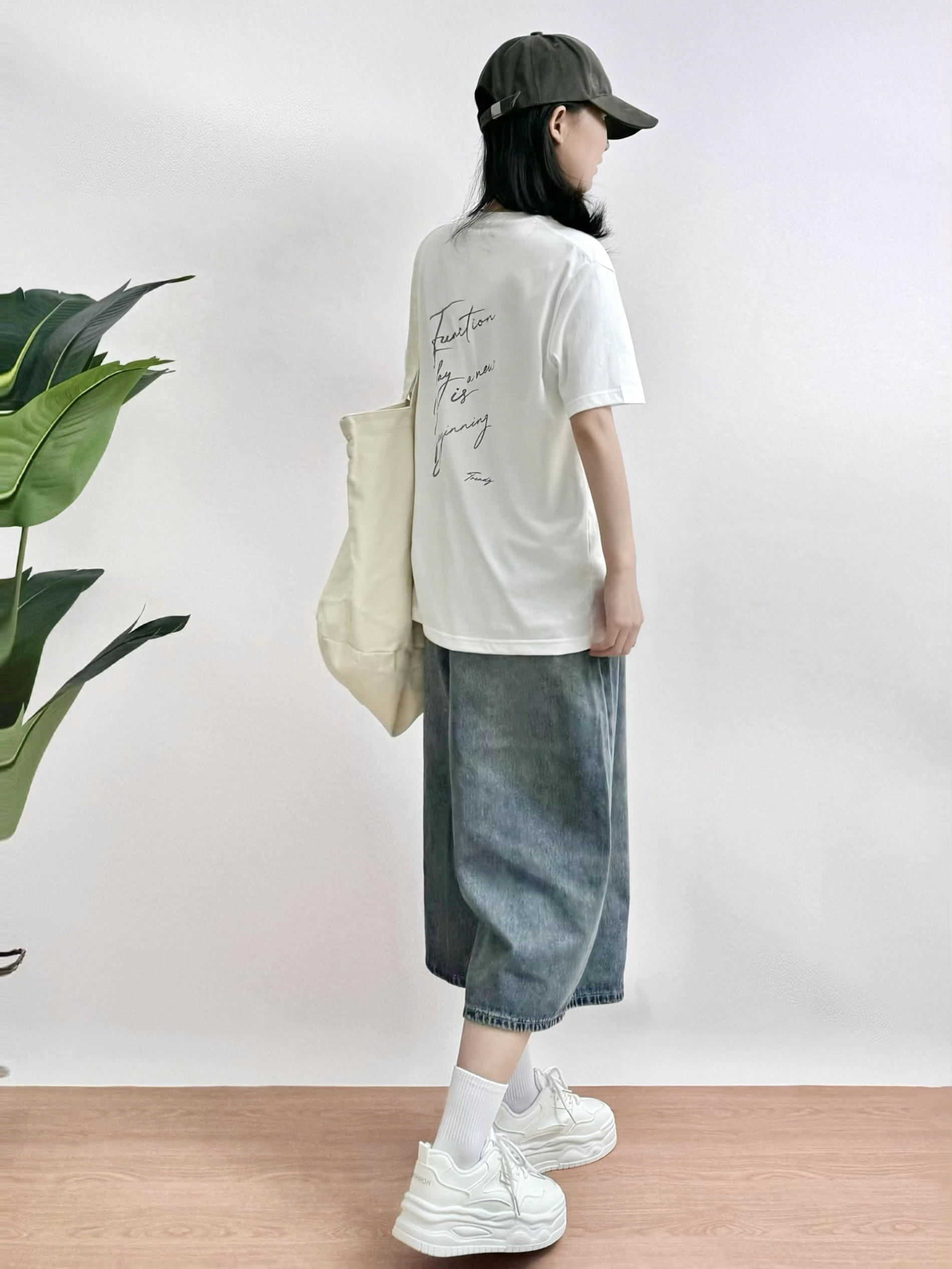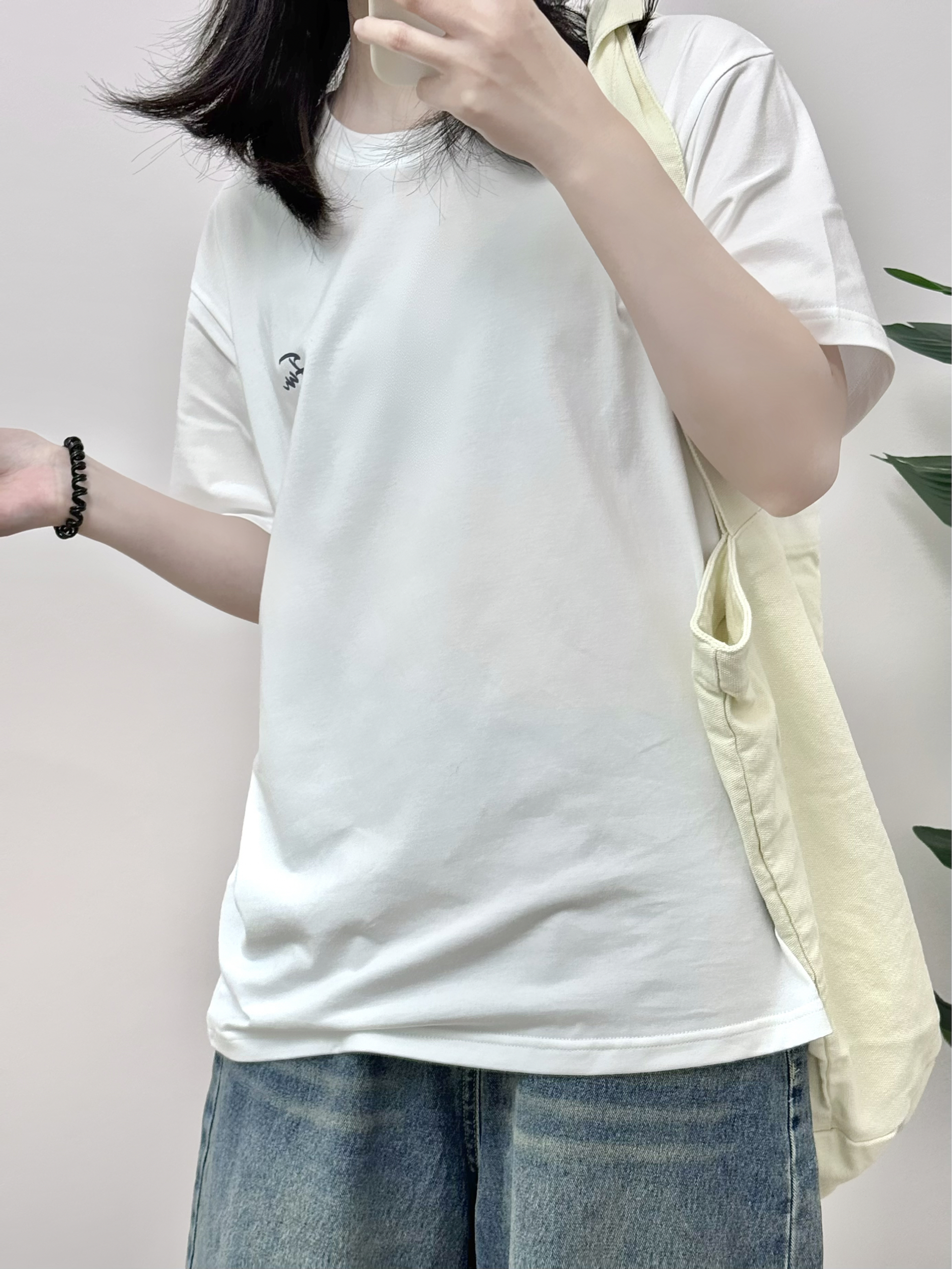 我的夏日懒人穿搭~ 字母印花T恤➕七分牛仔裤👖 一到夏天我不知道🤷🏿♀️穿什么的时候 我就喜欢穿基础款T恤~好穿又不费心 很喜欢这种简约的短袖🧊 后面字母印花🔡设计的也很好看 而且百搭上身穿着又很舒服😌