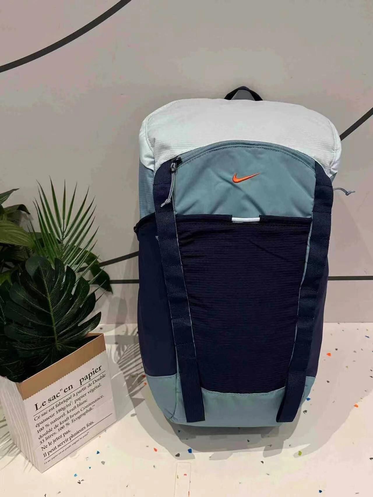 💙Nike深蓝拼接运动背包,采用深蓝+浅蓝拼接设计,搭配橙色刺绣Logo,简约又有辨识度✨。轻质织物材质,透气耐用,适合运动或通勤。容量适中,能装下衣物、水壶等,外部多拉链口袋,收纳超方便!肩带可调节,背负舒适,运动休闲风都能轻松搭配,篮球、跑步、日常出行都很适合哦👍。
