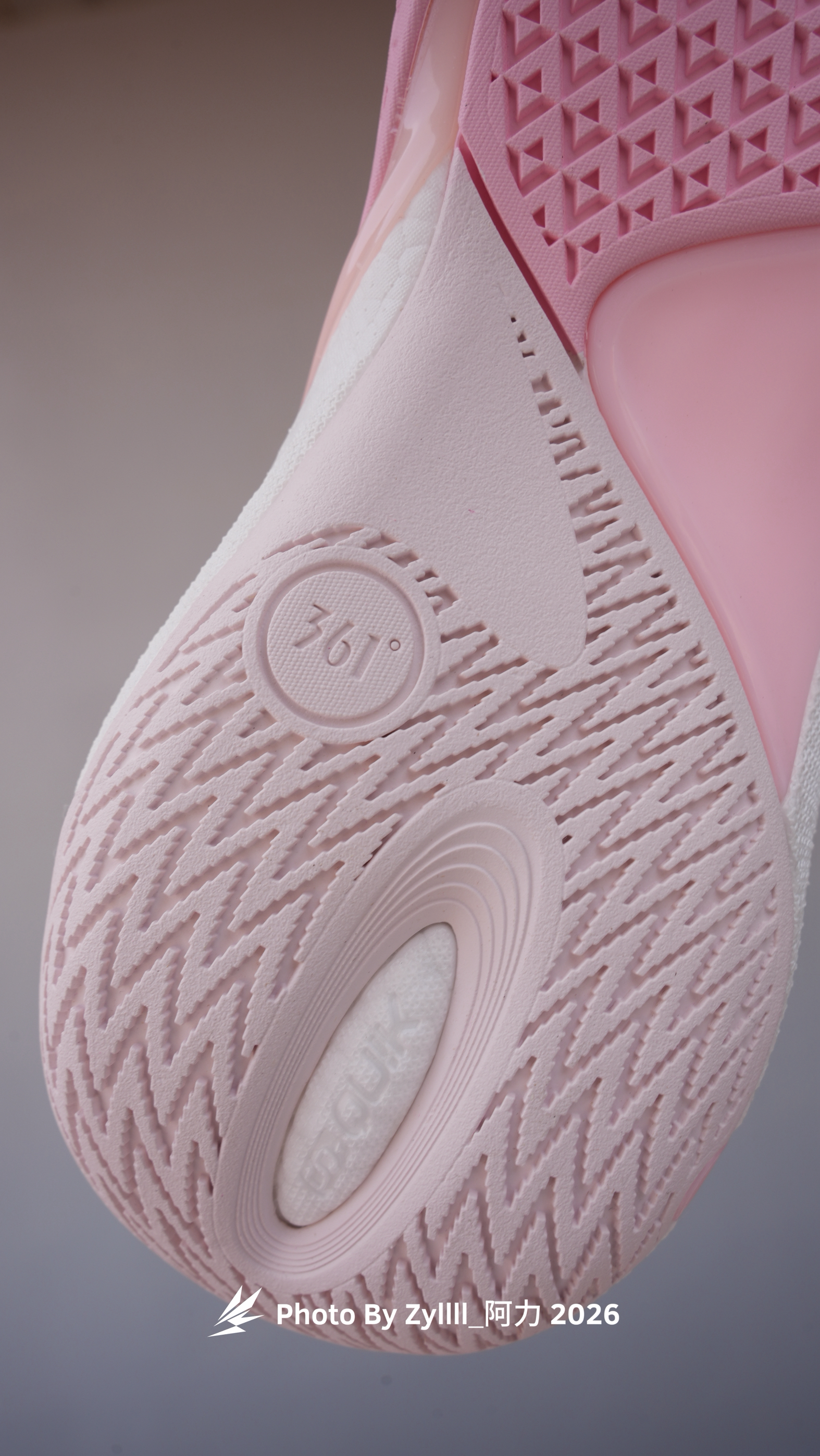 上脚第一感觉是“轻”——42码不到300克,跑起来像没穿鞋,前掌13mm后掌19mm的薄底,我上脚之后能明显感到贴地感强,启动速度比想象中快。 球后跟类似蛇形设计,我在做变向时脚踝能快速调整,突破时脚步跟手,常规及窄脚都能适应,不会卡脚。 鞋面外层透气网纱+柔性内靴,打1小时也没闷脚,夏天穿也不黏腻。 而且外侧抗扭TPU和QU!K-BALANCE中底,落地稳,耐磨橡胶鞋底,外场摩擦也不怕,TPU纱...
