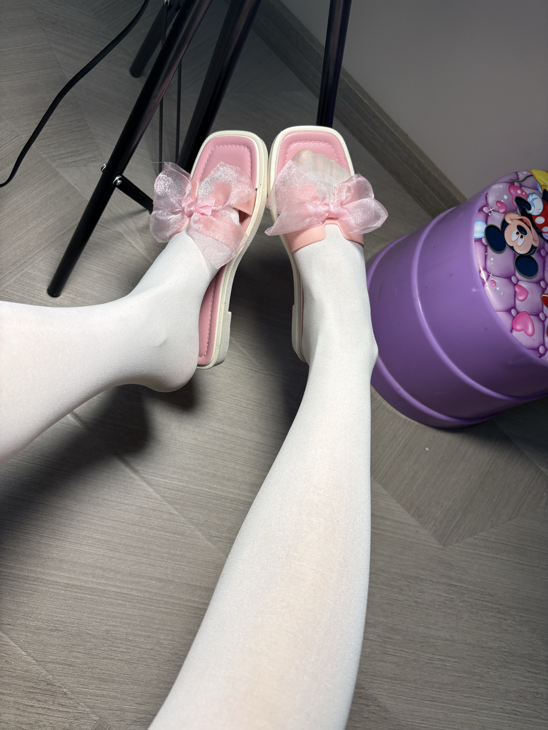 颜值暴击:奶fufu的白丝像云朵裹腿,自带磨皮滤镜,腿型秒变直又细,连膝盖小纹路都藏得严严实实!搭配粉嘟嘟方头拖鞋,闪纱蝴蝶结晃啊晃,走路都像踩在棉花糖上,甜而不腻,纯欲感直接拉满~