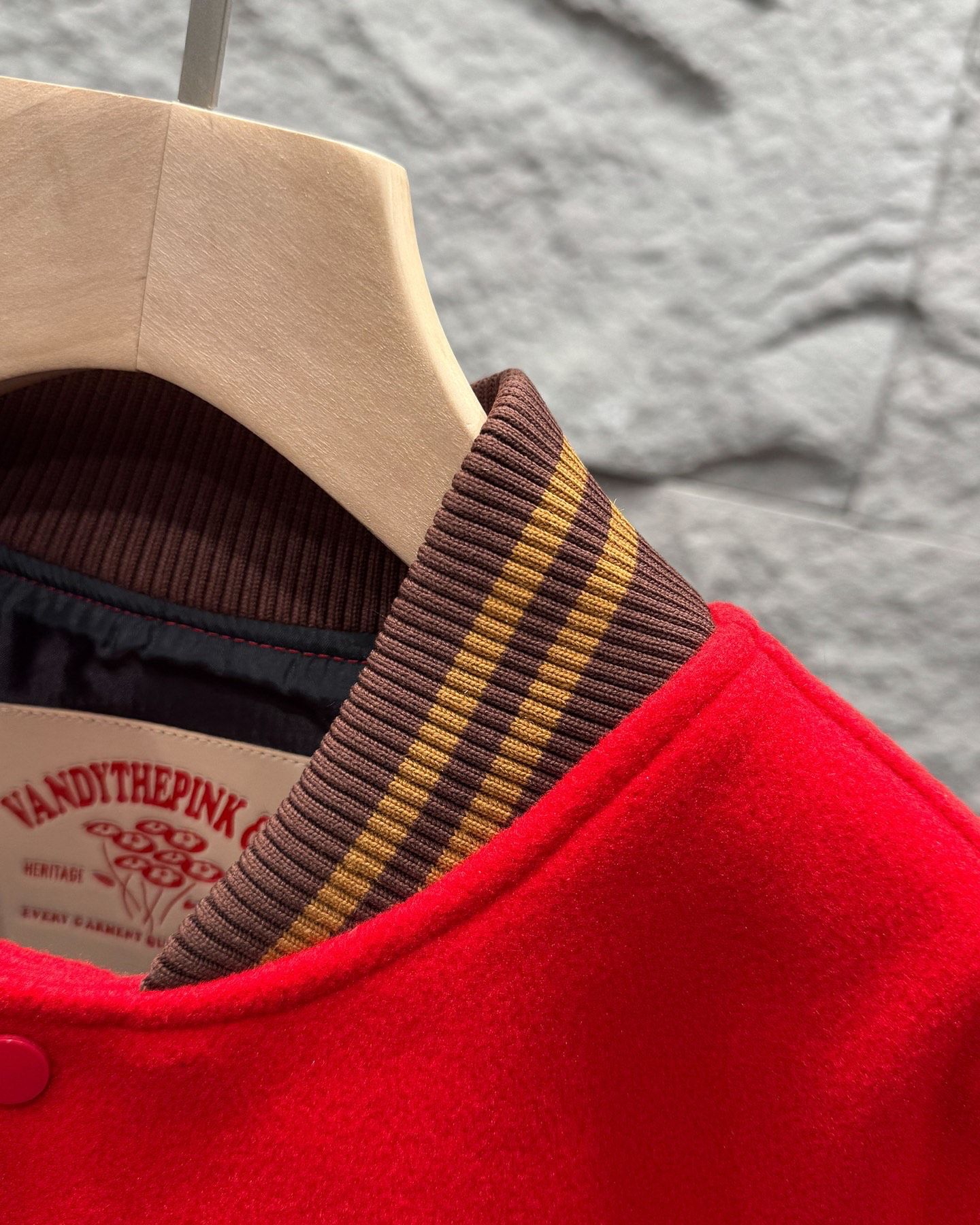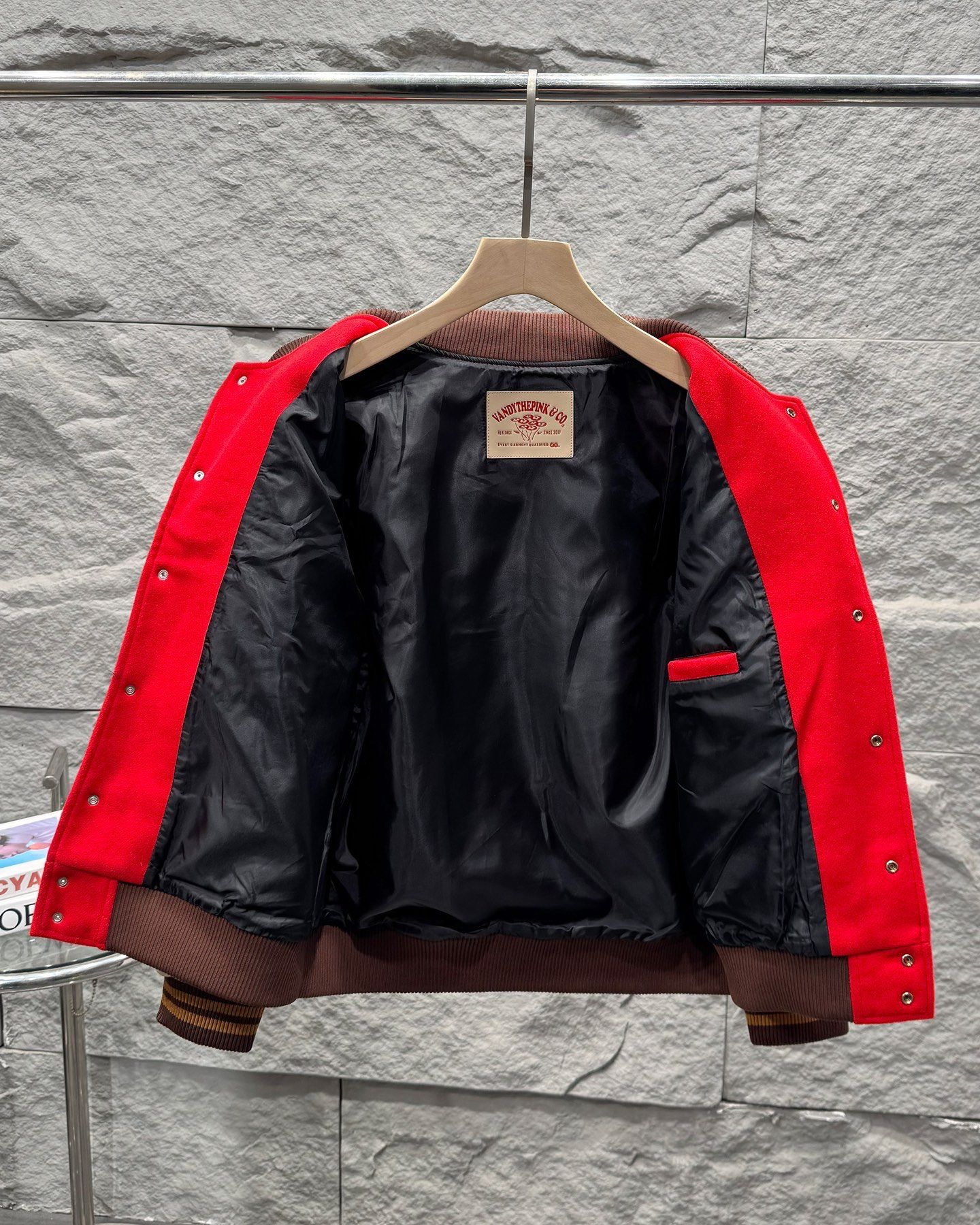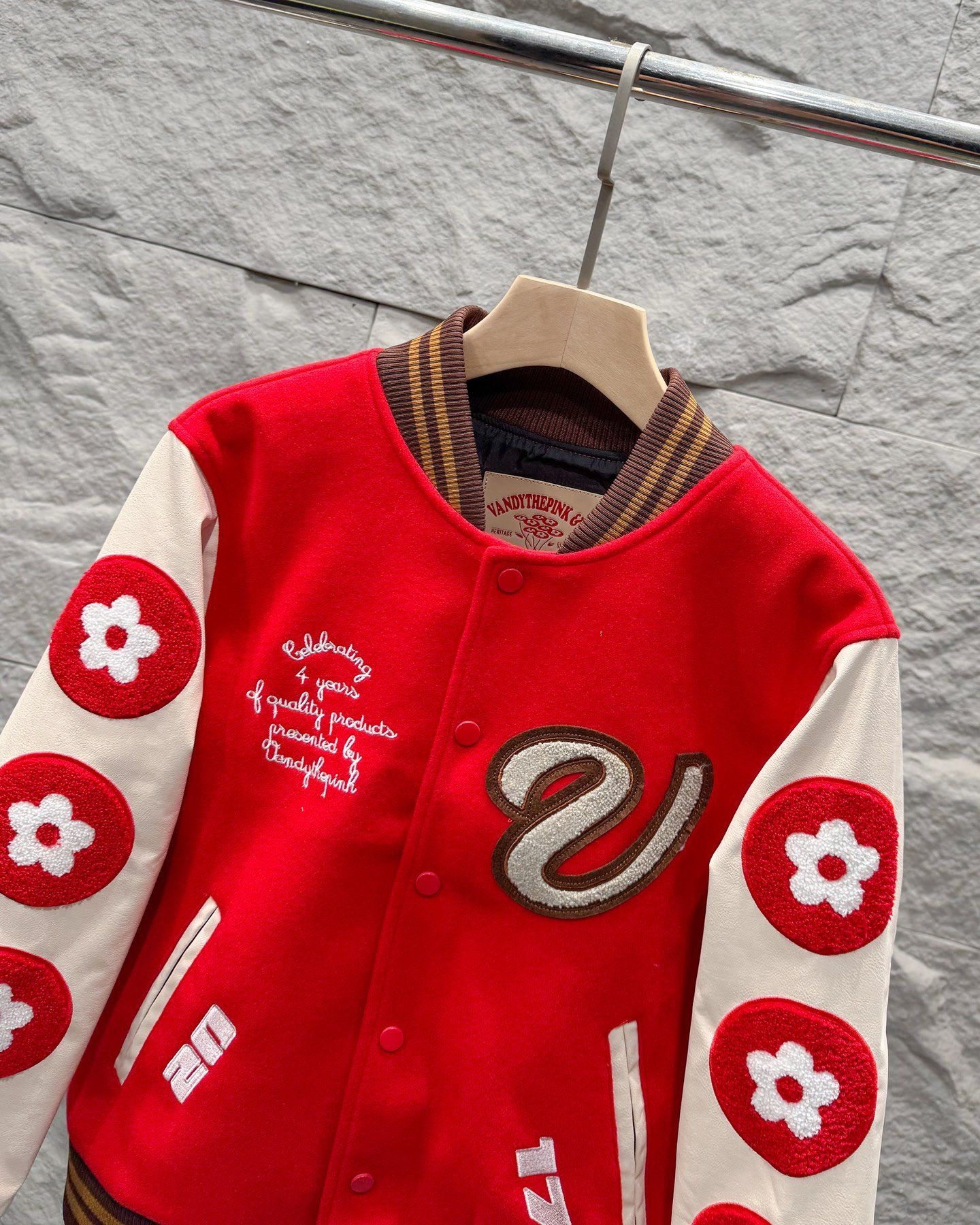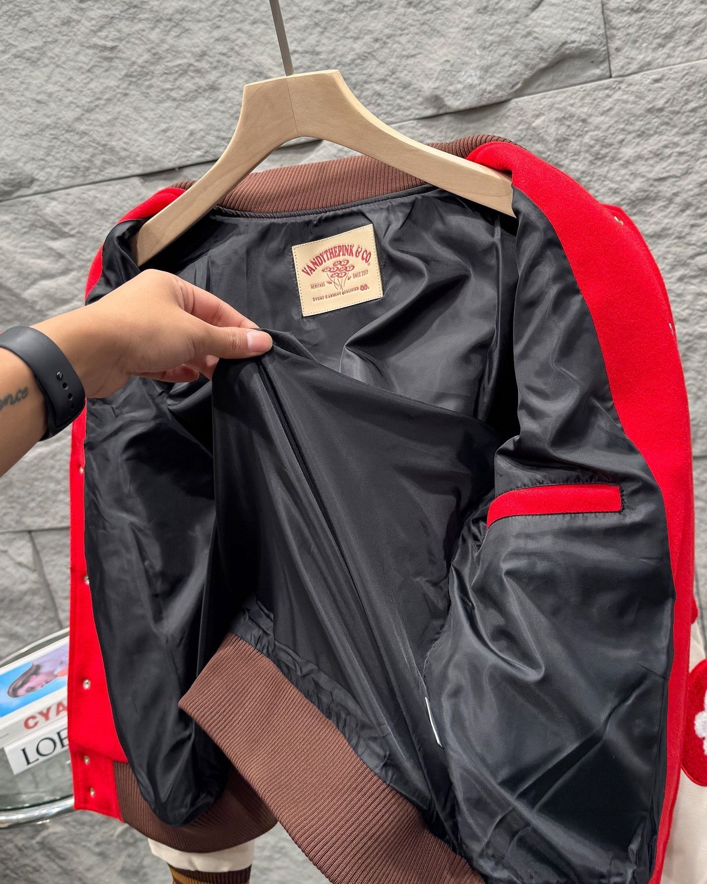 这件红棕拼色棒球服完全踩中复古美式审美点!正红衣身搭配米白皮袖,视觉对比强烈又不张扬,袖子上的小红花刺绣软萌吸睛,搭配大U字毛巾绣,甜酷平衡恰到好处,搭配牛仔裤、百褶裙或工装裤都能轻松出片。 面料采用厚实毛呢与PU皮拼接,挺括有型不易软塌,春秋单穿、冬季叠穿大衣都适配。细节处的条纹罗纹领口与袖口耐穿不变形,口袋和数字刺绣工艺精致,兼顾保暖与质感。 红调自带喜庆氛围,早春穿着格外应景,学生党...