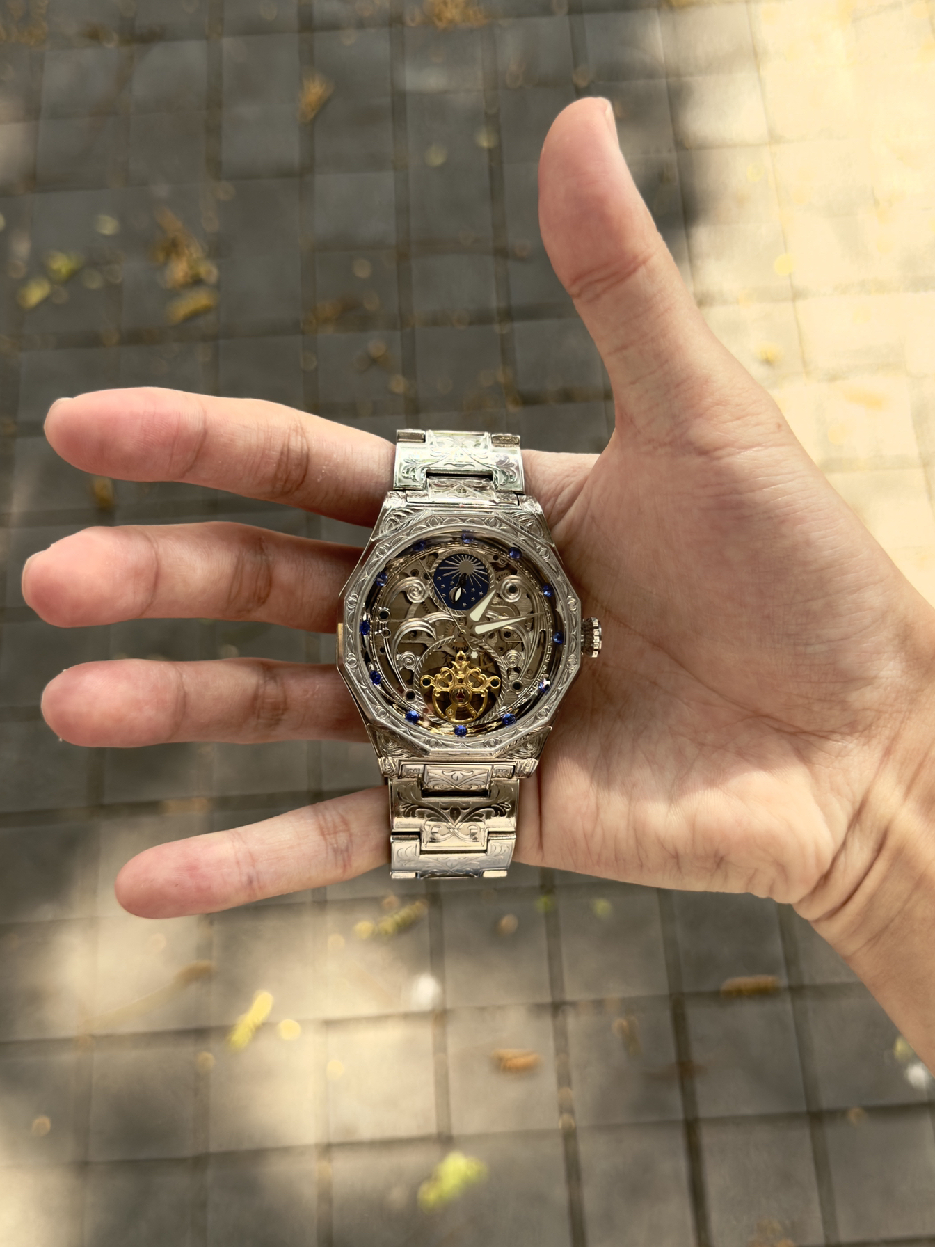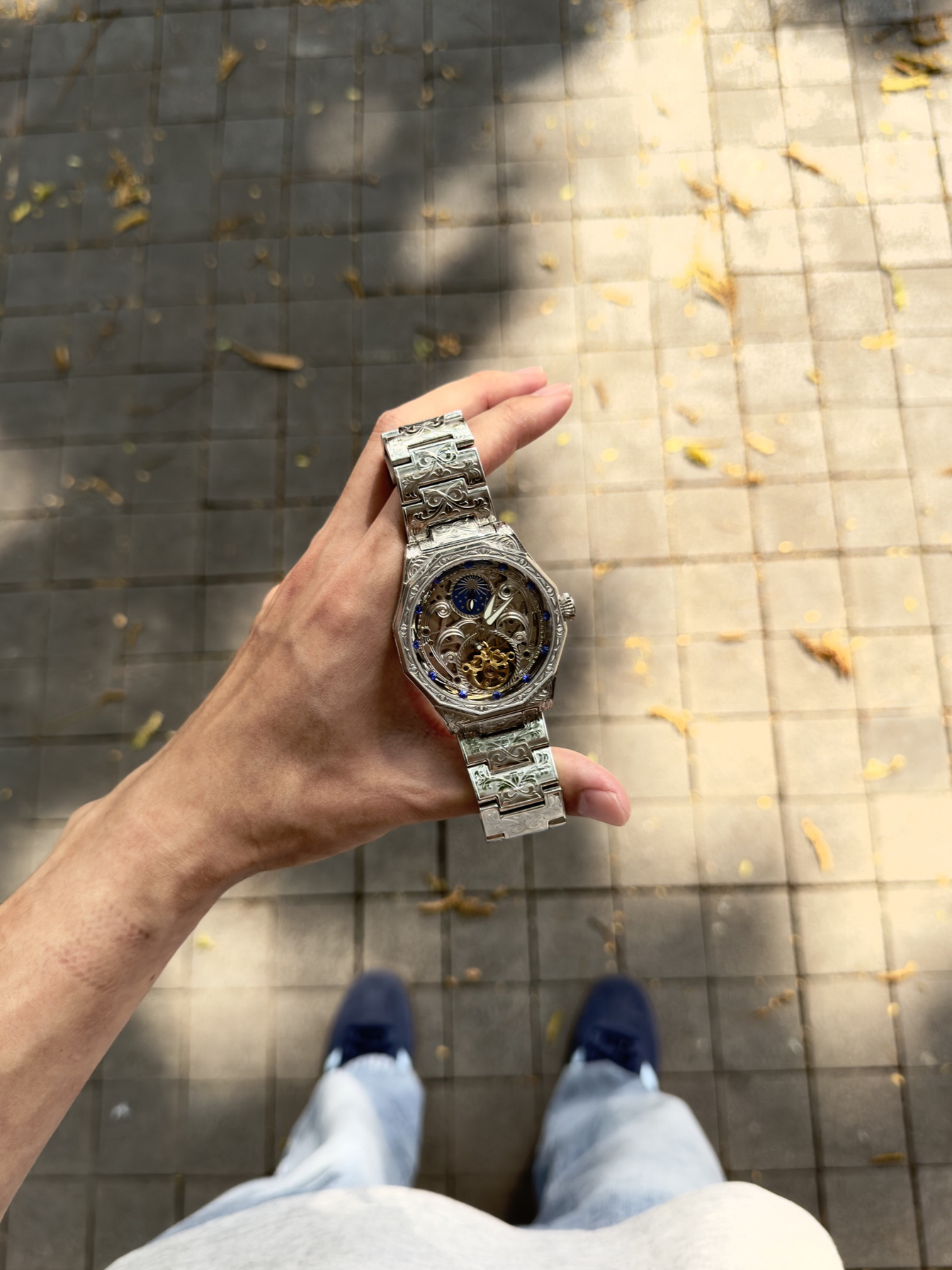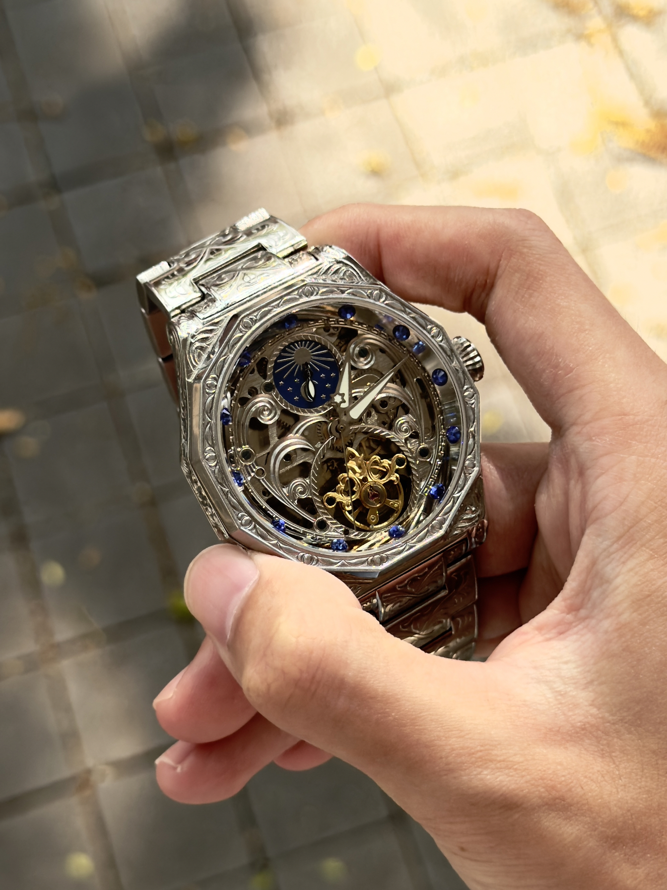 本篇笔记关联了VRQ/唯诺其 信仰系列 摩斯国潮原创雕刻镂空陀飞轮日月星辰全自动机械男士手表 银色 VRQ M03-4等商品,为用户提供真实的使用体验和购买参考。