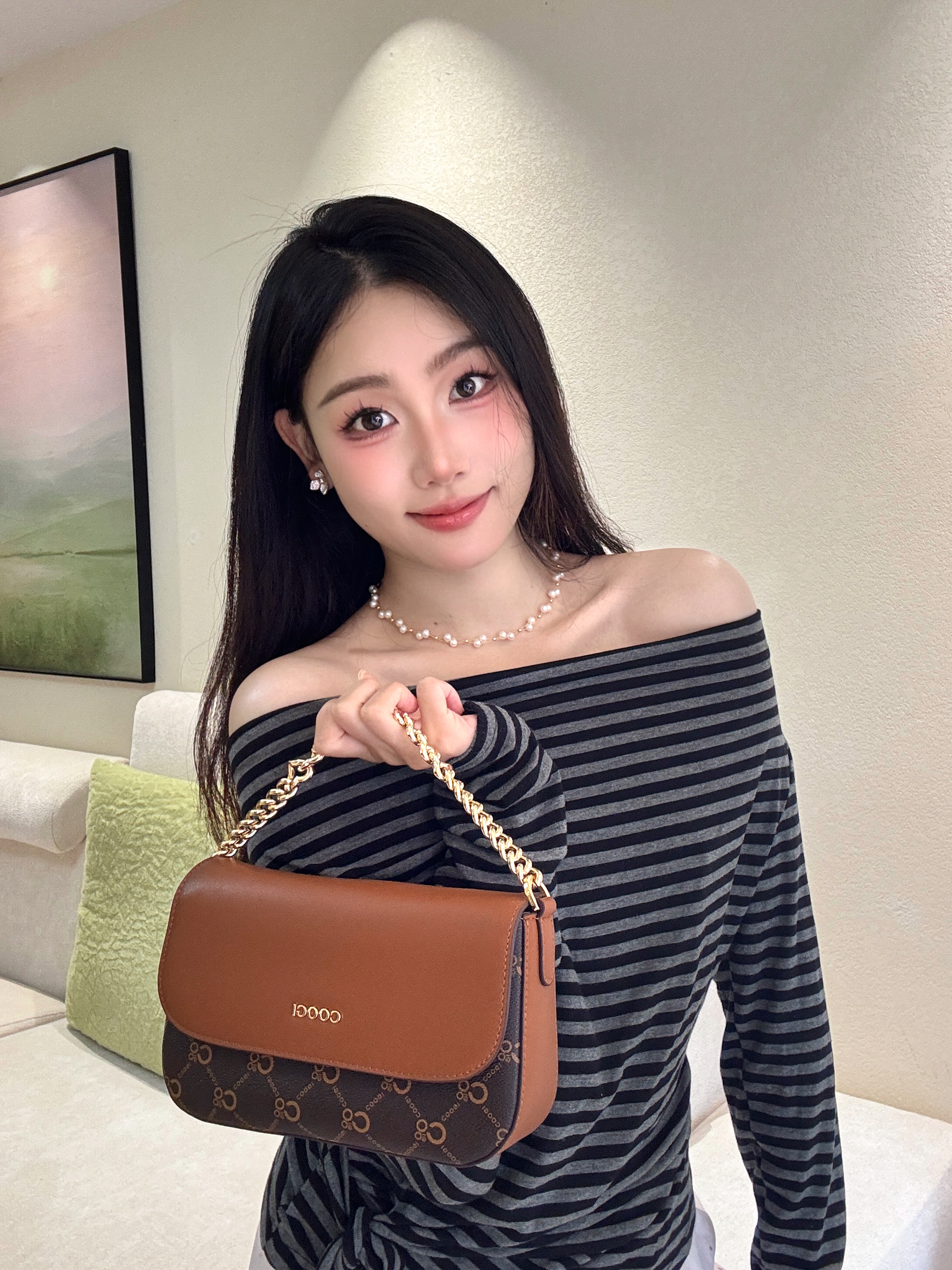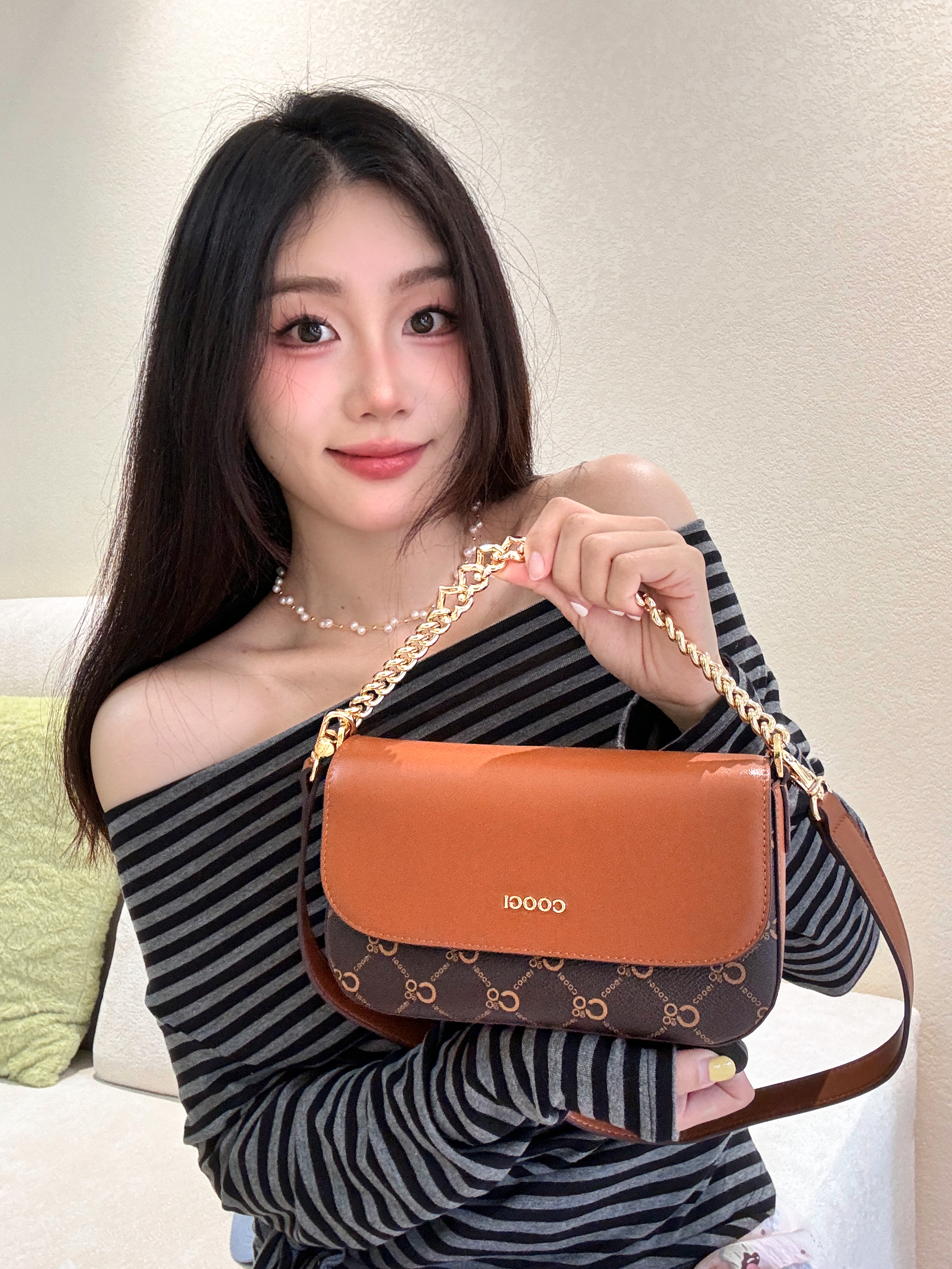 拆箱那一刻真的被质感惊到 焦糖棕+老花拼色太会了,温柔又带点复古贵气,配条纹衫,小裙子都巨和谐,秋冬搭大衣肯定美翻 容量刚好,背法还多,可以手提单肩斜挎都可以~链条blingbling超精致~ 别看它小巧,手机,口红,粉饼,钥匙全能装下,日常通勤/约会/逛gai完全够用,性价比直接拉满