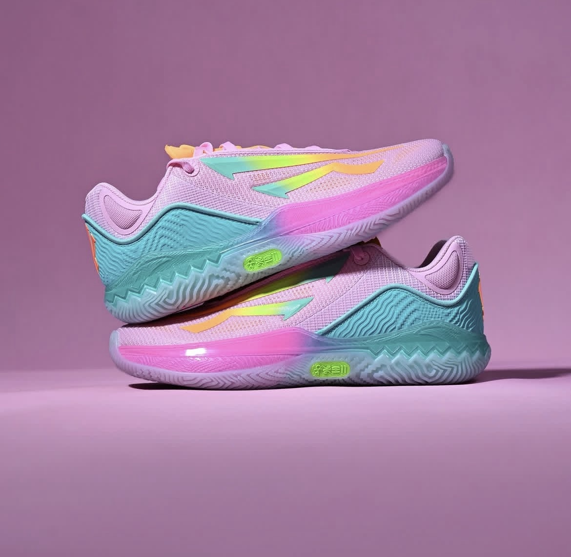 上脚体验 & 实战评价 1. 颜值与穿搭 这双安踏KAI SPEED 2夏季版的粉青渐变配色,直接把二次元漫画感拉满。粉、青、黄渐变的大箭头Logo,搭配撕裂漫画背景,上脚就是球场最吸睛的存在。低帮版型+清新撞色,日常搭短裤、运动裤也毫无违和感,出街打球两不误。 2. 包裹与透气 夏季版做了轻量化升级: 鞋面换成更薄的透气网布,开孔更多,实战2小时也不闷脚,夏天穿完全无压力。 鞋舌削薄并带透气孔,...