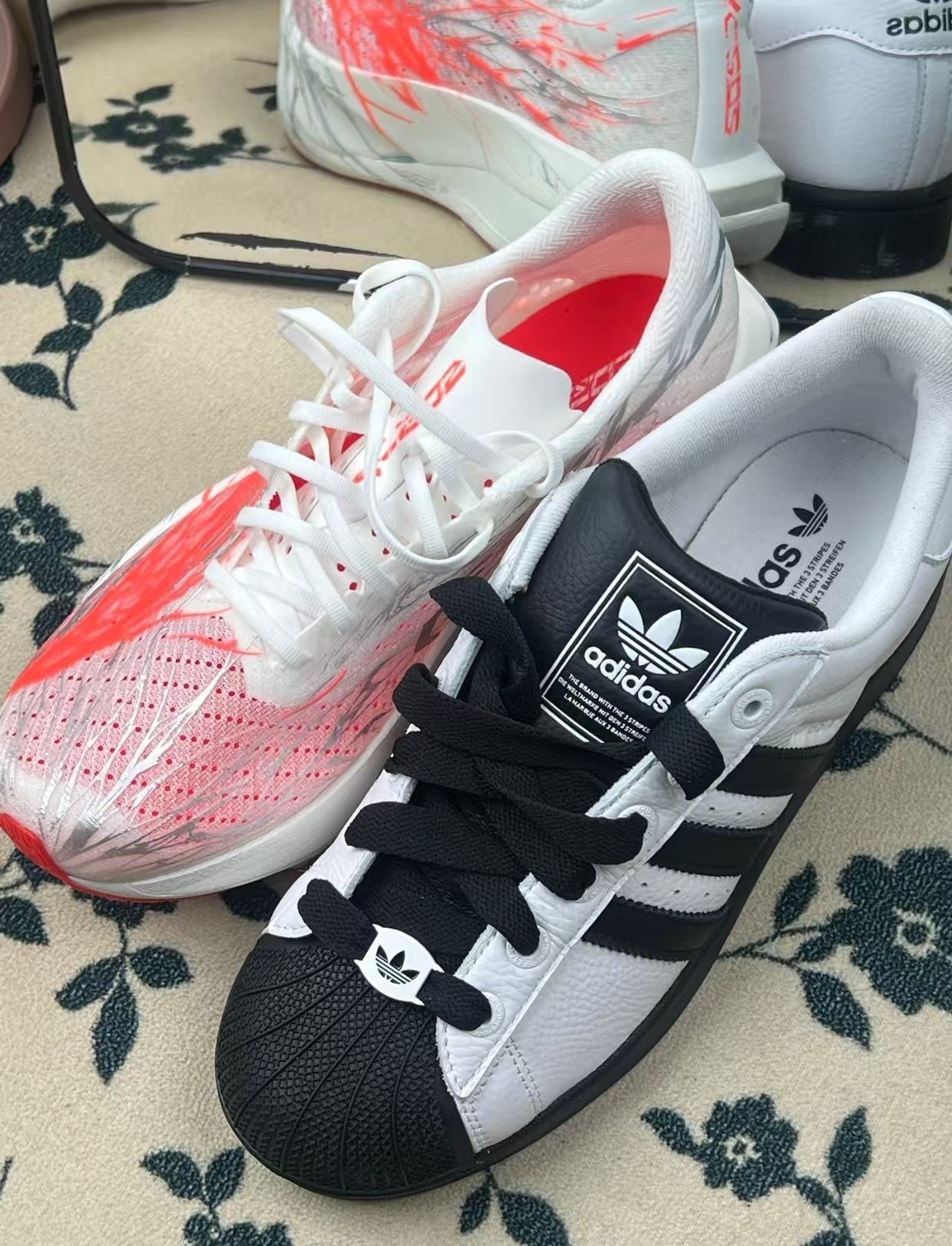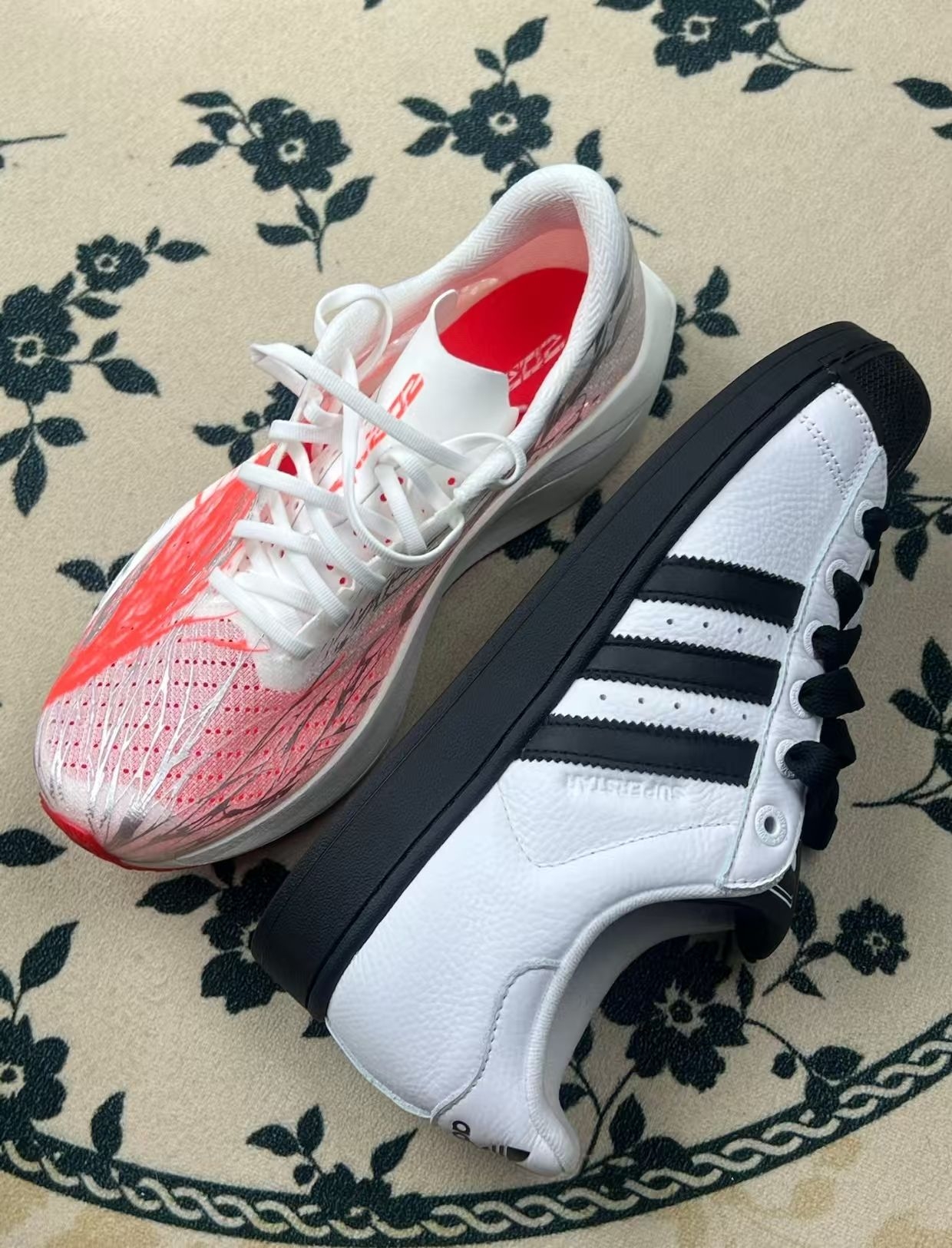 左边这双贝壳头,经典款就是稳,皮面软,踩下去有支撑感,日常通勤、逛个街完全够用。但缺点也挺明显:鞋舌那块标有点硬,刚上脚磨脚踝,得穿厚袜子缓冲;还有就是皮面容易留折痕,强迫症看着有点闹心。 右边这双是我最近的“新宠”,轻得像没穿鞋,跑跳都没负担,配色也戳我。但它的网面太娇贵了,不小心蹭到墙就留印子,而且鞋型偏窄,脚宽的朋友慎入,我穿久了小脚趾会有点挤。 总的来说,这俩都是“优缺点写在脸上”的选...