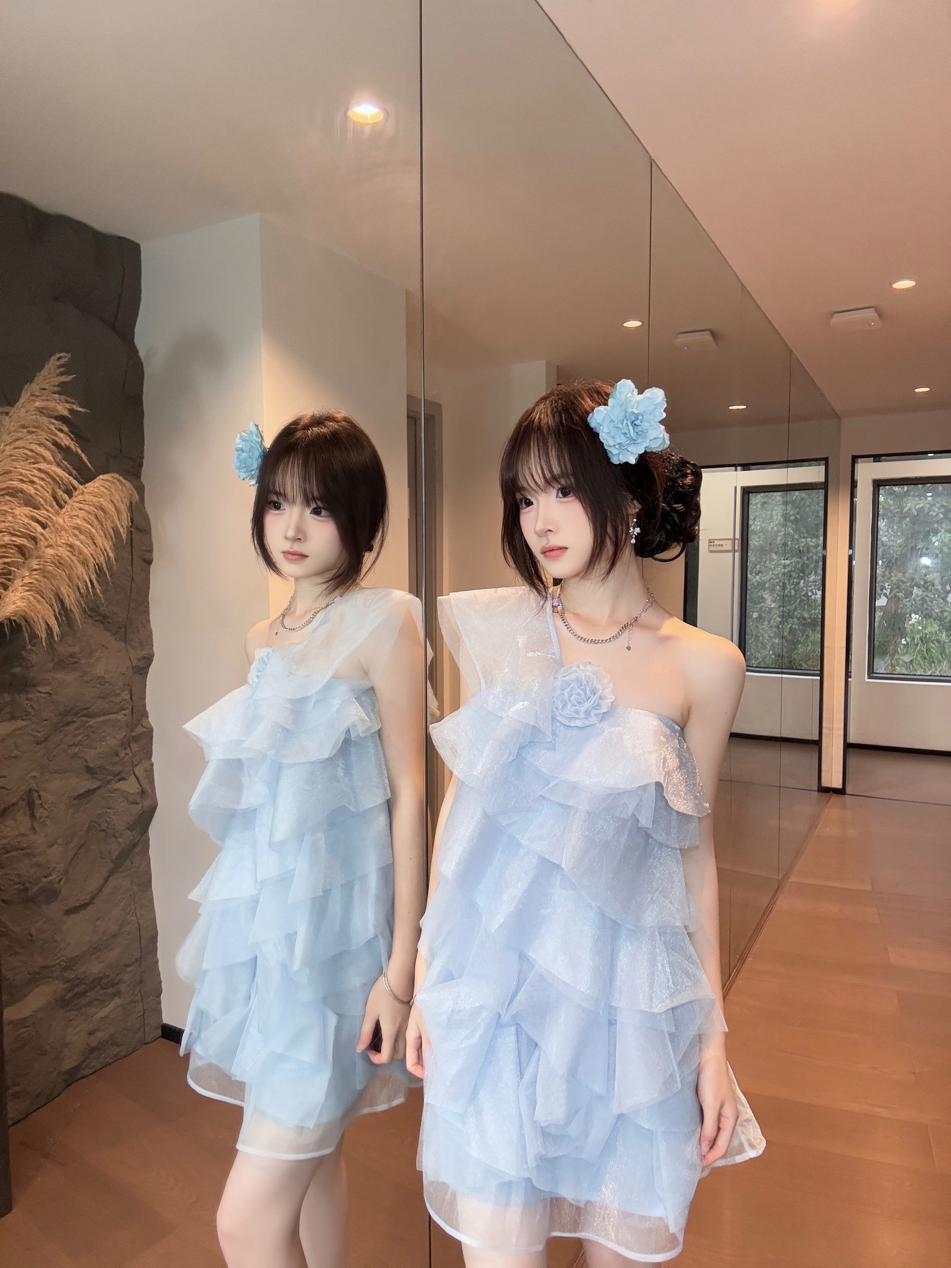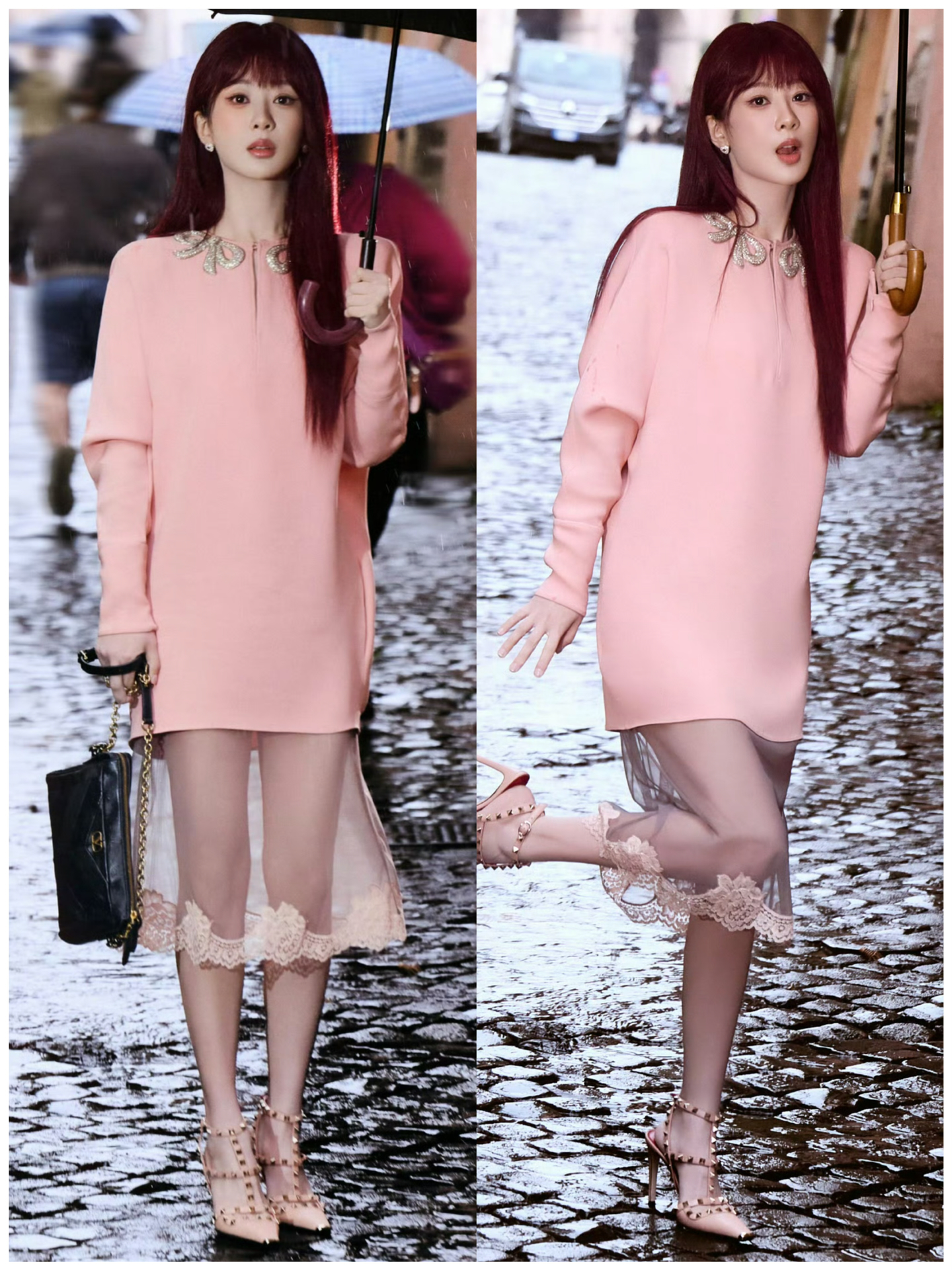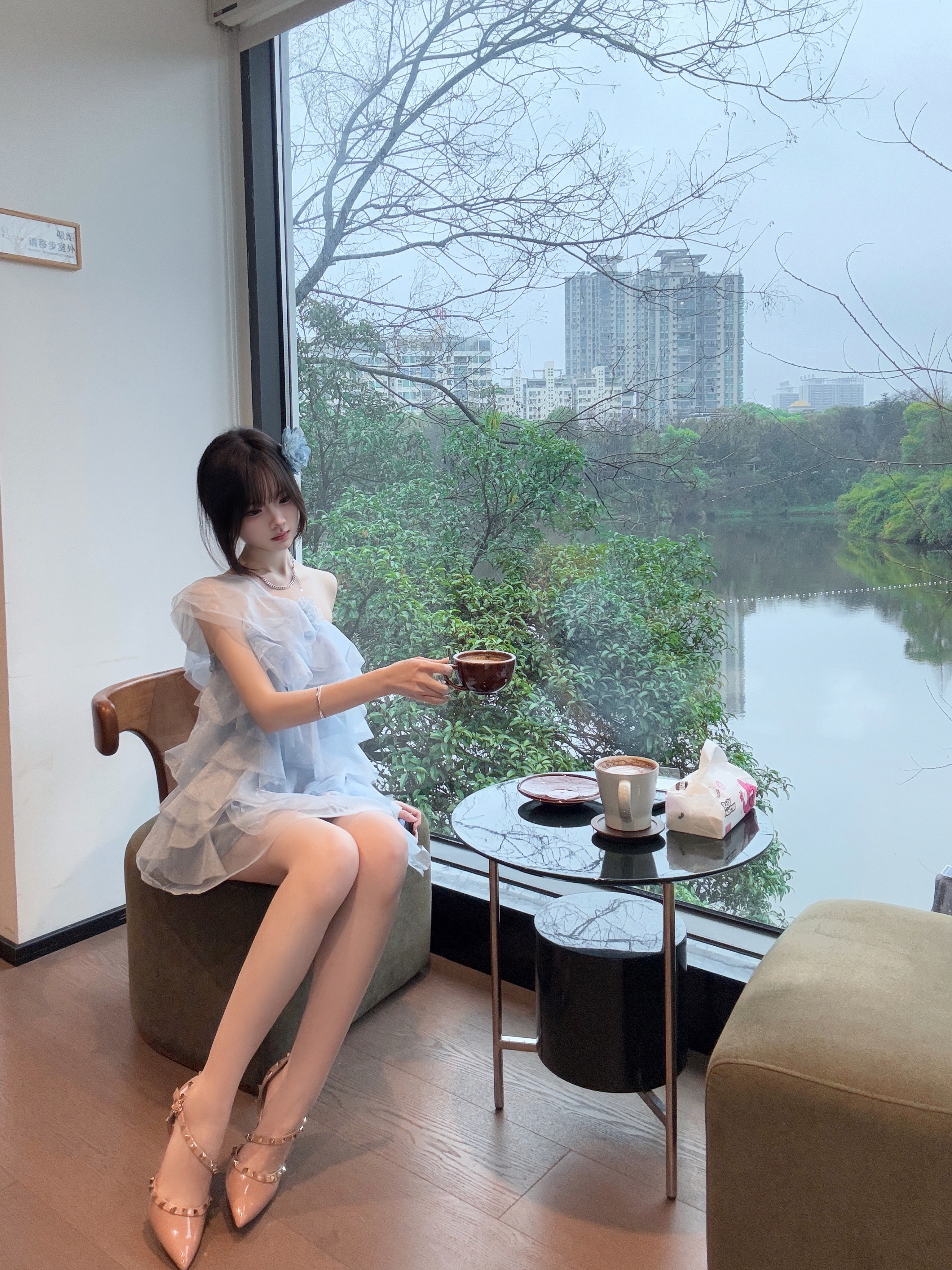 这双 Lily Wei 裸粉铆钉高跟鞋👠太懂女生啦! 尺码也很齐全友好✨31-44码都有✅ 跟高也是可以根据自己的需求选择的哦👻~ 后跟搭配了乳胶☁️小枕头不磨脚💖 前掌有做珍珠🧋垫脚的设计🎨 上脚柔软🎀稳当、久走不累脚~ 建议💦按日常尺码选 搭配浅蓝纱裙👗温柔又精致🌸 约会、成年礼👑都超合适~