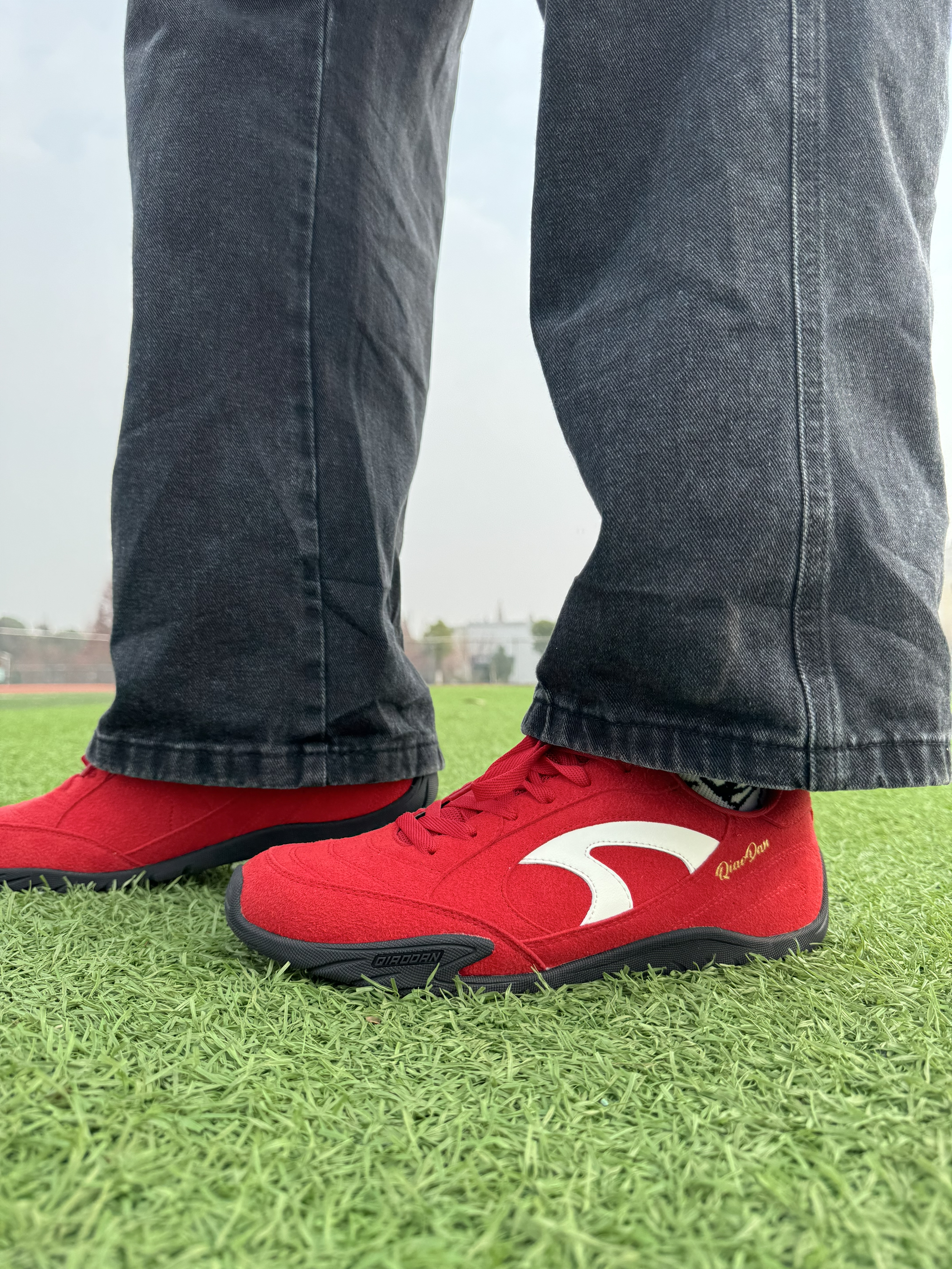 谁懂啊!这双乔丹赛车薄饼德训鞋直接戳中我心巴💘 复古德训+赛车线条,麂皮质感拉满,新年红配色超吸睛。薄底贴地却藏1.5cm隐形增高,超临界鞋垫软弹不塌,久走不累。宽脚/高脚背也友好,包裹稳不磨脚。 通勤、逛街、约会都能搭,百元价位性价比拉满,闭眼冲不亏~