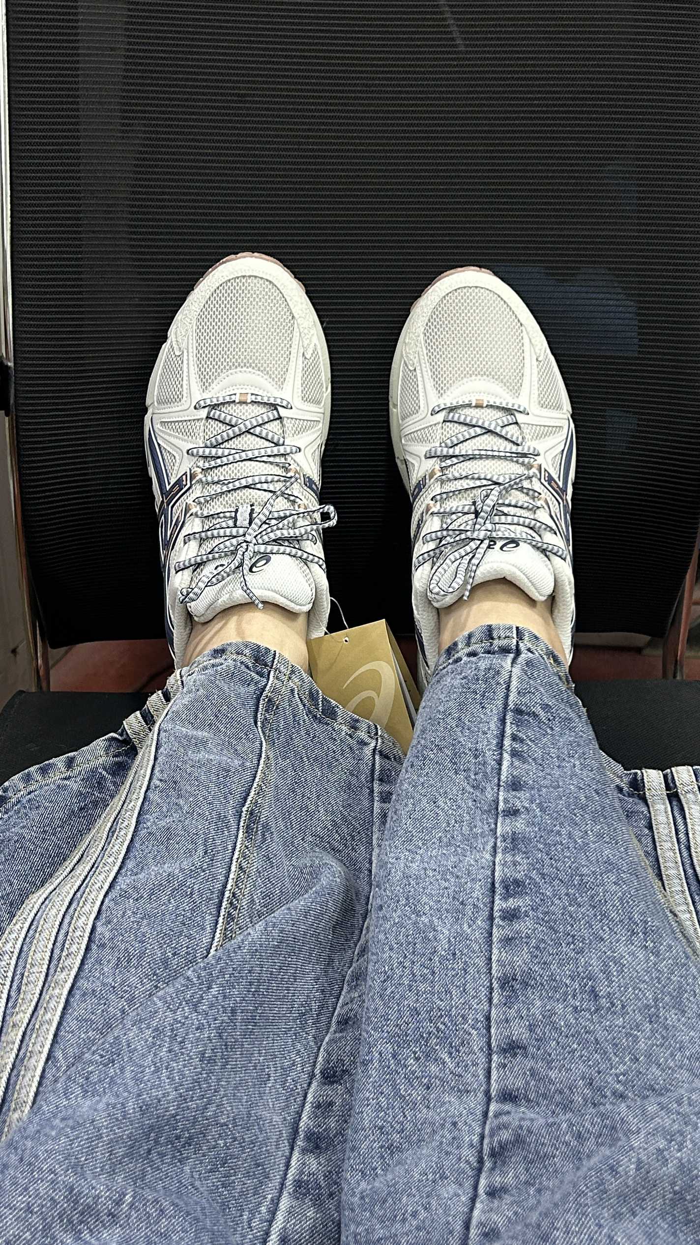 刚在识货入的ASICS GEL-KAHANA 8,白蓝配色太干净了! 网面透气,上脚轻,GEL缓震真的顶,走路久了也不酸。 搭我的阔腿牛仔裤巨显腿长,识货比价后入手超划算,鉴别通过放心冲! 喜欢复古风的闭眼入不亏👍 #识货鉴别 #亚瑟士Kahana8 #好物分享 #通勤鞋