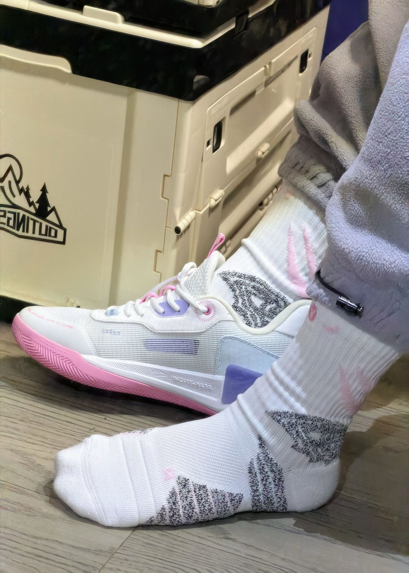 最近入手了一双颜值超高的球袜!!|||今天上脚的这款来自 #维动 VEIDOORN 恶魔pro系列🏀篮球袜,后跟的恶魔笑脸图案很好玩。 整体上脚舒适感很不错,包裹性和柔软度很棒。搭配几双鞋都很好看,是一款实战很好的篮球袜。 @得物成长小助手 @得物App @维动VEIDOORN @维动穿搭小助手 #维动篮球袜 #维动恶魔pro篮球袜 #维动恶魔篮球袜 #一件入春穿搭 #维动实战袜
