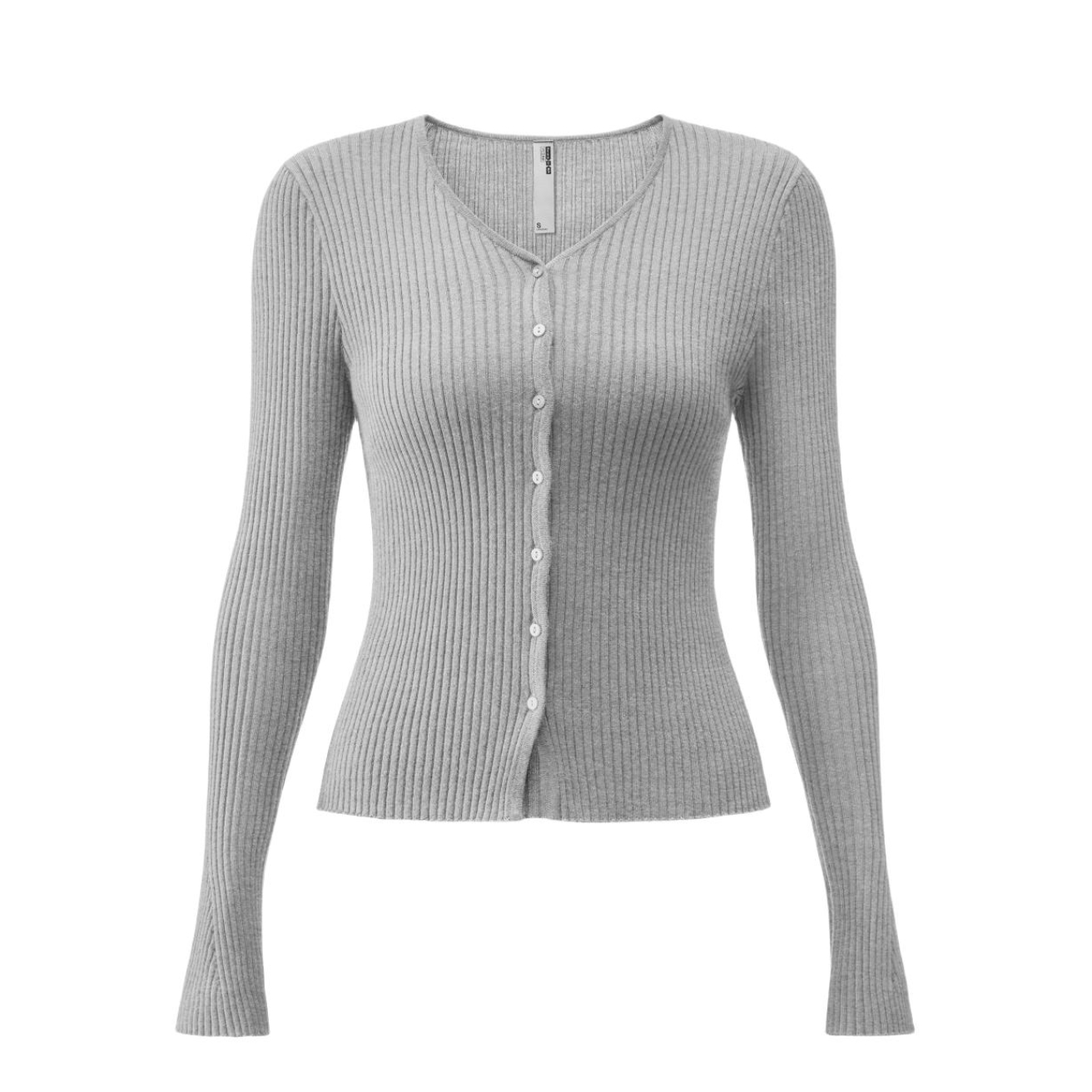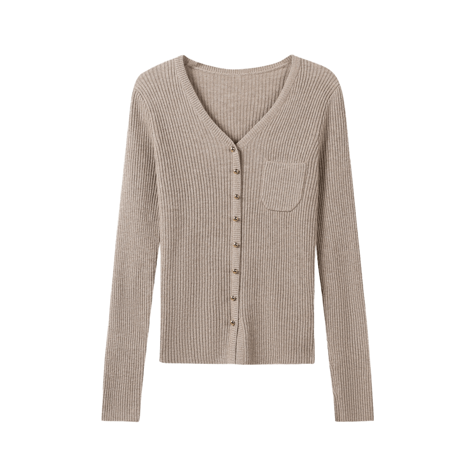 这件针织衫把“温柔又显瘦”五个字玩明白了🥹 • 材质细节:细密坑条针织面料,软糯亲肤还带点弹性,贴身穿完全不扎,春秋单穿、冬天内搭都合适,透气又保暖! • 版型设计:小V领+微开叉领口,刚好露出精致锁骨,拉长颈部线条超显脸小!前排纽扣设计,可调节露肤度,甜妹/御姐风格一键切换,收腰剪裁+坑条纹理,把腰线掐得刚刚好,秒变纸片人! • 搭配心得:配低腰牛仔裙是韩系甜妹,搭西装裤就是通勤干练姐姐,...