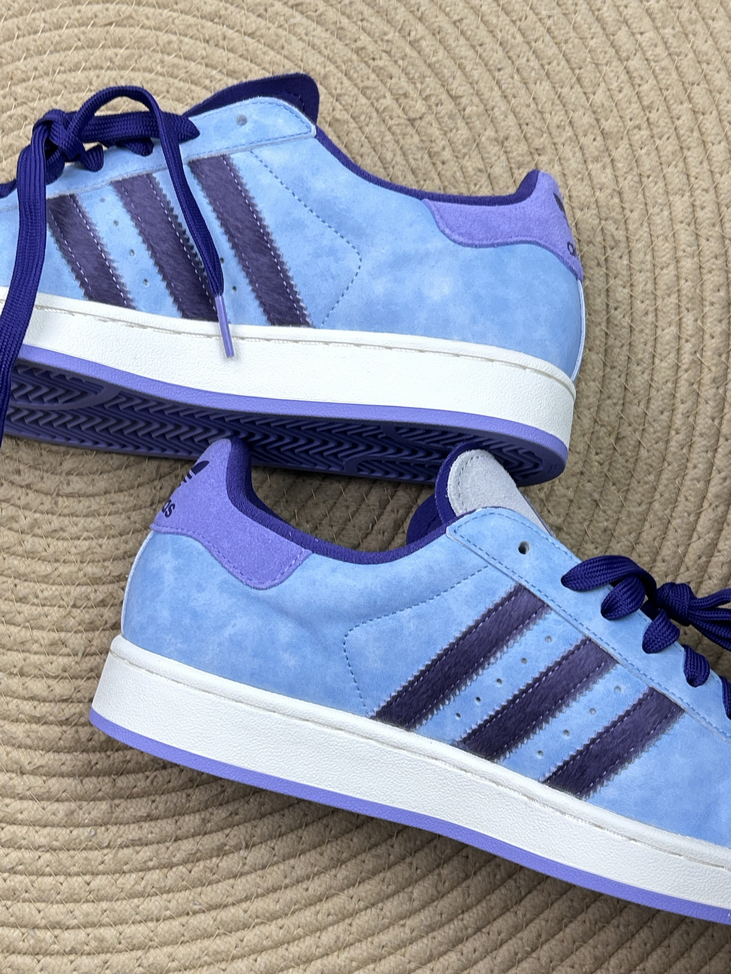 拿到手第一感觉是配色挺特别的,浅蓝翻毛皮配深紫三条纹,有点复古又不扎眼。 脚感上,贝壳头的鞋型偏窄,我平时穿42码,这双得选大半码才不挤脚。 翻毛皮看着质感不错,但特别容易沾灰,穿一天鞋头就显脏,得经常拿软毛刷打理。 优点是鞋身很轻,走路久了不会压脚。 但缺点也很明显,鞋底偏硬,走超过5公里脚底板就开始发酸。 鞋舌没有固定带,走路时总往一边滑,得时不时手动调整。另外,鞋边的紫色橡胶容易蹭黑,...