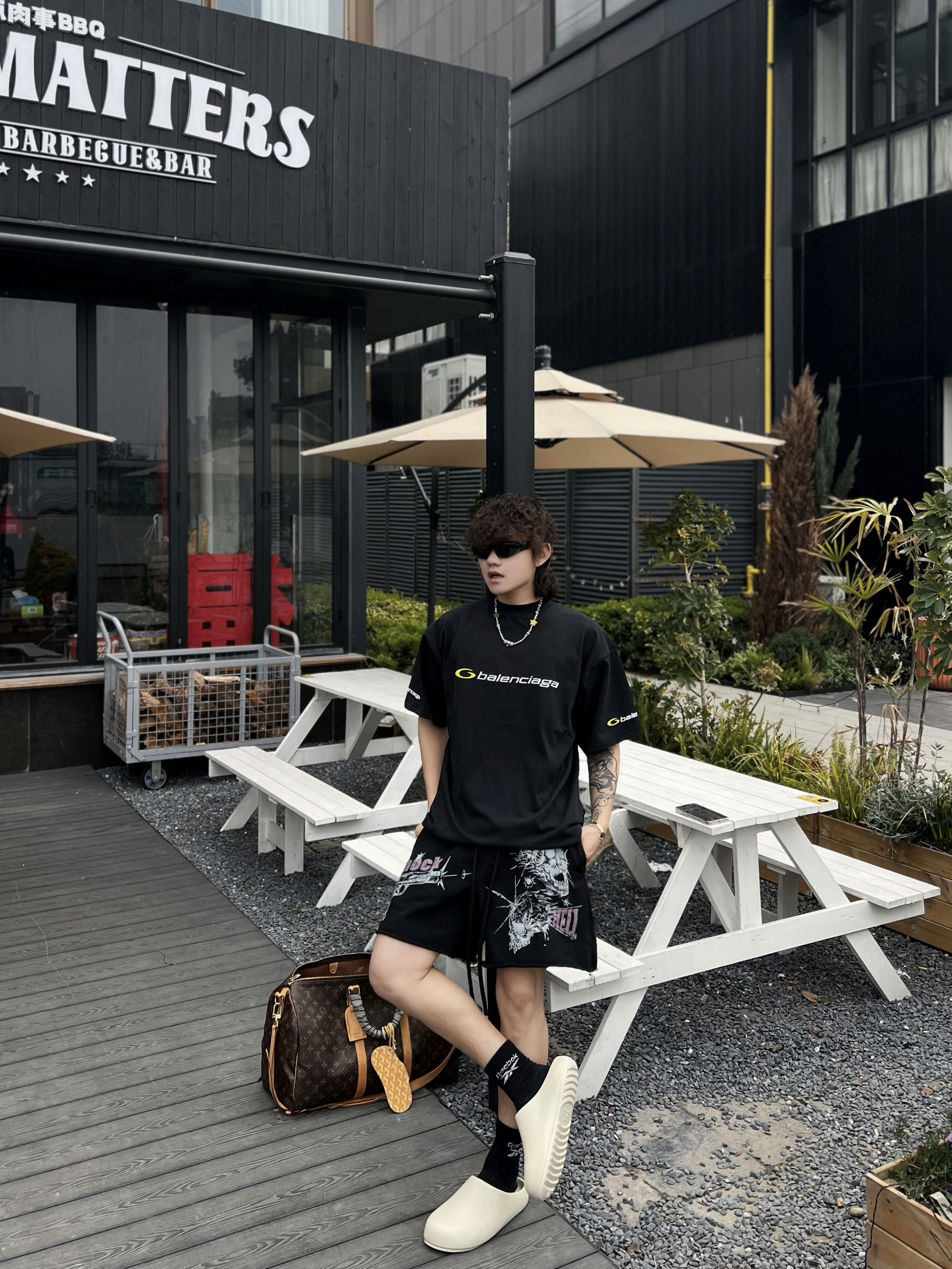 本篇笔记关联了Balenciaga/巴黎世家 纯棉印花半高领落肩短袖T恤 831305TSVD21569 黑、A chock 个性创意蜘蛛英文印花五分裤 男女同款 黑等商品,为用户提供真实的使用体验和购买参考。