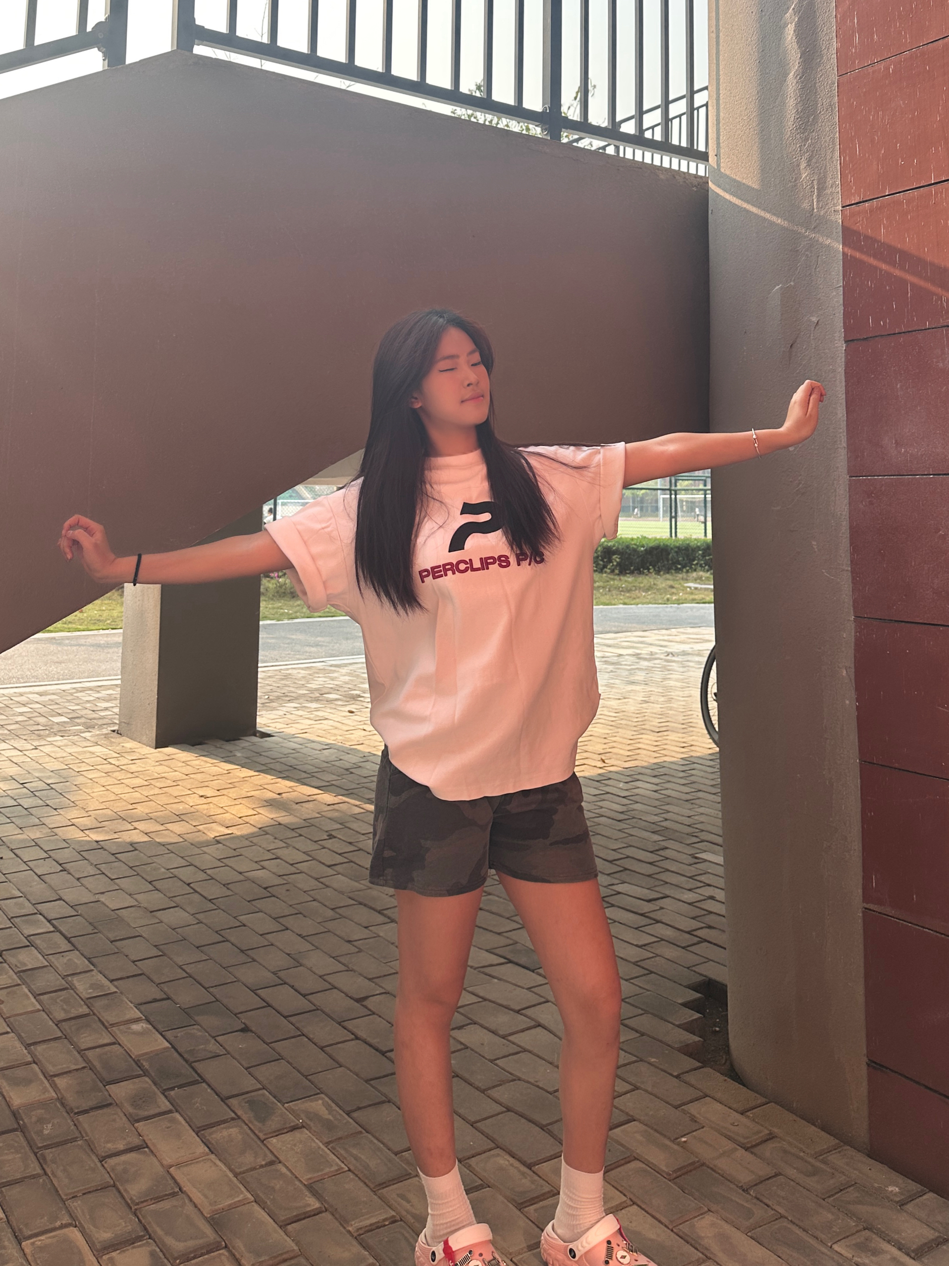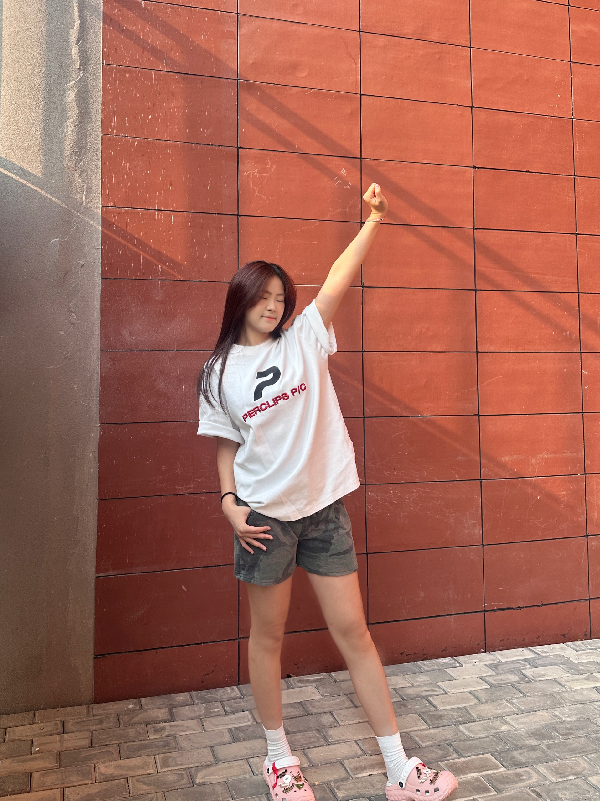 谁还没件能打基础白T!这件PERCLIPS P/C真的戳中我心巴👇 ▫️oversize版型巨藏肉,溜肩、小肚腩都能藏住,慵懒感直接拉满 ▫️胸前黑红字母印花超有细节,不单调还自带街头感,配啥都好看 ▫️纯棉料子软fufu的,夏天穿透气不闷汗,洗了也不容易变形 ▫️单穿/叠穿都绝,配短裤、牛仔裤、工装裤都能hold住,懒人福音! 平价又耐穿,白T党直接闭眼冲,衣柜里永远缺一件这样的百搭王!