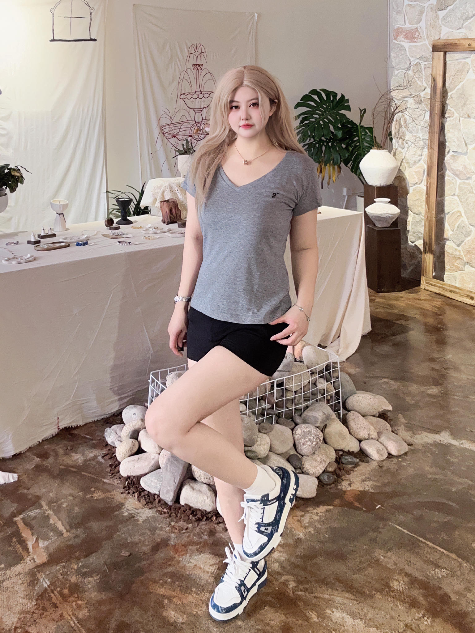 谁懂啊!这双袜子真的好百搭~ 透气又舒服春天穿真的太适配了! 软糯质感贴脚不闷汗, 配勃肯鞋、小皮鞋、帆布鞋都好看, 这双能穿一整春夏~ 搭配灰色短袖黑色短裤和谐! 显身材气质夏天就这样穿啦! 鞋子是lv的白蓝配色好看