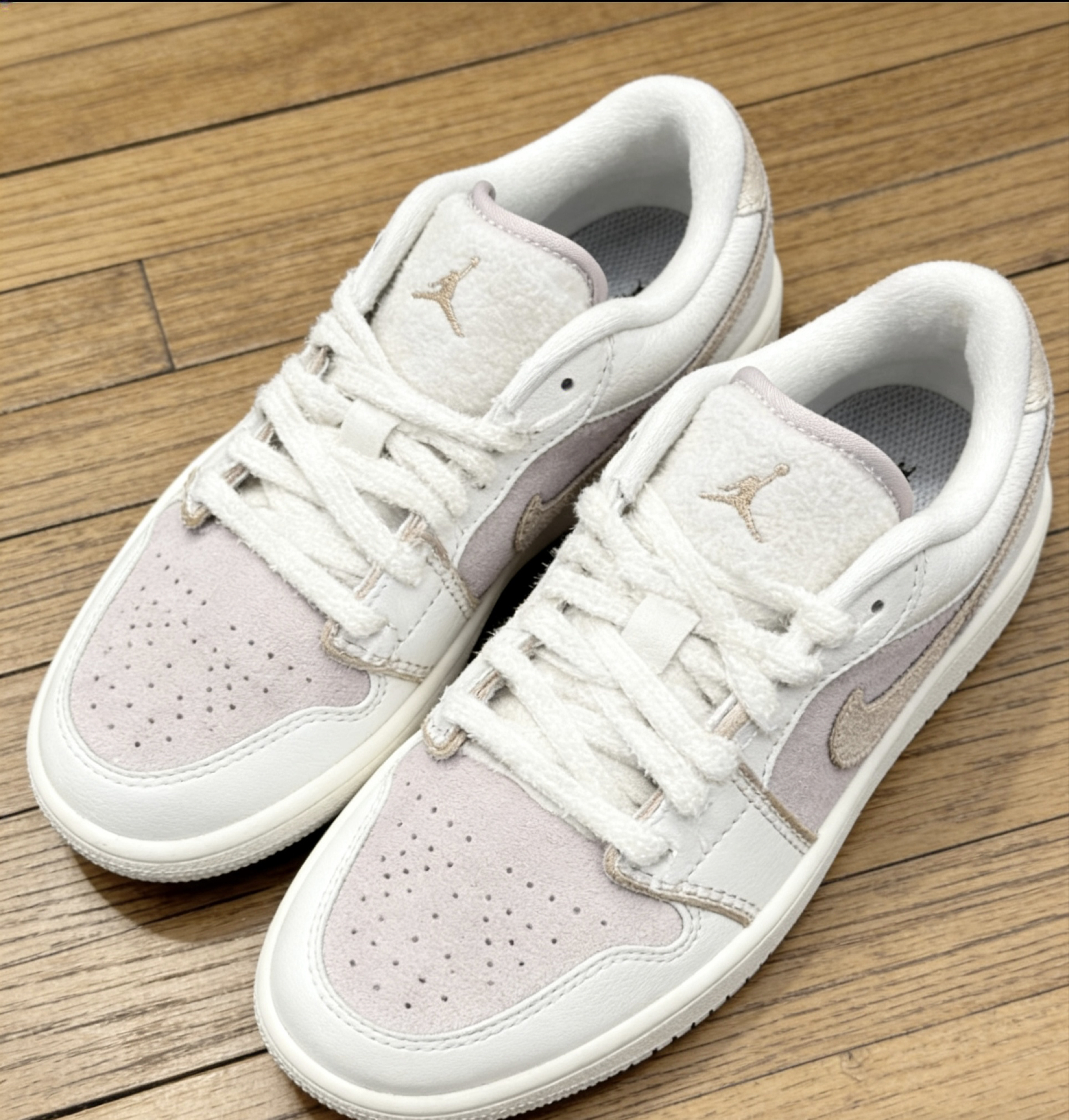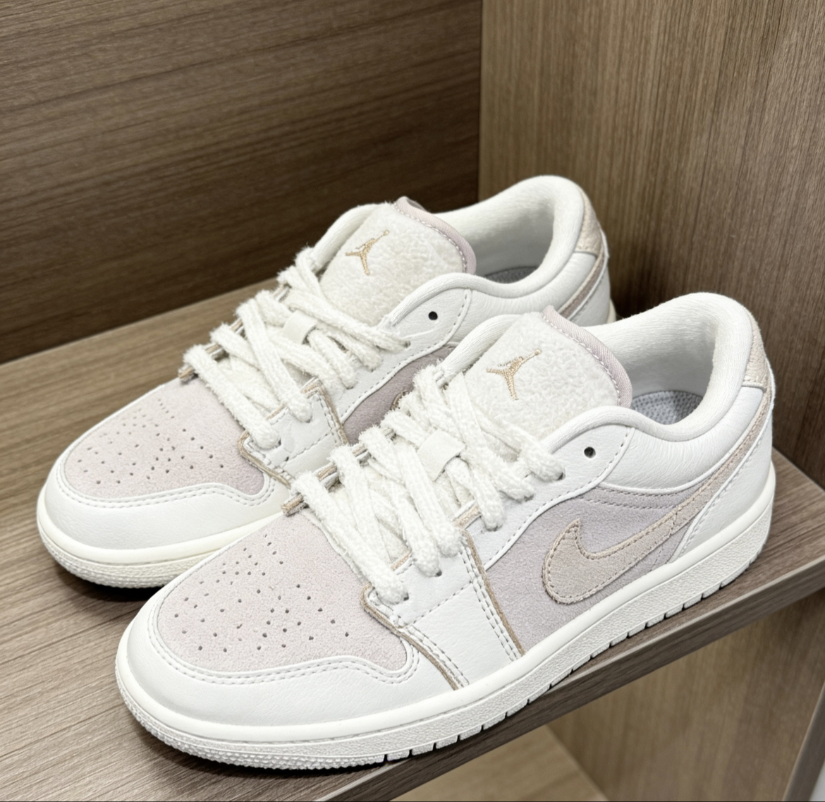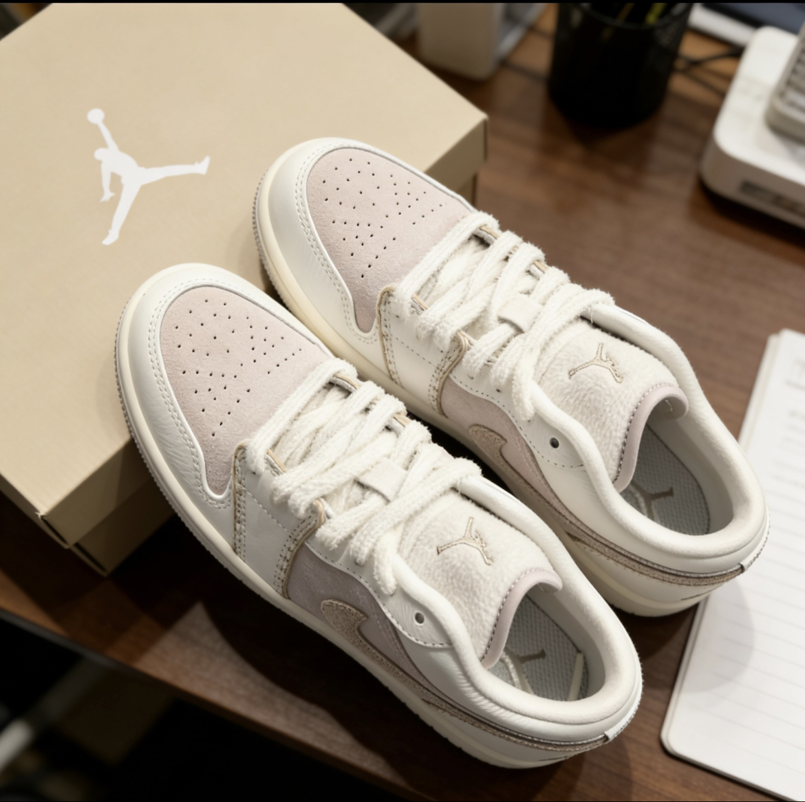 挖到宝了!这双奶油色AJ1浅粉低帮也太温柔了吧💖 奶白+淡粉的配色,自带柔光滤镜,完全中和了AJ的硬朗感,甜妹风直接拉满! 荔枝纹皮革鞋面质感在线,打孔设计夏天穿也不闷脚,Air气垫脚感软弹,暴走一天都不累~ 低帮版型超显腿长,配牛仔裤、百褶裙都好看,春日通勤/出游的宝藏鞋搭子!
