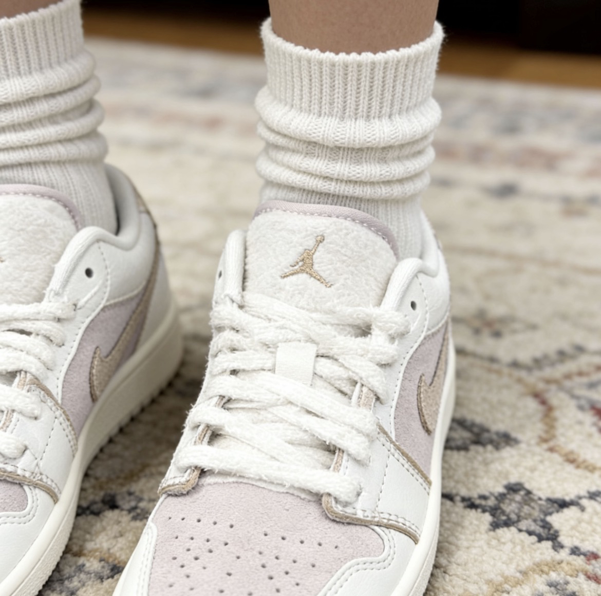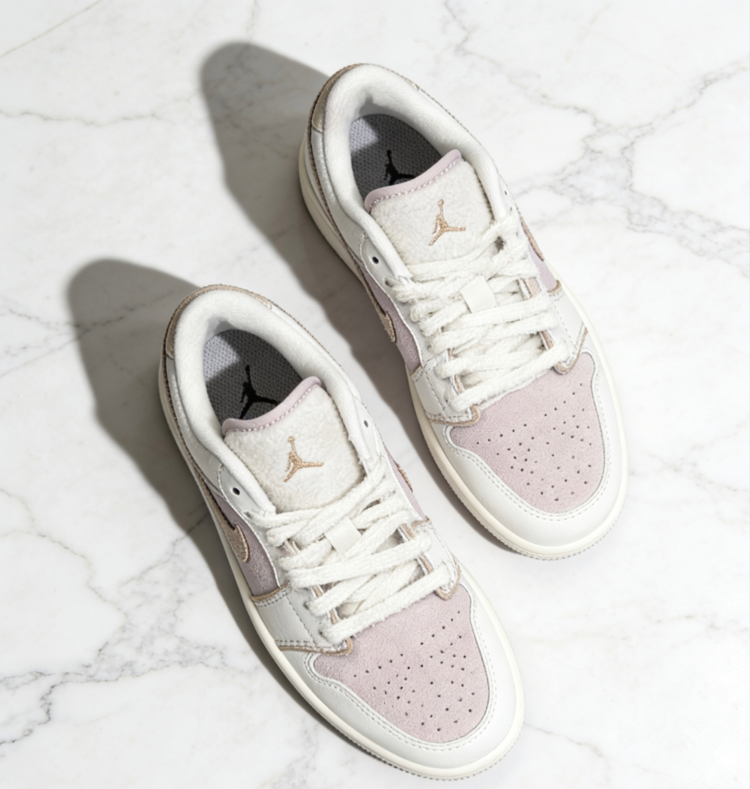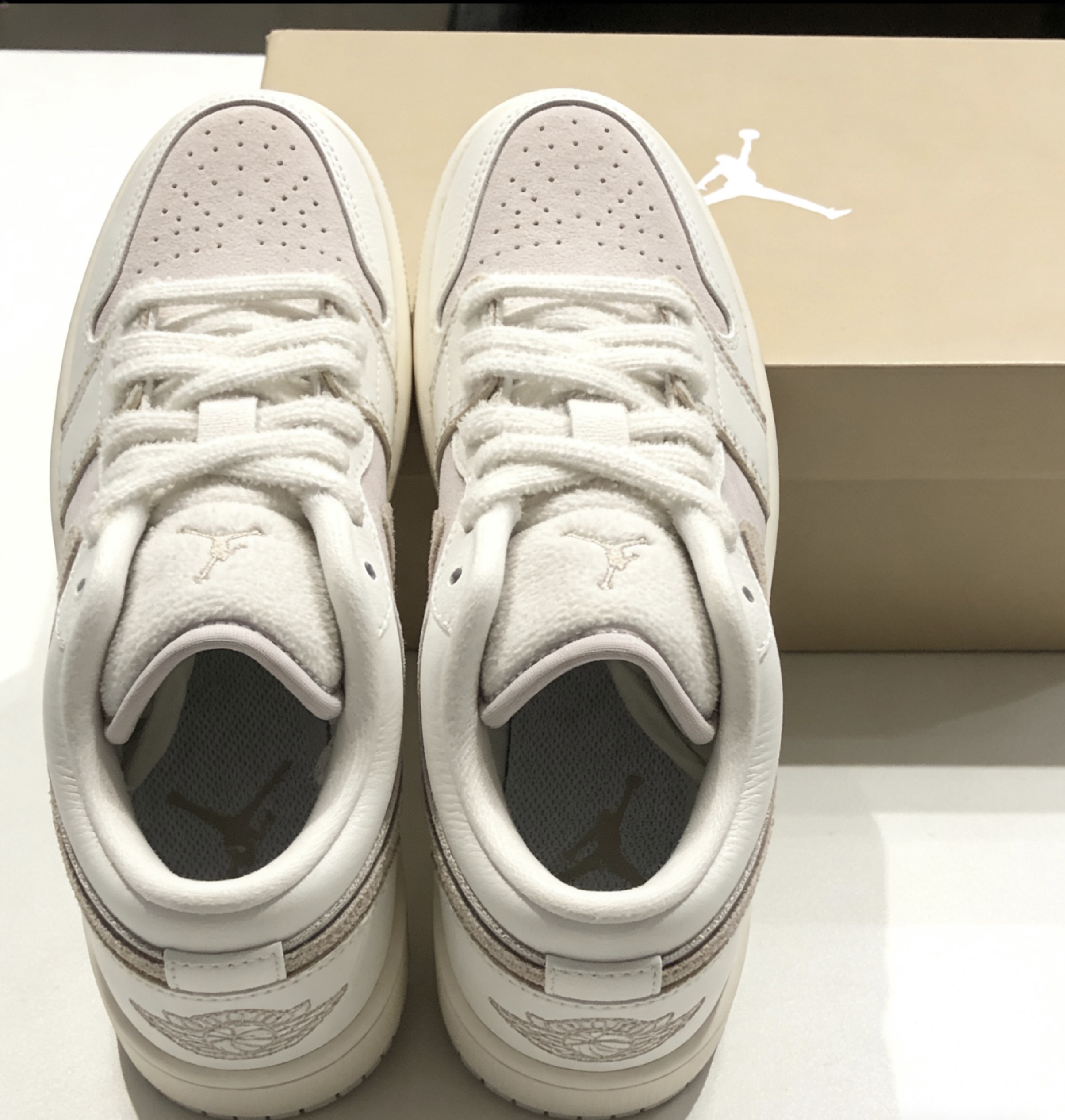 挖到宝了!这双奶油色AJ1浅粉低帮也太温柔了吧💖 奶白+淡粉的配色,自带柔光滤镜,完全中和了AJ的硬朗感,甜妹风直接拉满! 荔枝纹皮革鞋面质感在线,打孔设计夏天穿也不闷脚,Air气垫脚感软弹,暴走一天都不累~ 低帮版型超显腿长,配牛仔裤、百褶裙都好看,春日通勤/出游的宝藏鞋搭子!