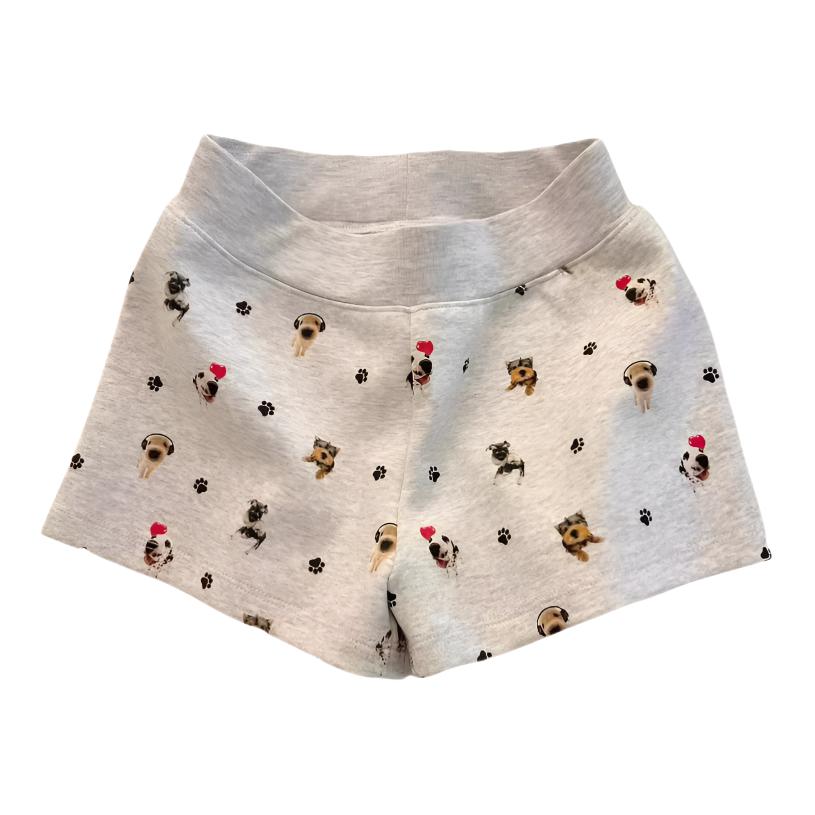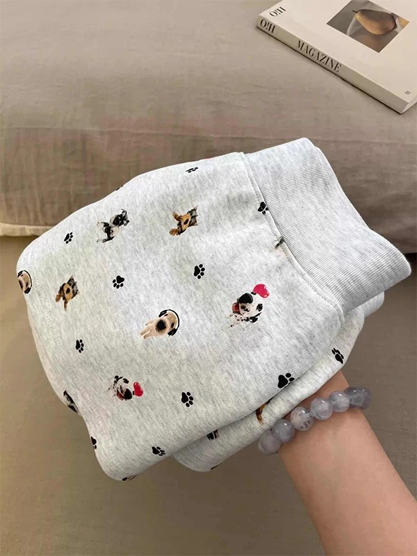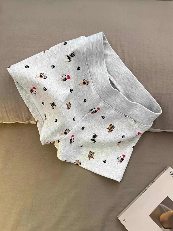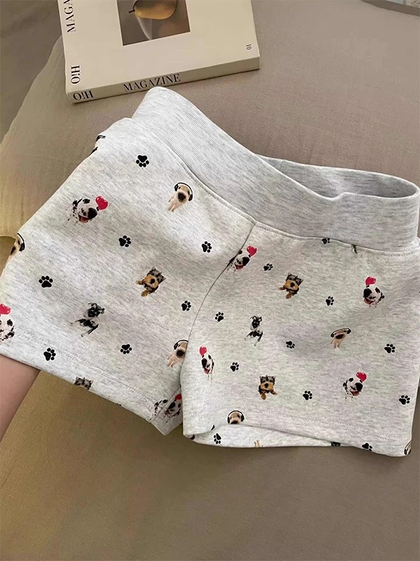 软乎乎的浅灰色针织面料,亲肤又透气,居家穿超舒服~ 满印的可爱小狗头像+小爪印图案,元气又治愈,宽松版型不勒肉,日常宅家、遛弯都能穿,慵懒感拉满,是一眼就爱上的软萌风!小狗印花居家短裤