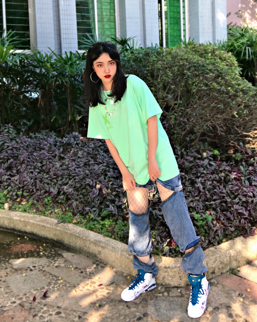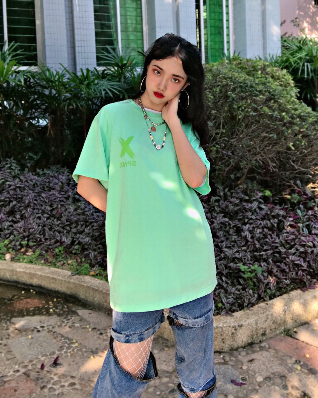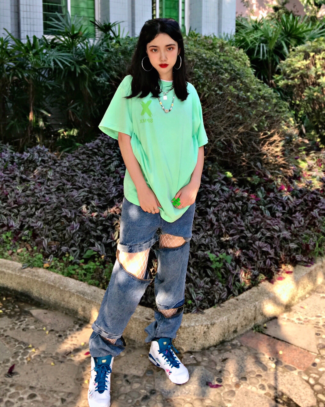 Day1 👔SPMX 👖GIDDAP 👟AJ6扎染 ⛓️Dizon Acc 夏天绿色好清新哦!!我第一次穿绿色的衣服超显白超好看!裤子是真的好看无数姐妹要链接,又酷又性感,可拆卸多种穿法!!鞋子性价比好高好看又实惠,很夏天的配色🍃🍀