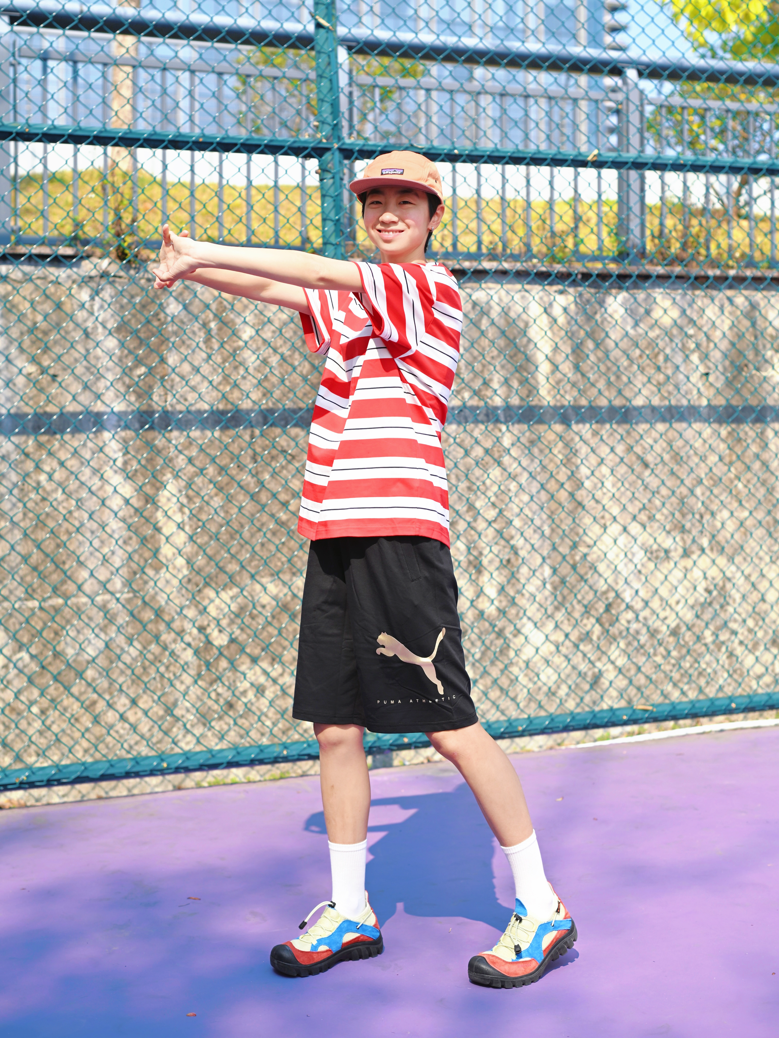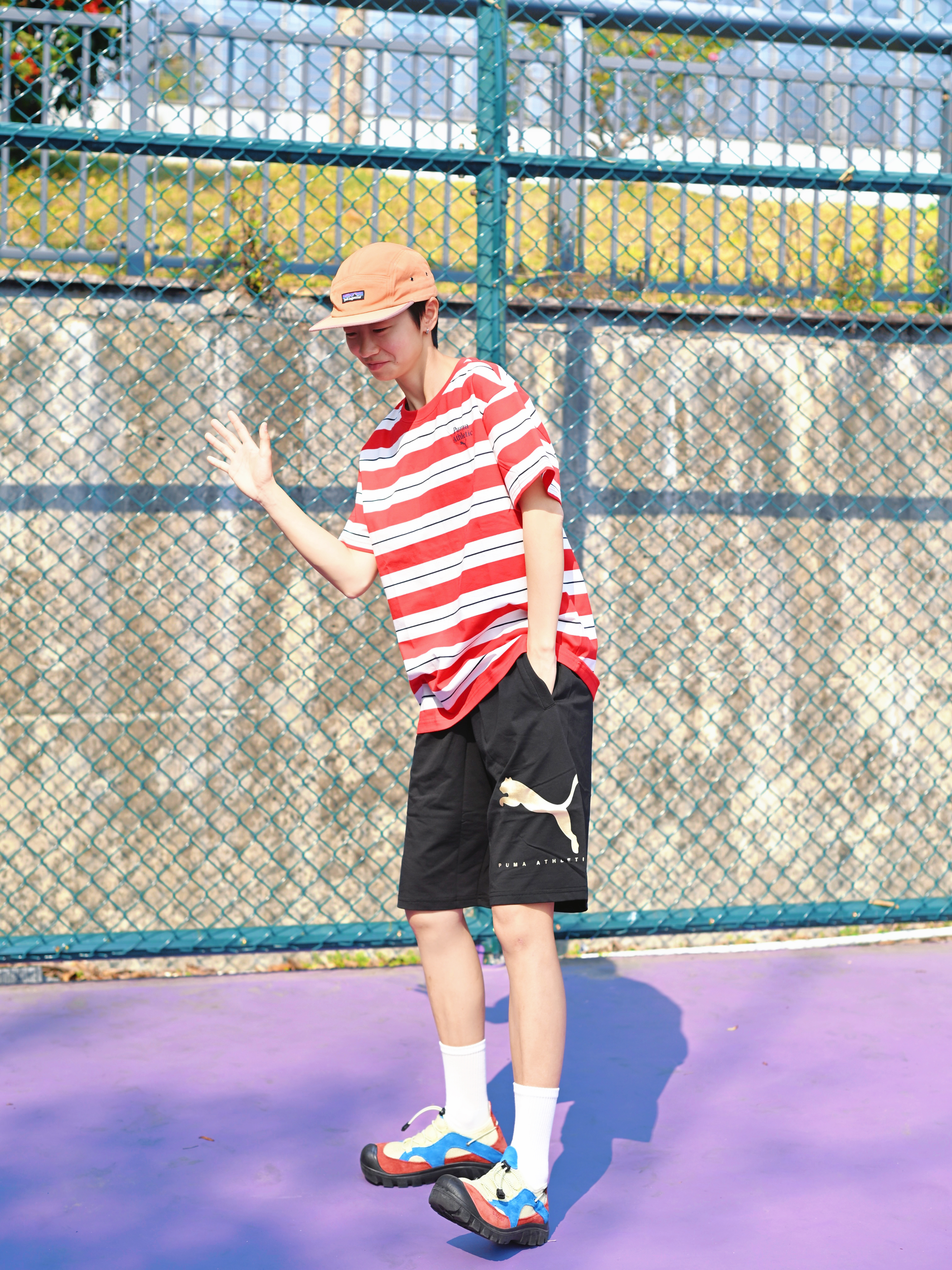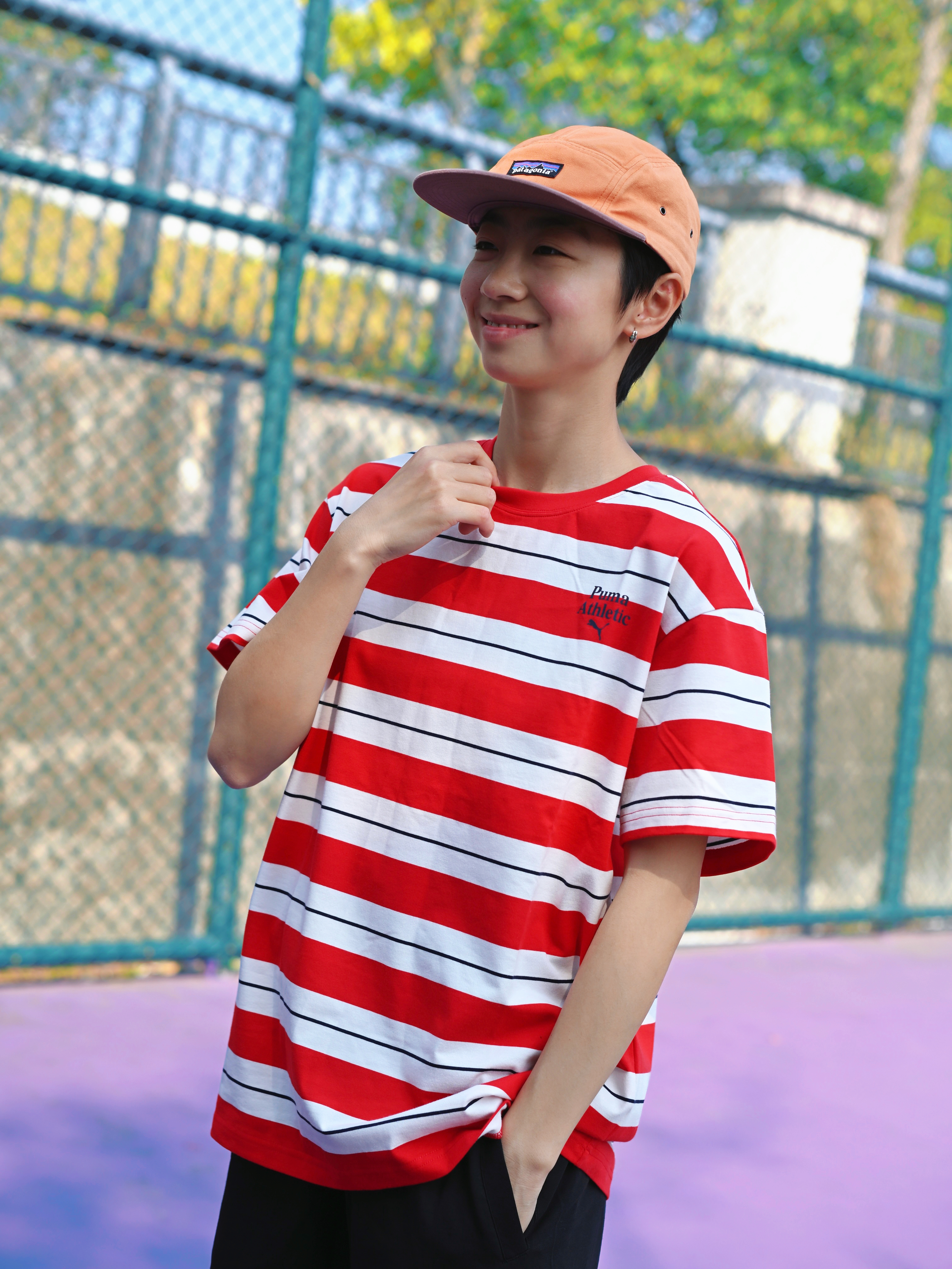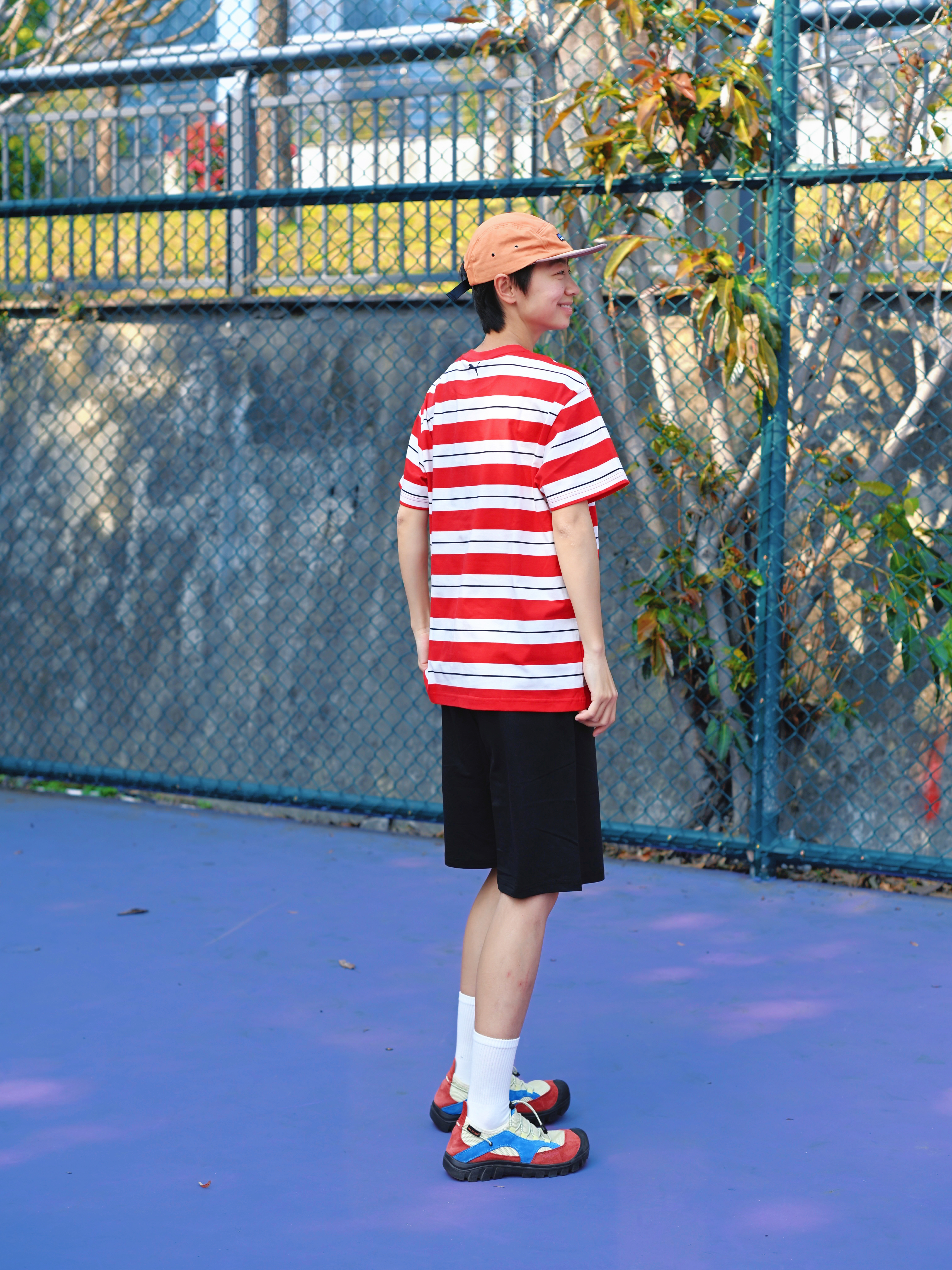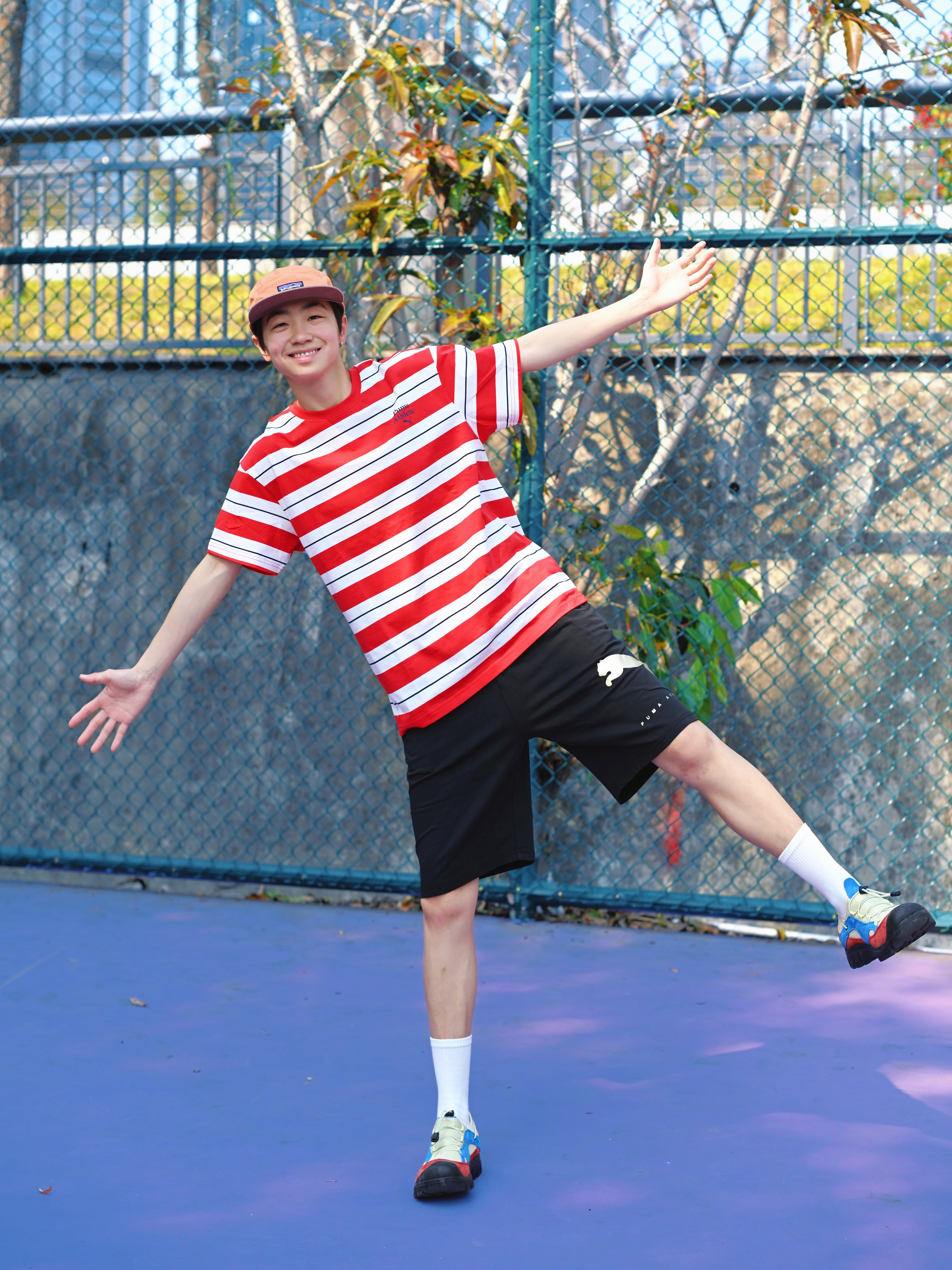 172CM|55KG 👔:m👖:m|👟:39码 春夏运动穿搭选这套就对了~ PUMA速干条纹T恤圆领短袖 凉感吸湿面料让运动时透气不闷汗 红白条纹设计活力又百搭 搭配PUMA Sportstyle黑色短裤 柔软透气跑跳都自在 侧边简约设计不挑风格~ 球场漫步、日常出街都出彩