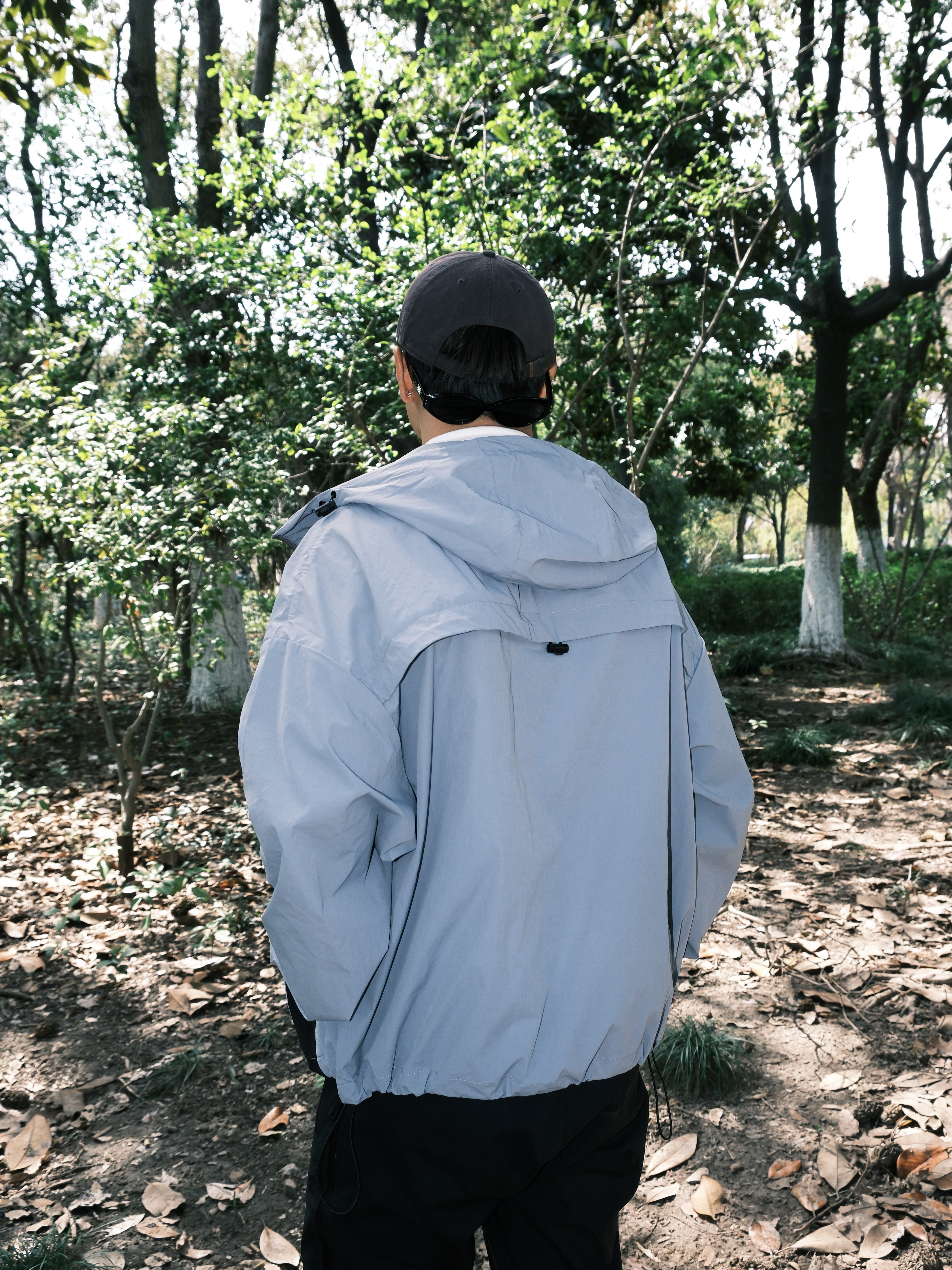 - 初春的阳光看着温柔,紫外线可一点都不含糊🌞本怕热星人已经换上这件防晒服,灰色拼黑色的撞色设计太戳我了,不用动脑子就很有层次感。轻薄到穿上几乎没感觉,透气性是真的好,中午溜达一圈也没闷汗。 - 喜欢这种宽松版型,里面叠件短袖T就很干净,袖子撸起来也利落。山系风的随性劲拿捏得刚好,不刻意但又挺有型。 - 天气好了真的要多出门走走,穿得舒服自在,心情也跟着好起来🍃