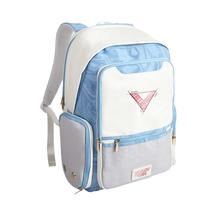 🎒VICTOR BR5043羽毛球包,活力系列双肩背包,专为羽毛球运动设计。蓝灰拼接+白色主色,简约时尚,正面VICTOR标志超有辨识度✨。耐磨聚酯纤维材质,轻便耐用,适合日常训练或比赛携带。多分区设计,主袋可放球拍、衣物,侧袋和前袋方便收纳小物,容量充足,满足运动需求💪。