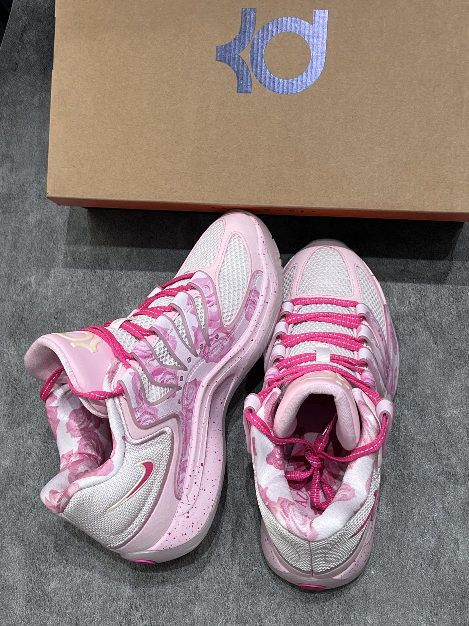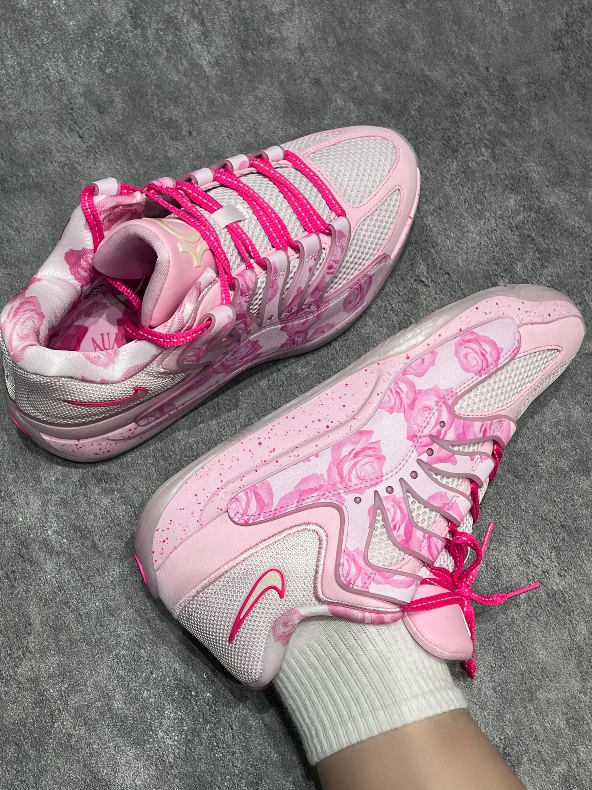 这双粉玫瑰篮球鞋真的直接戳中少女心! 渐变粉底+立体玫瑰印花,像把春日玫瑰园揉进鞋里,搭配玫红鞋带和小粉勾,温柔又灵动,上脚显白到发光,甜妹和运动少女都能狠狠爱住! - ✨ 颜值暴击:粉玫瑰印花+网纱鞋面+玫红鞋带,细节精致到发光,半透明底还带细闪,阳光下巨出片! - 🏀 性能在线:实战篮球鞋配置,缓震回弹拉满,透气网面不闷脚,打球、日常出街都能hold住! - 🥿 百搭王者:配运动裤...